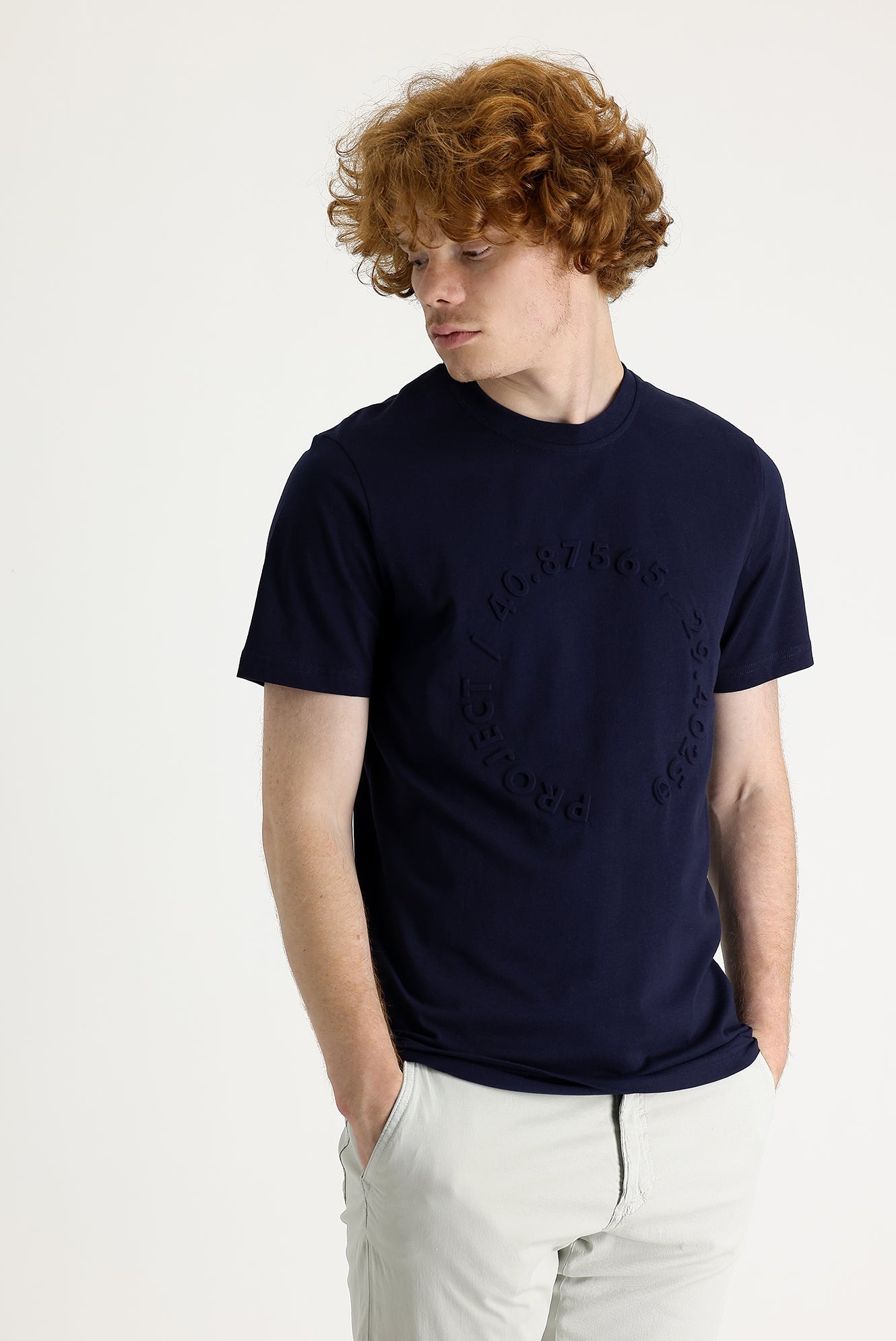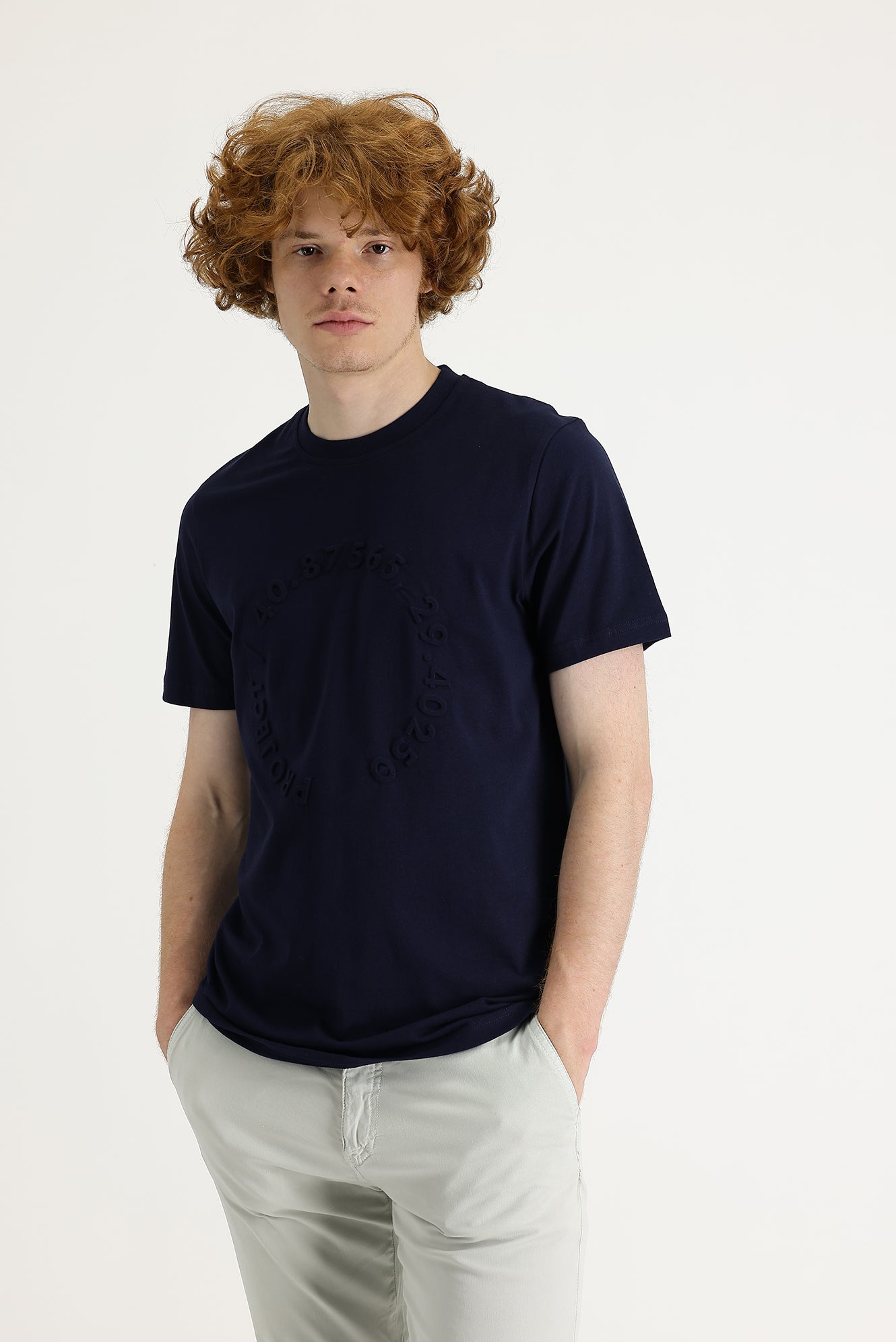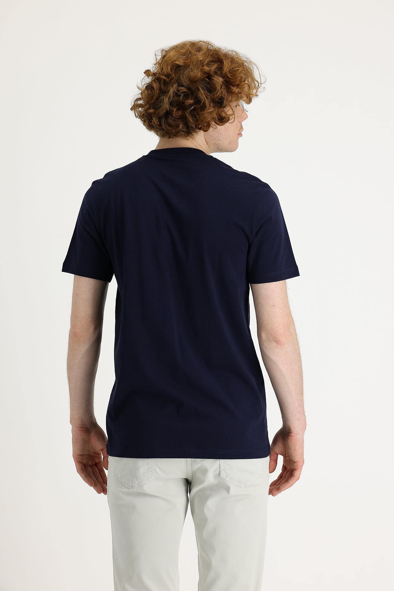 Siyah Lacivert Bisiklet Yaka Slim Fit Dar Kesim Baskılı Pamuk Tişört