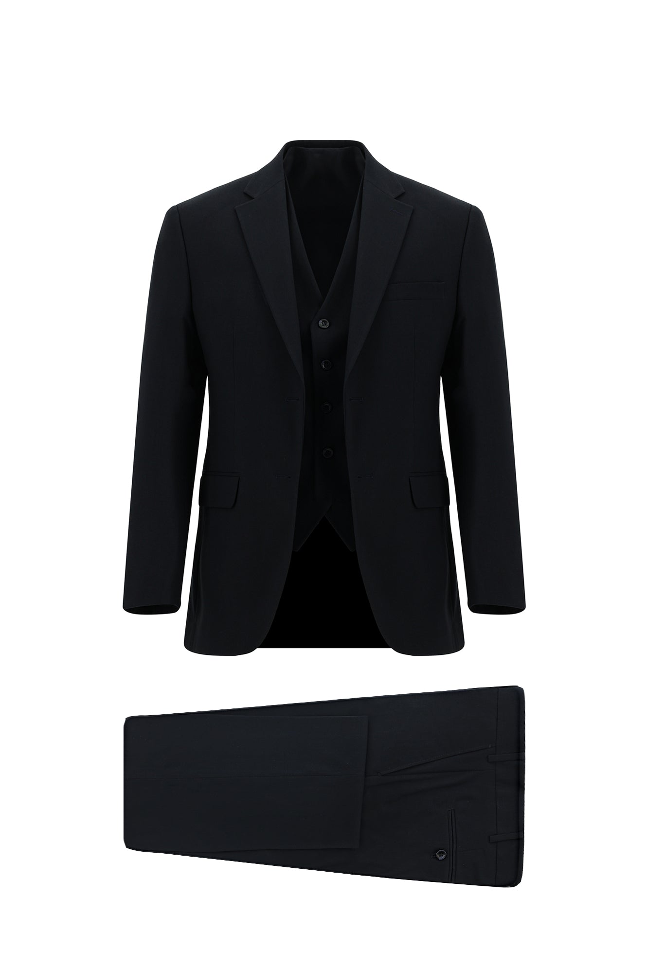 Siyah Lacivert Regular Fit Klasik Yelekli Takım Elbise