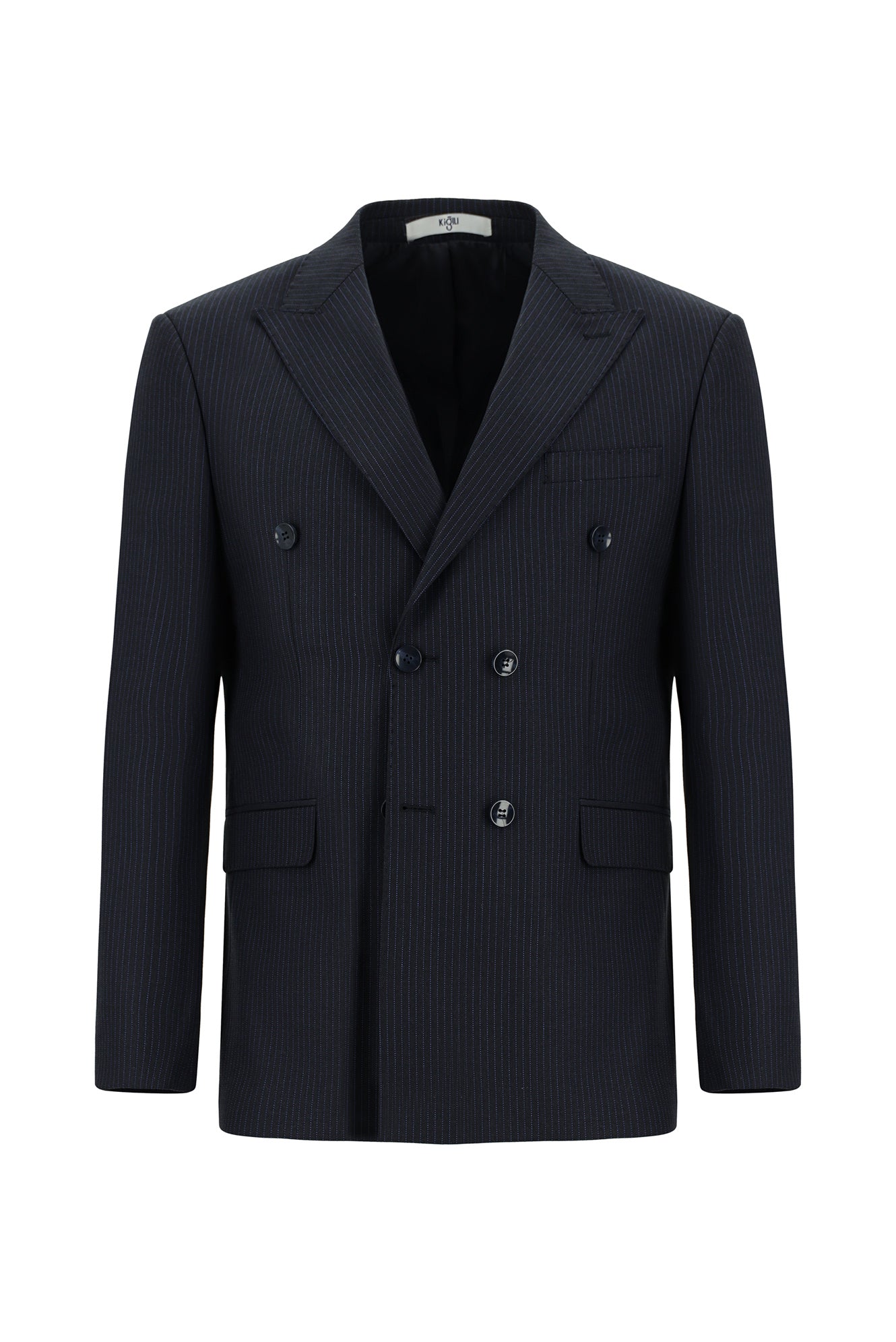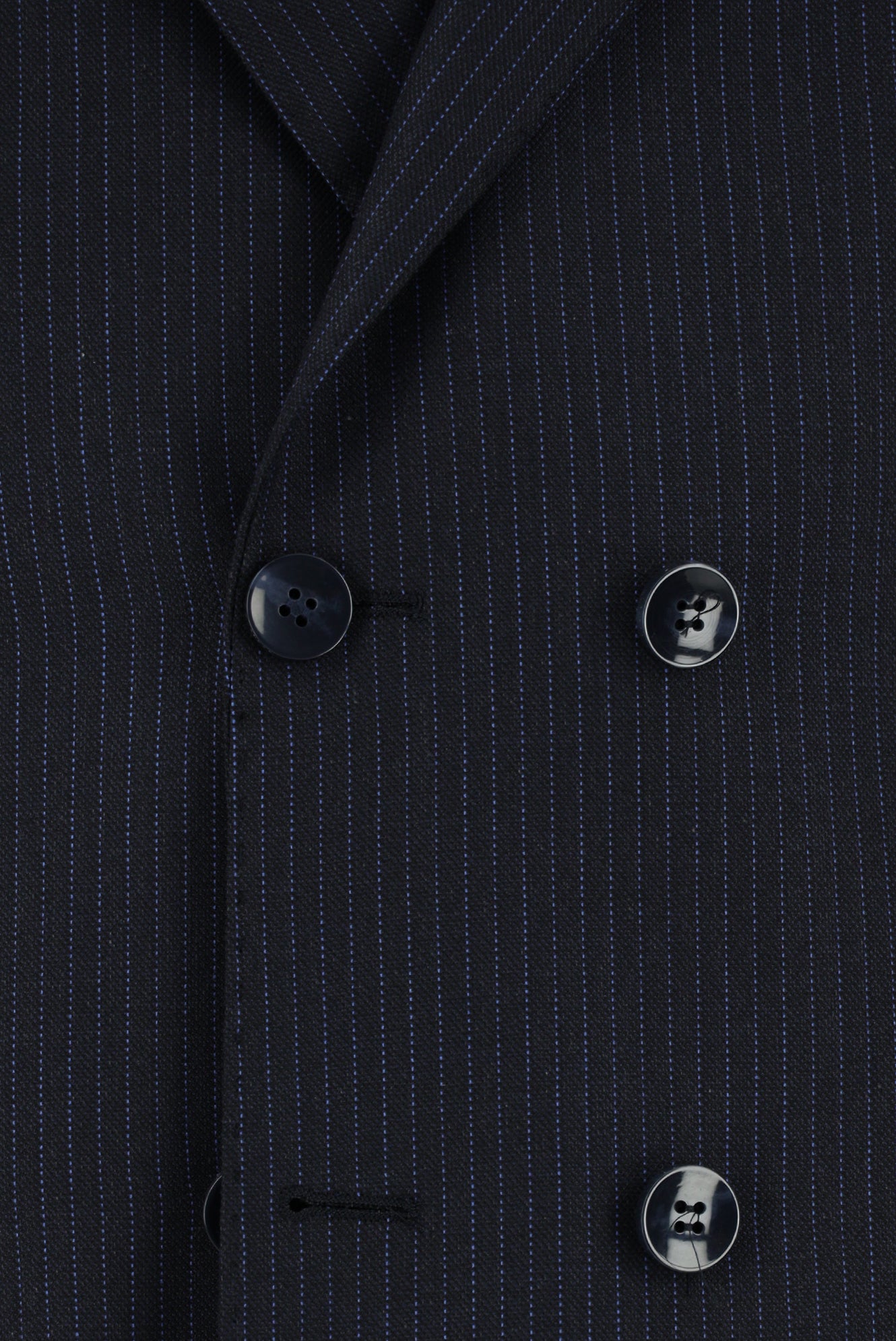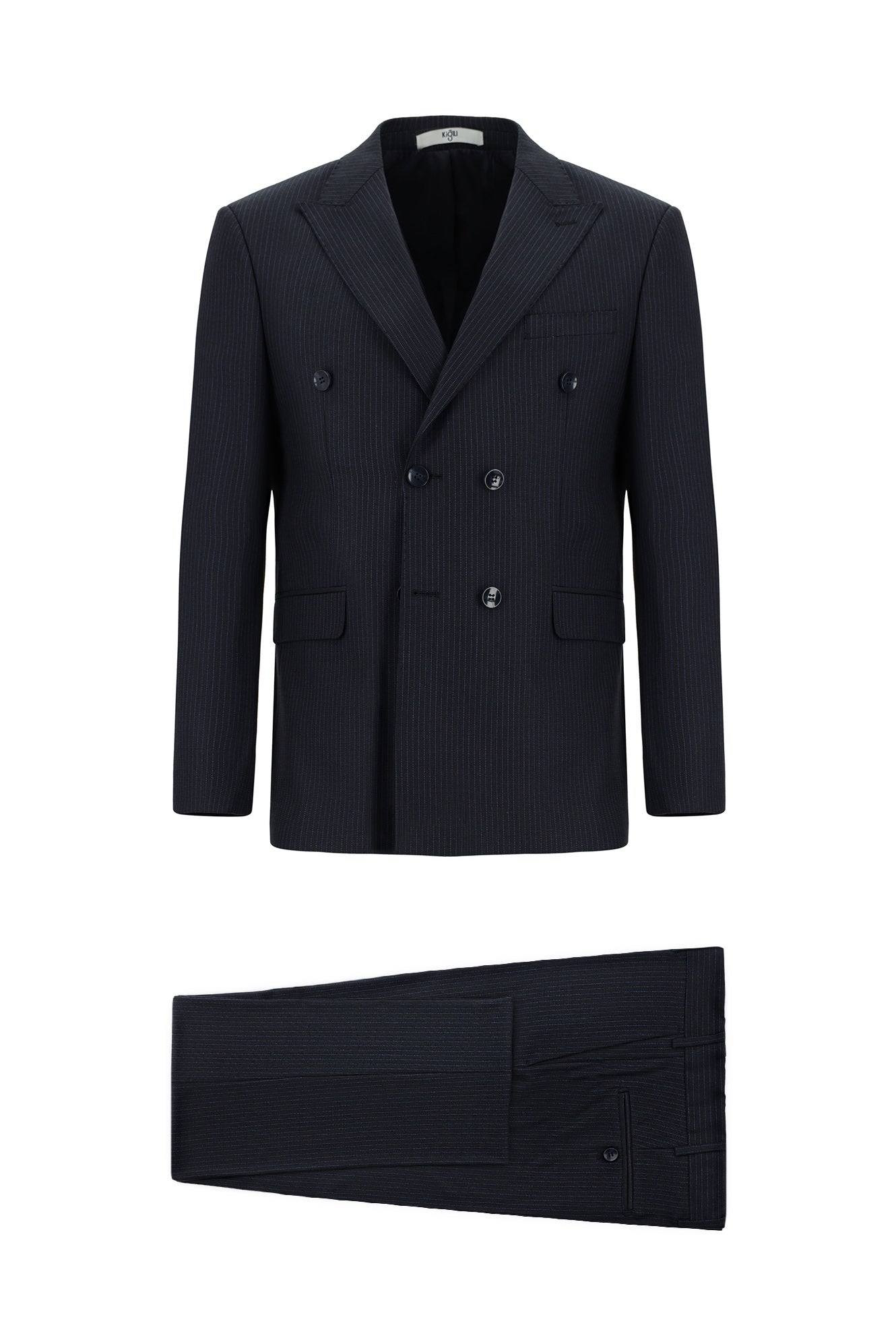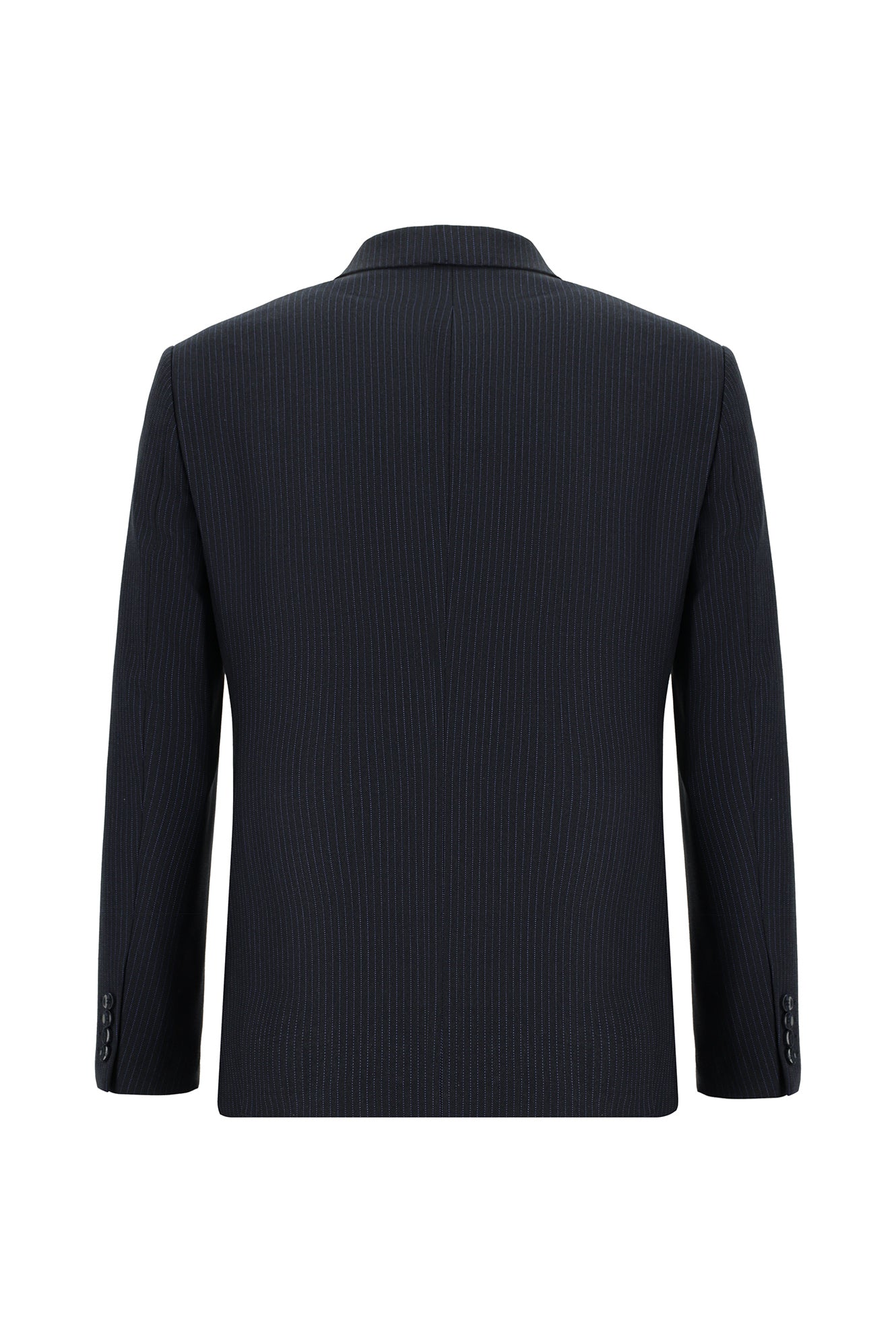 Siyah Lacivert Super Slim Fit Ekstra Dar Kesim Çizgili Yünlü Kruvaze Takım Elbise