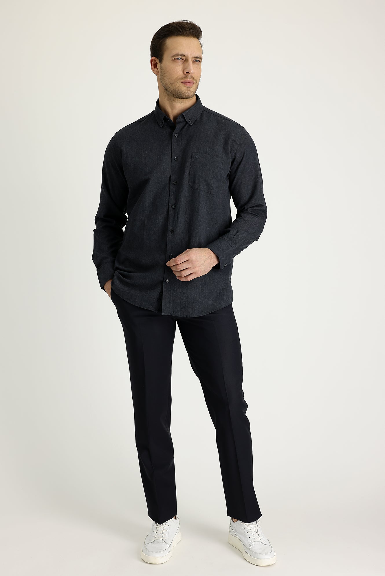 Siyah Lacivert Yünlü Klasik Kumaş Pantolon