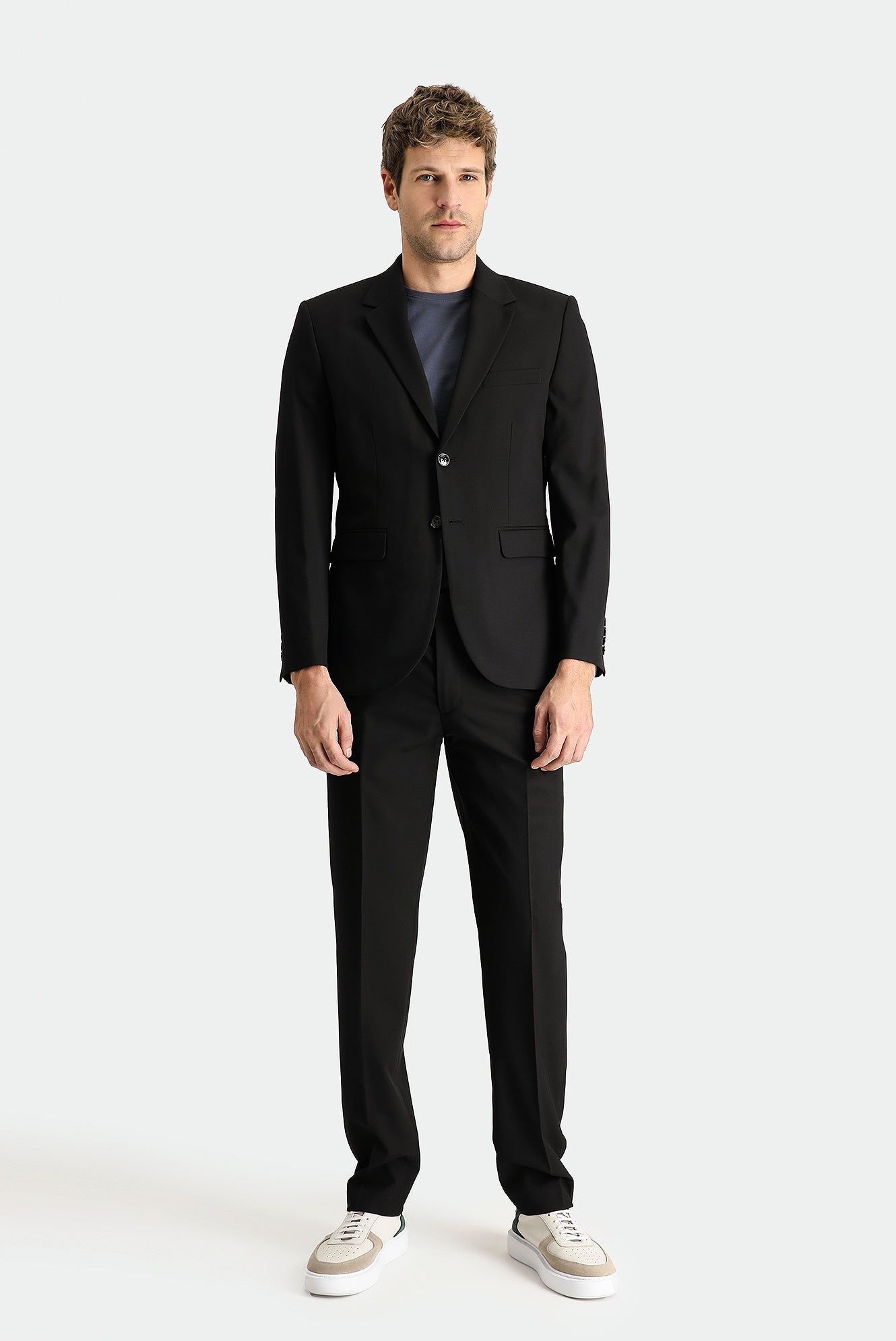 Siyah 8 Drop Muscle Fit Uzun Atletik Kesim Süper Esnek Takım Elbise