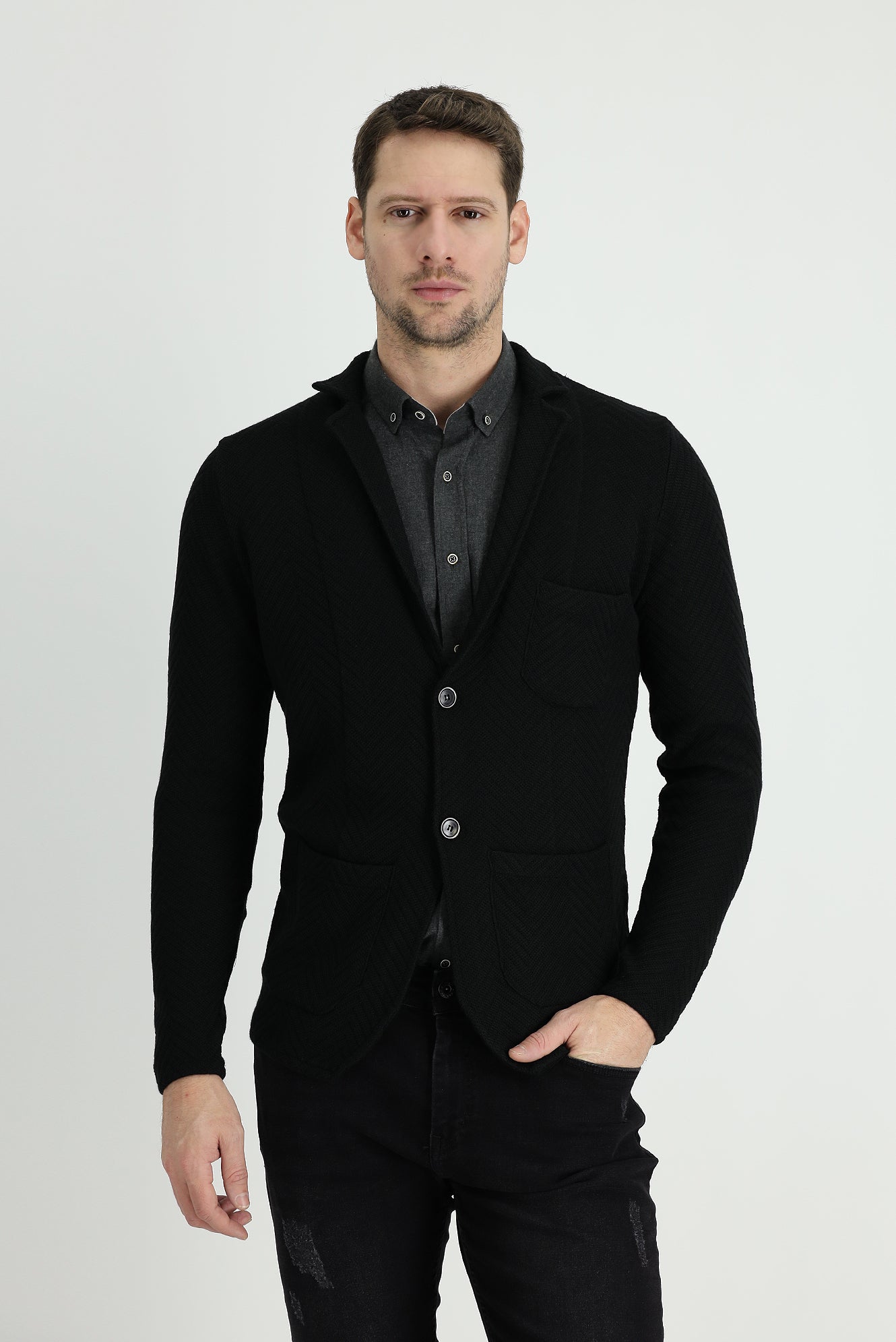 Siyah Pamuklu Triko Hırka