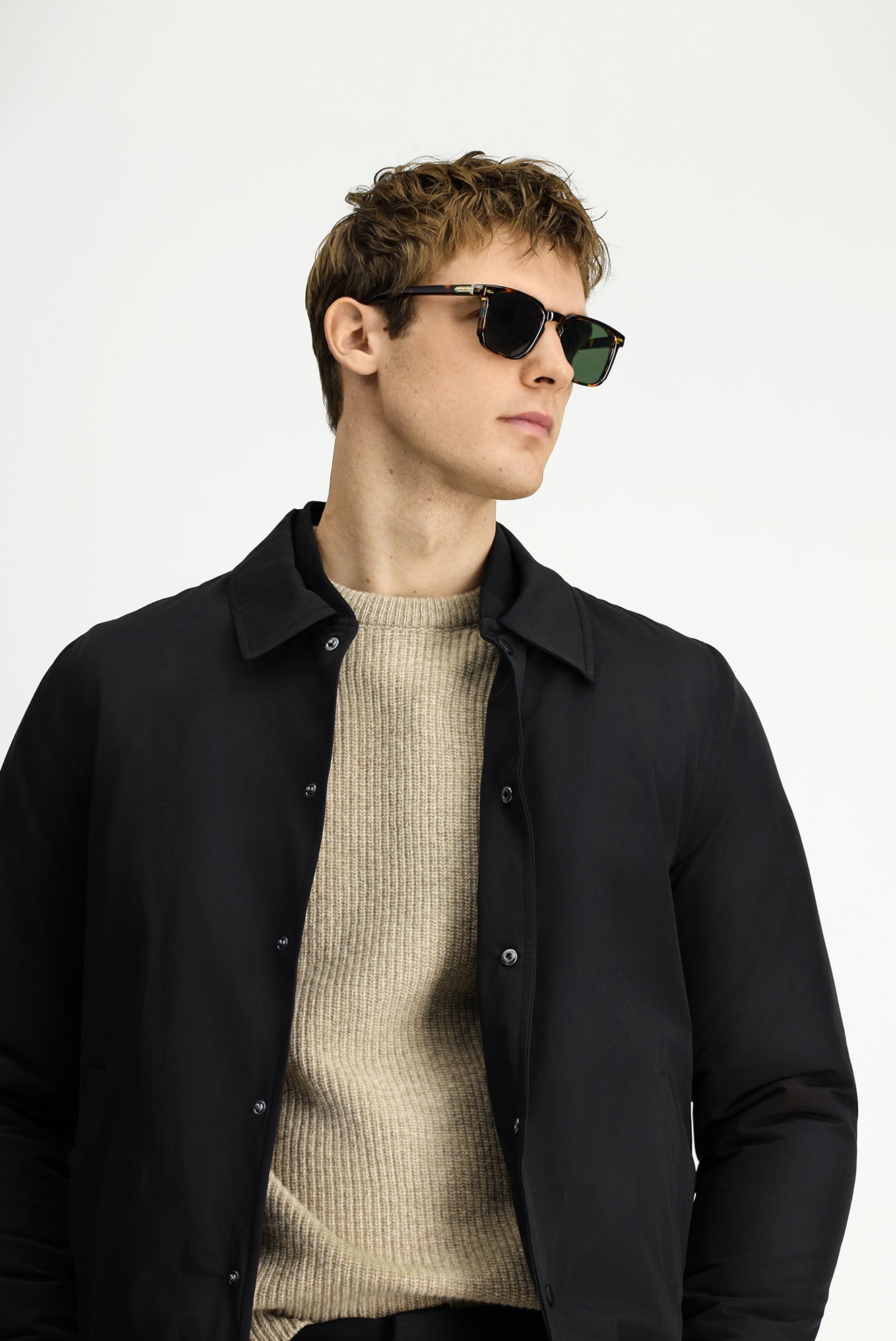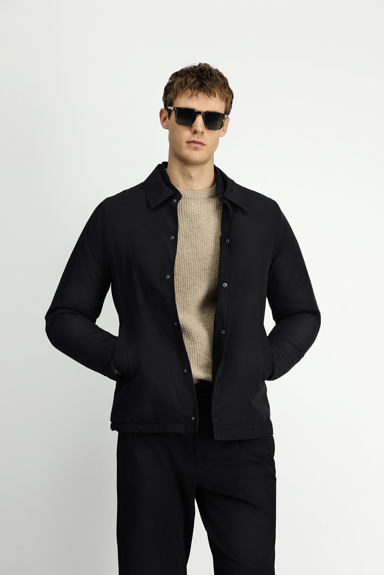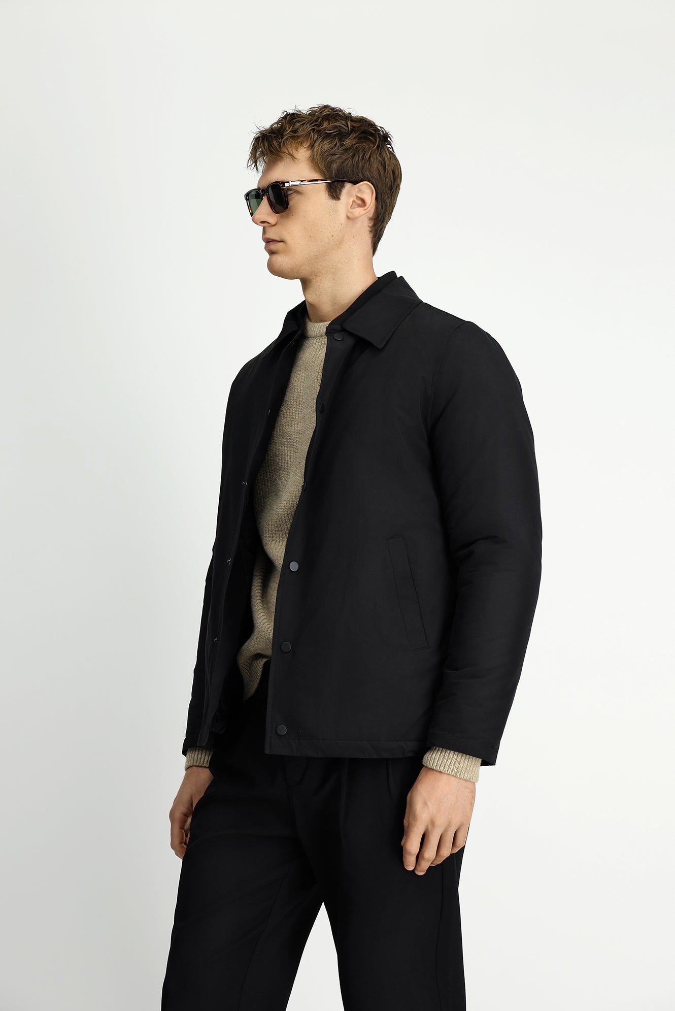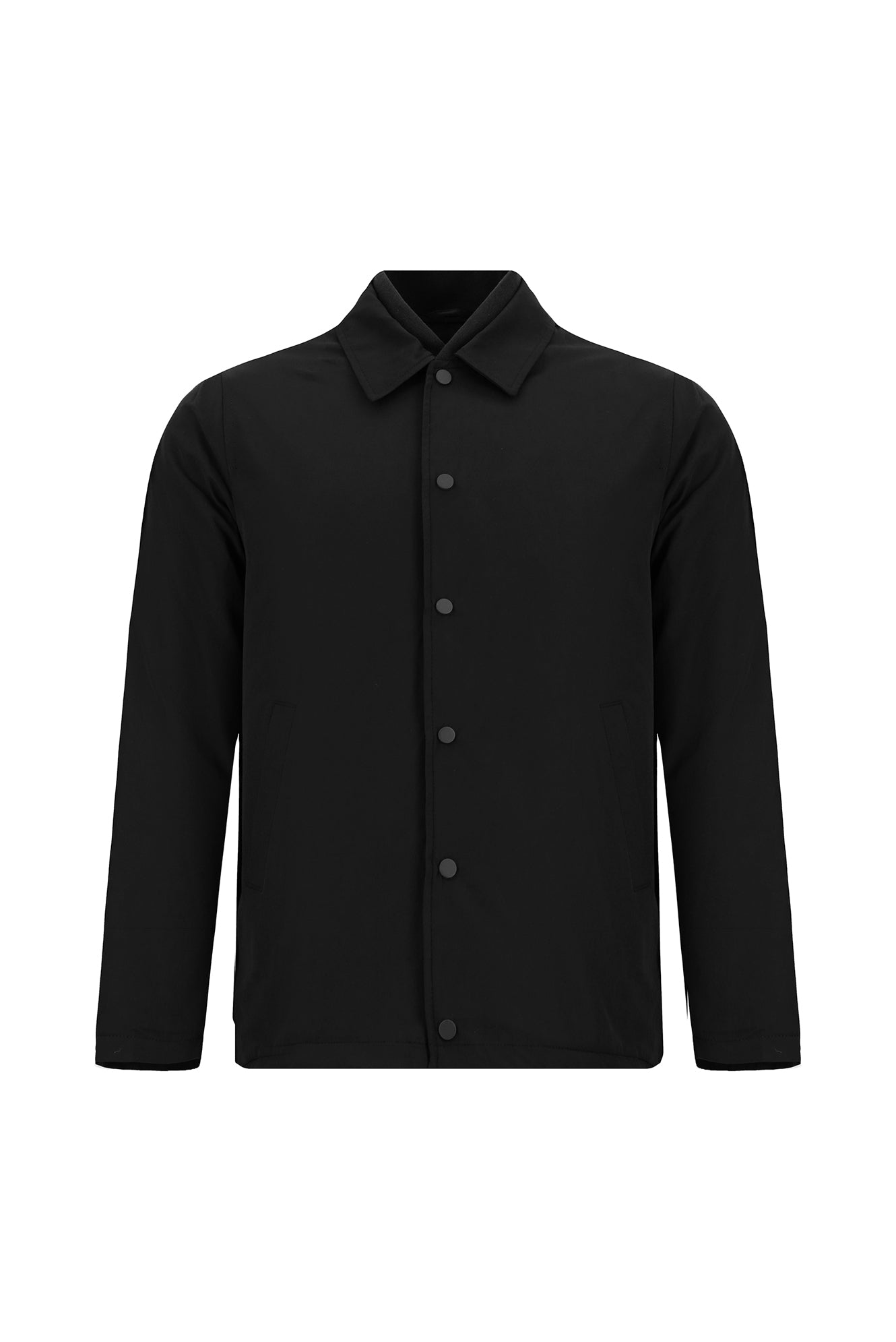 Siyah Regular Fit Bebe Yaka Çıtçıtlı Mont