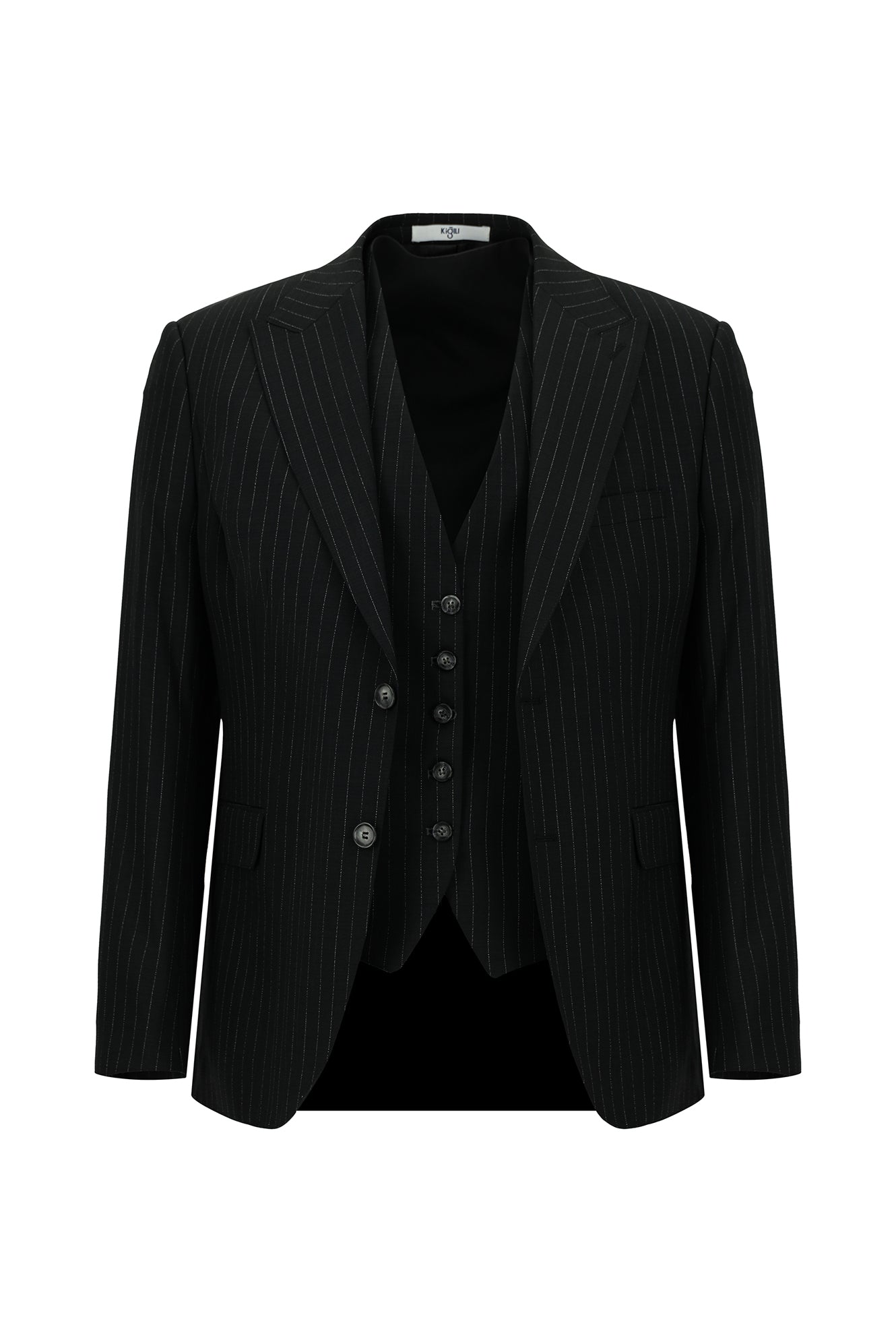 Siyah Regular Fit Çizgili Kombinli Yelekli Takım Elbise