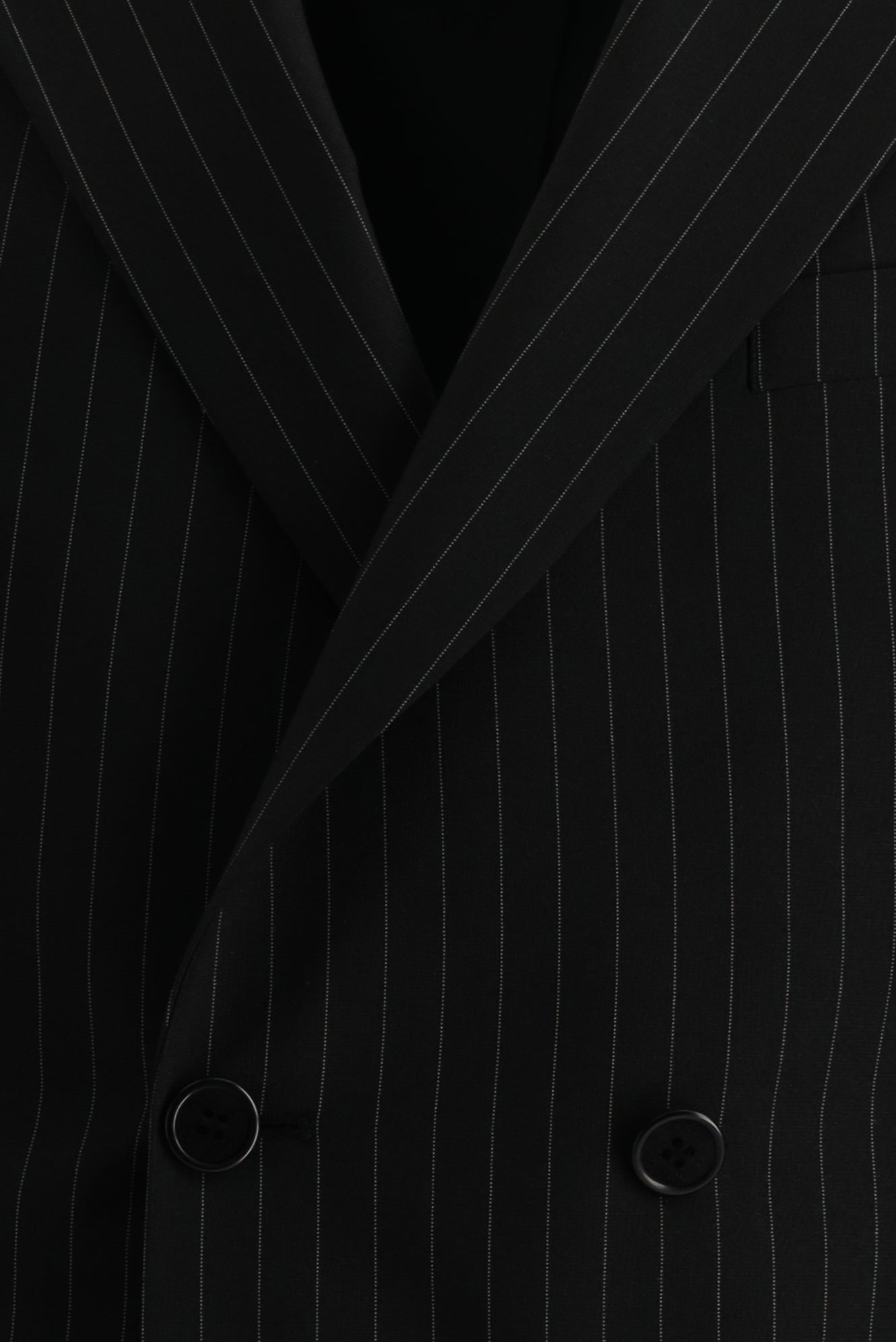 Siyah Regular Fit Çizgili Kruvaze Takım Elbise