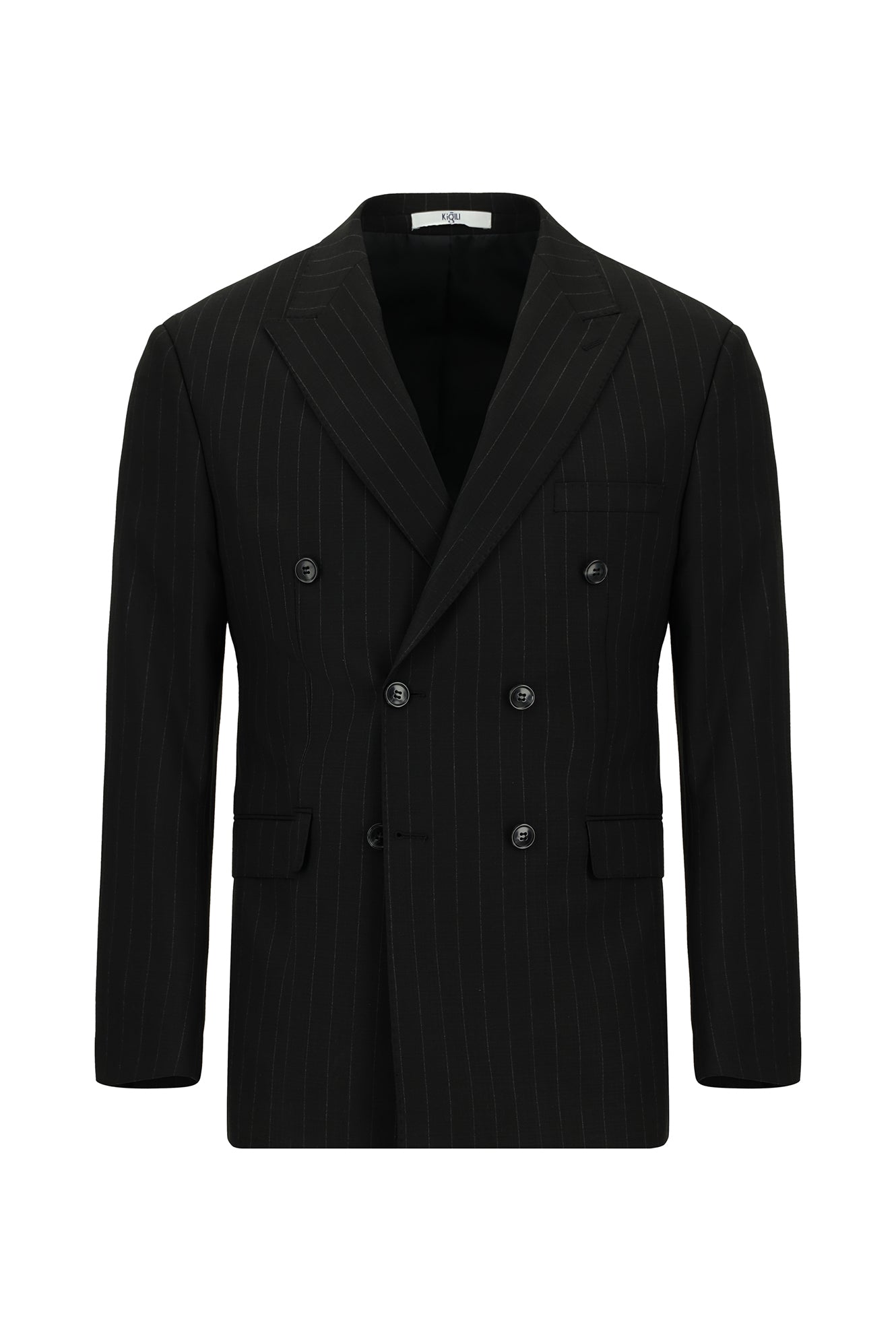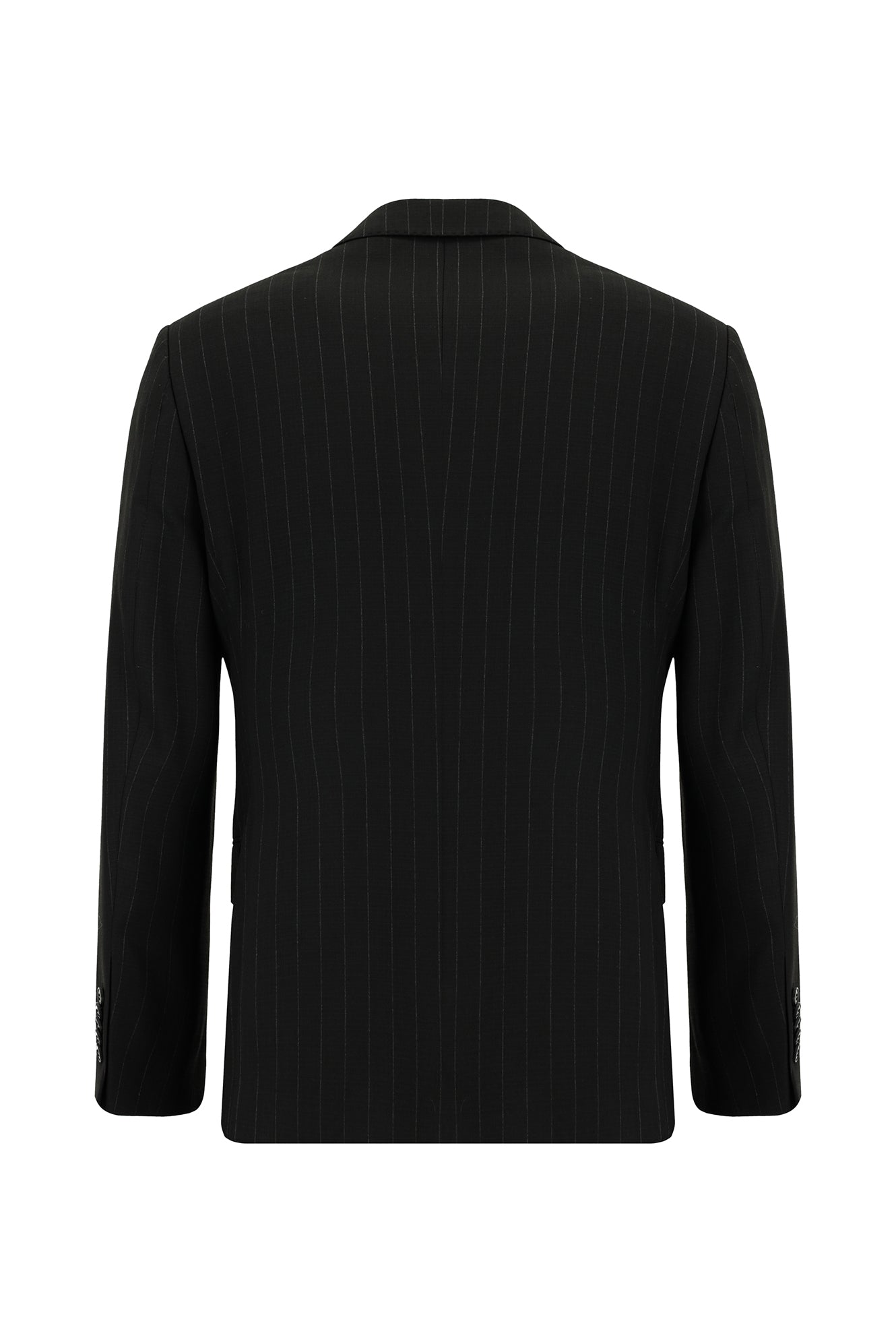 Siyah Regular Fit Çizgili Kruvaze Takım Elbise