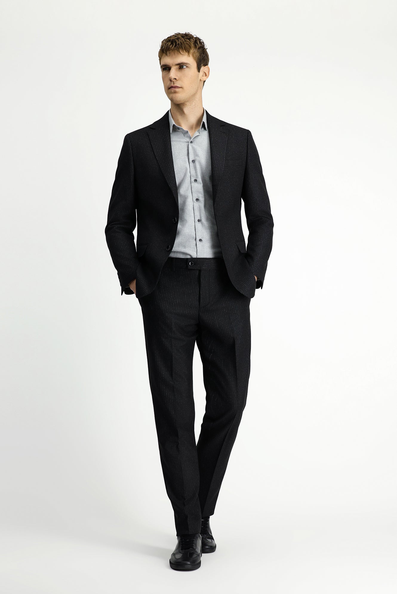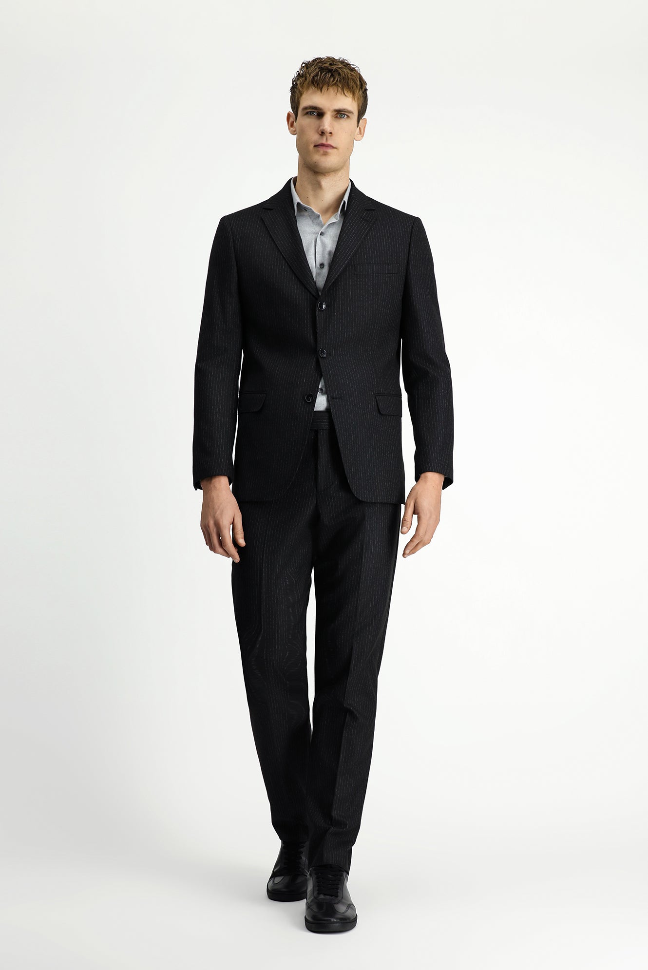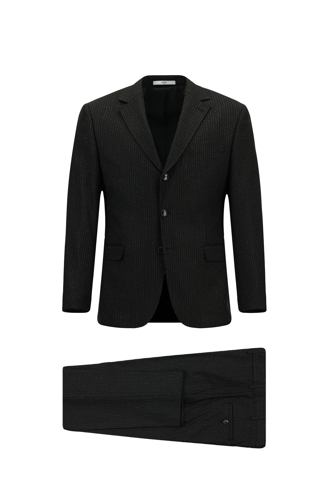 Siyah Regular Fit Klasik Çizgili Takım Elbise