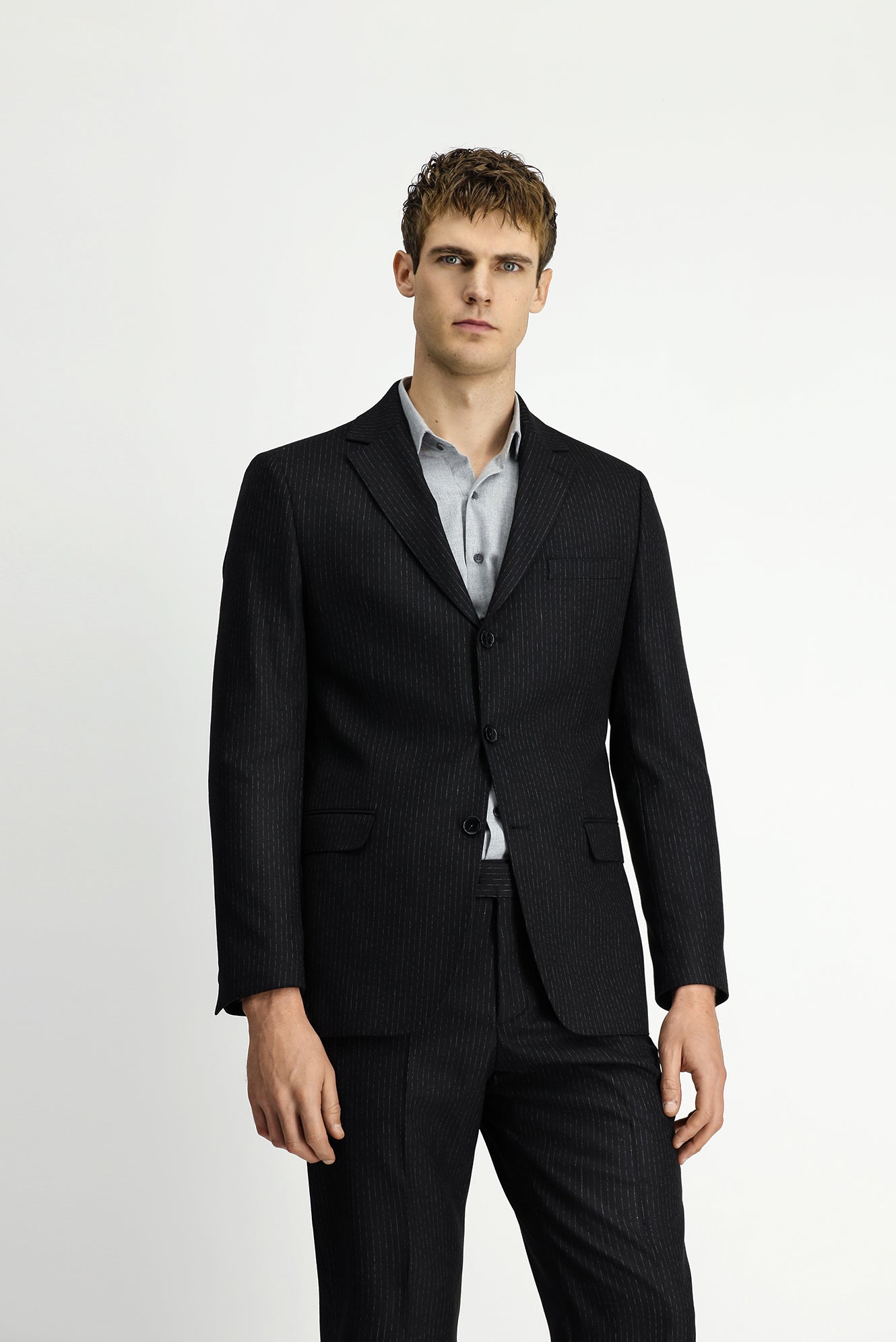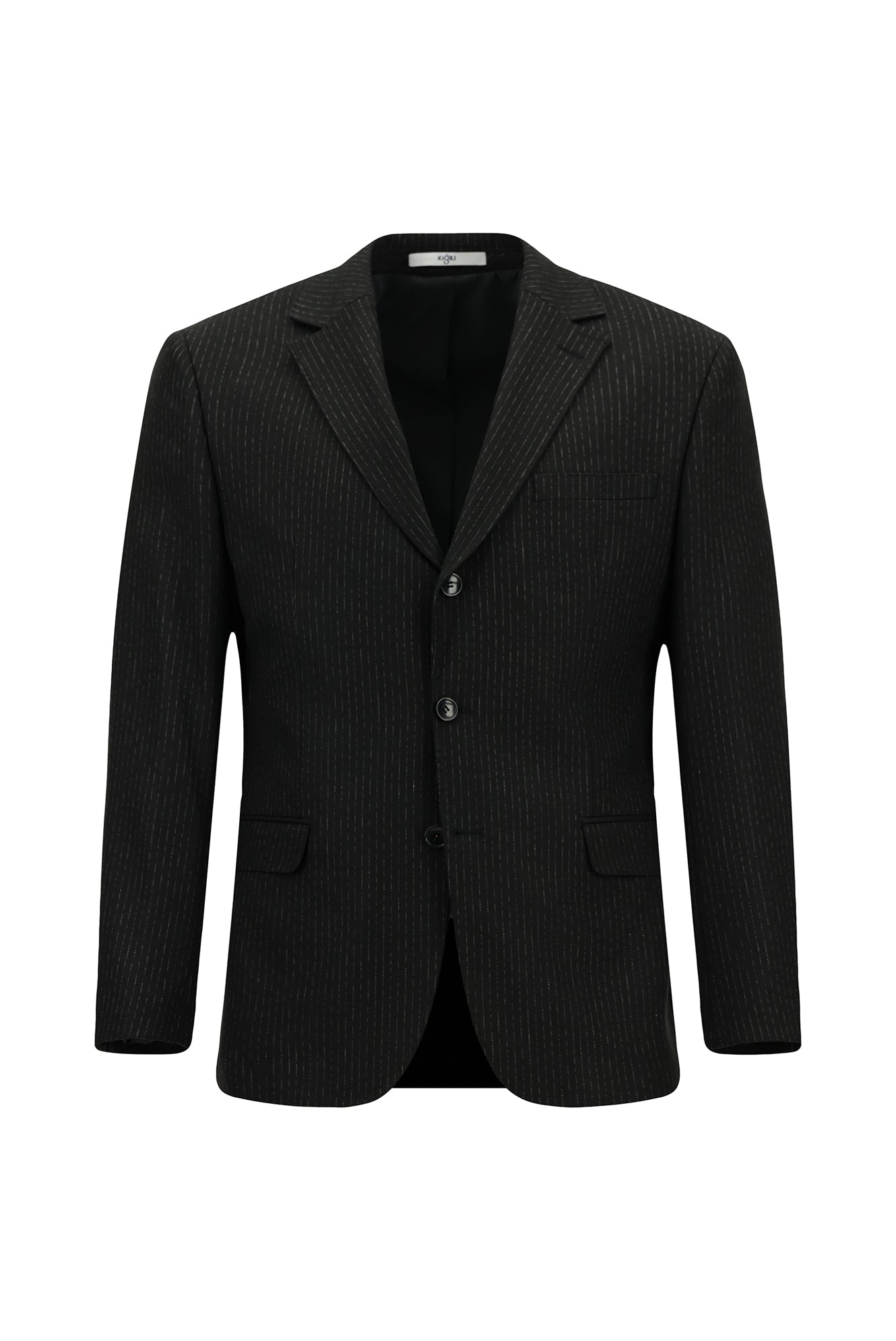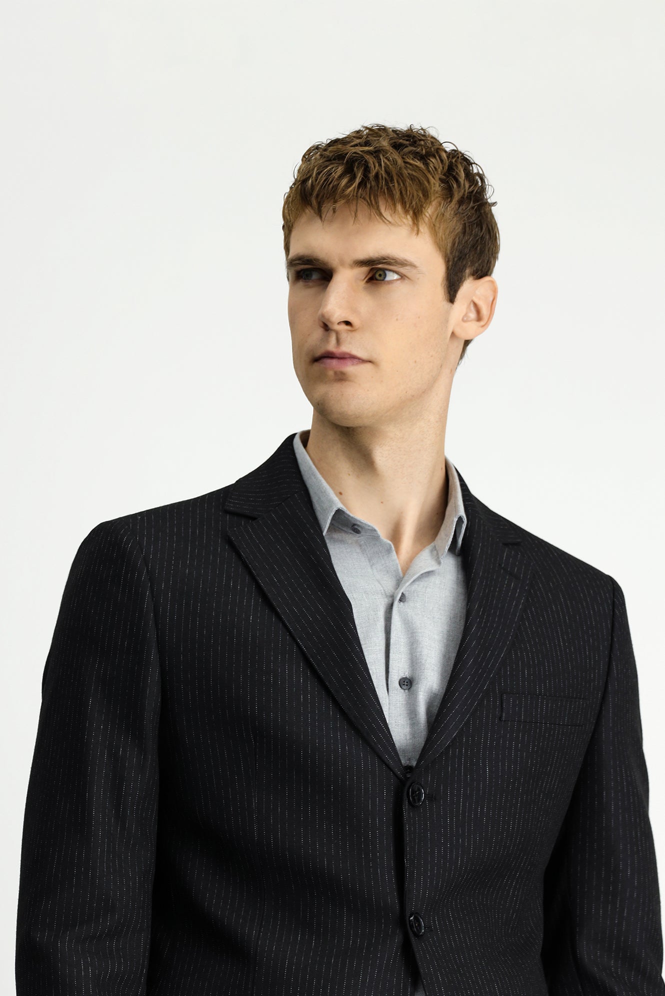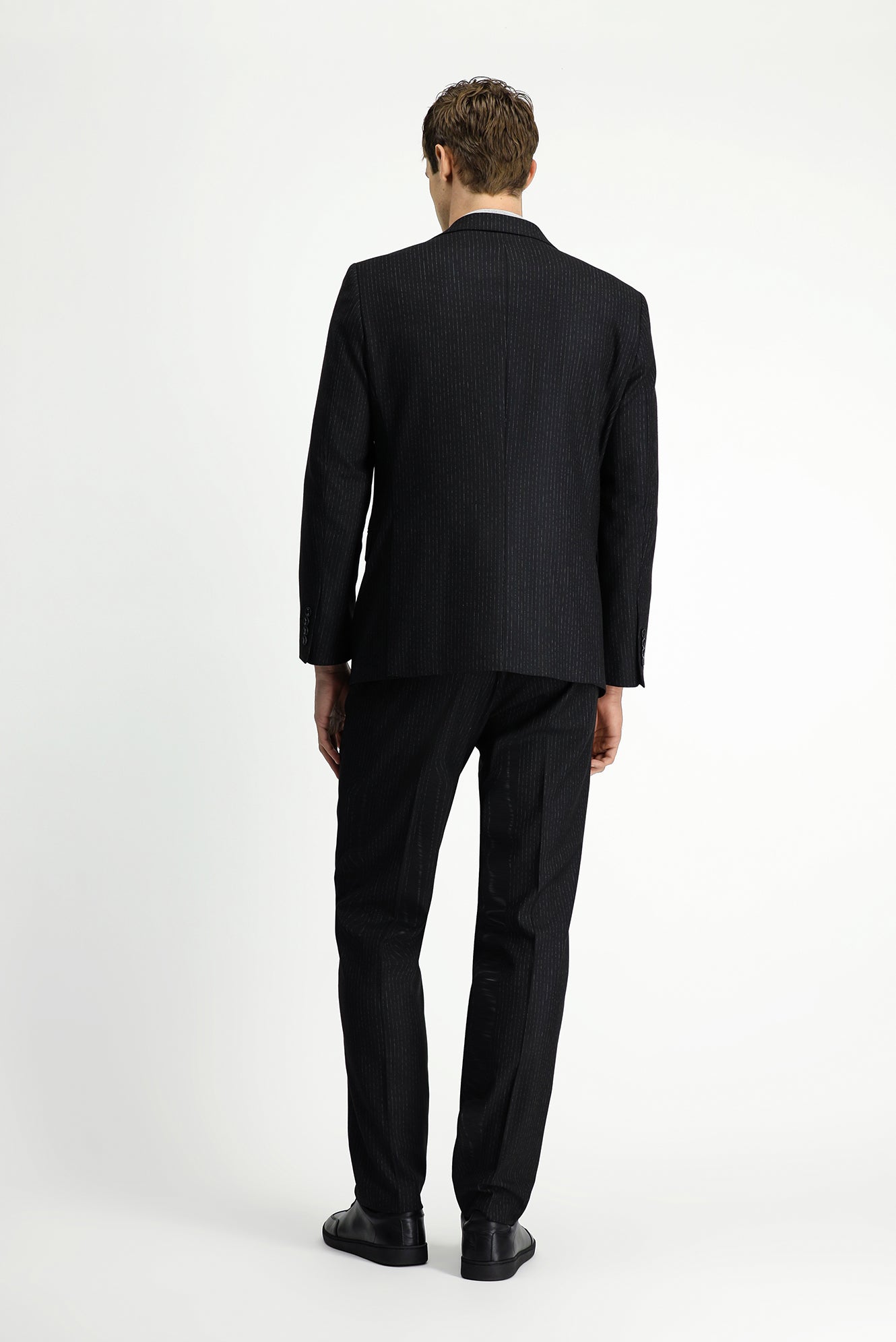 Siyah Regular Fit Klasik Çizgili Takım Elbise