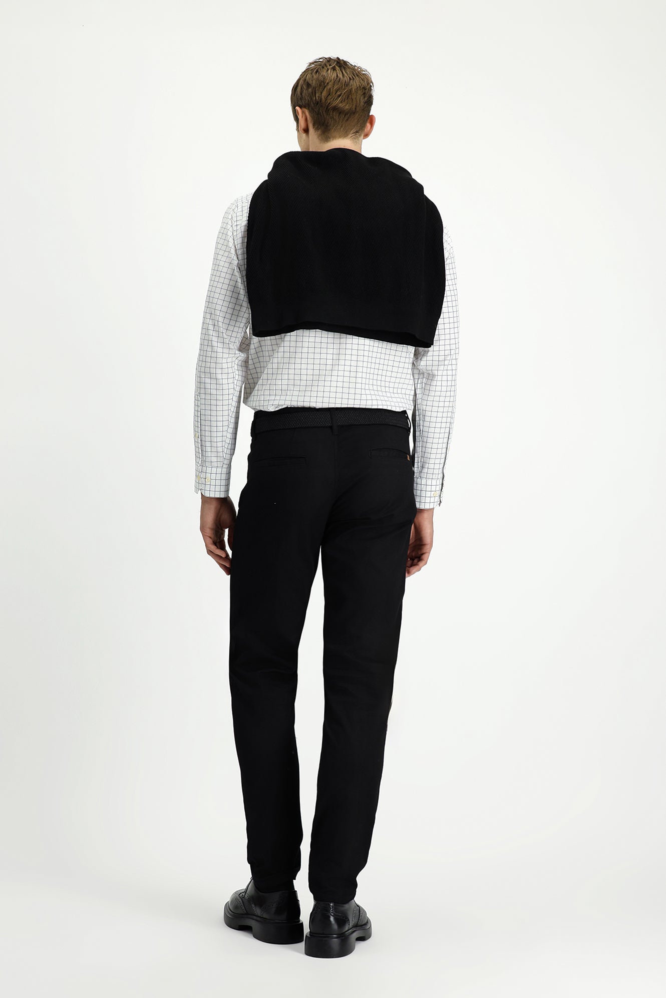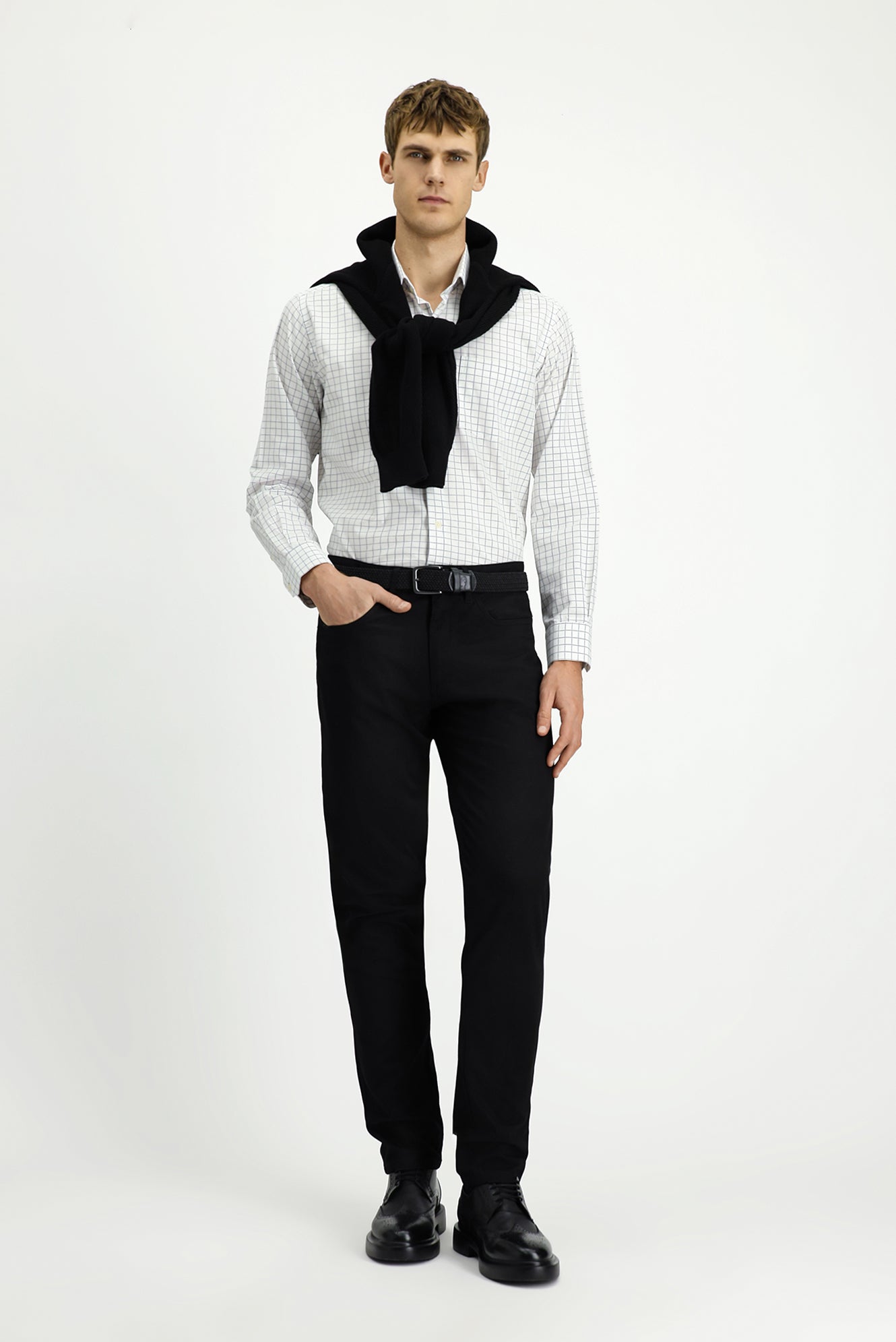 Siyah Regular Fit Desenli Likralı Kanvas / Chino Pantolon