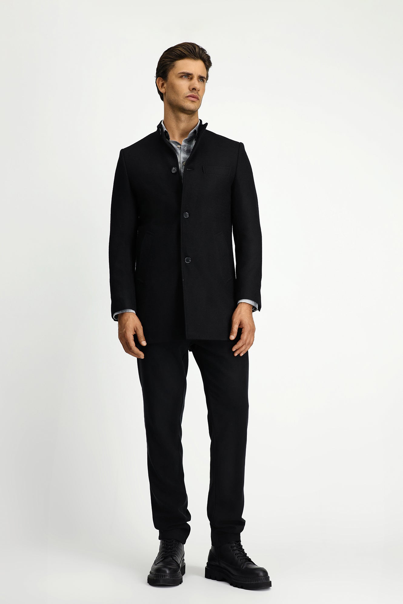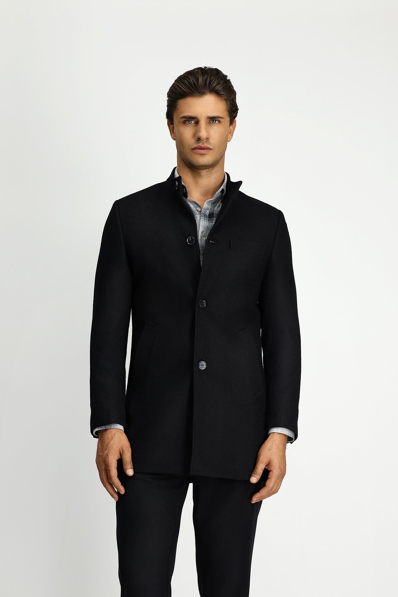 Siyah Yünlü Klasik Kaban