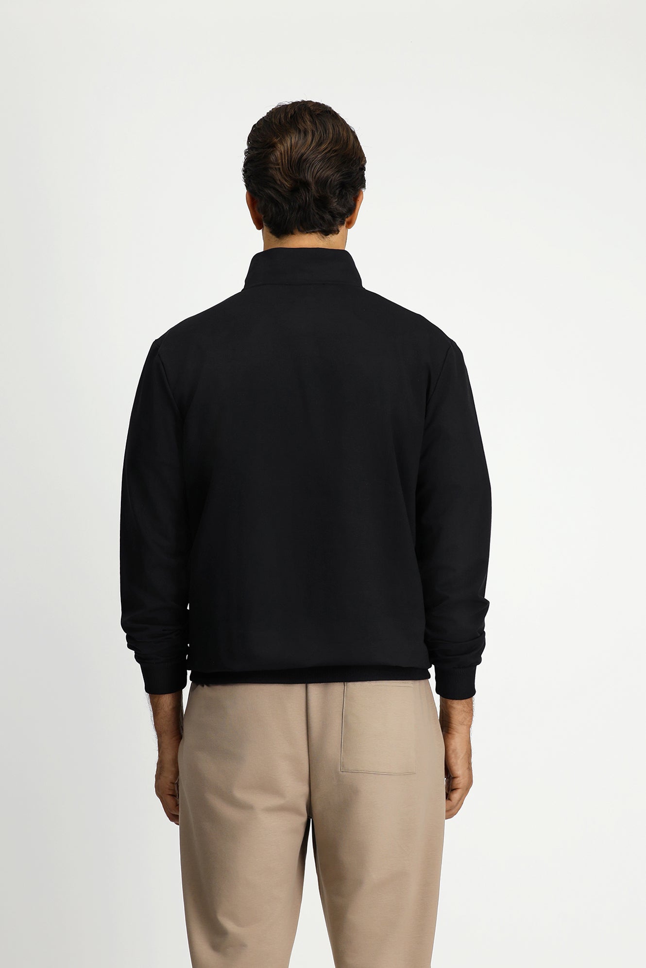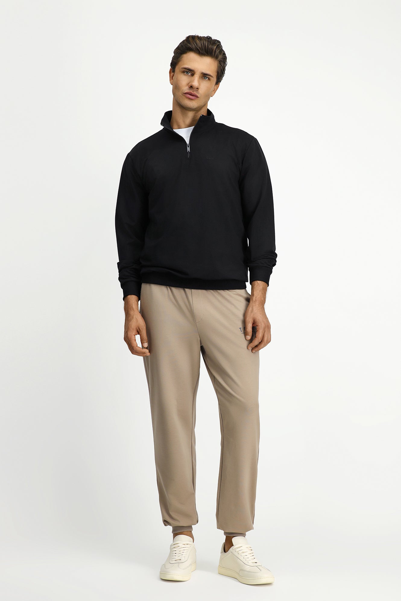 Siyah Yarım Balıkçı Yaka Regular Fit Nakışlı Fermuarlı Pamuklu Sweatshirt