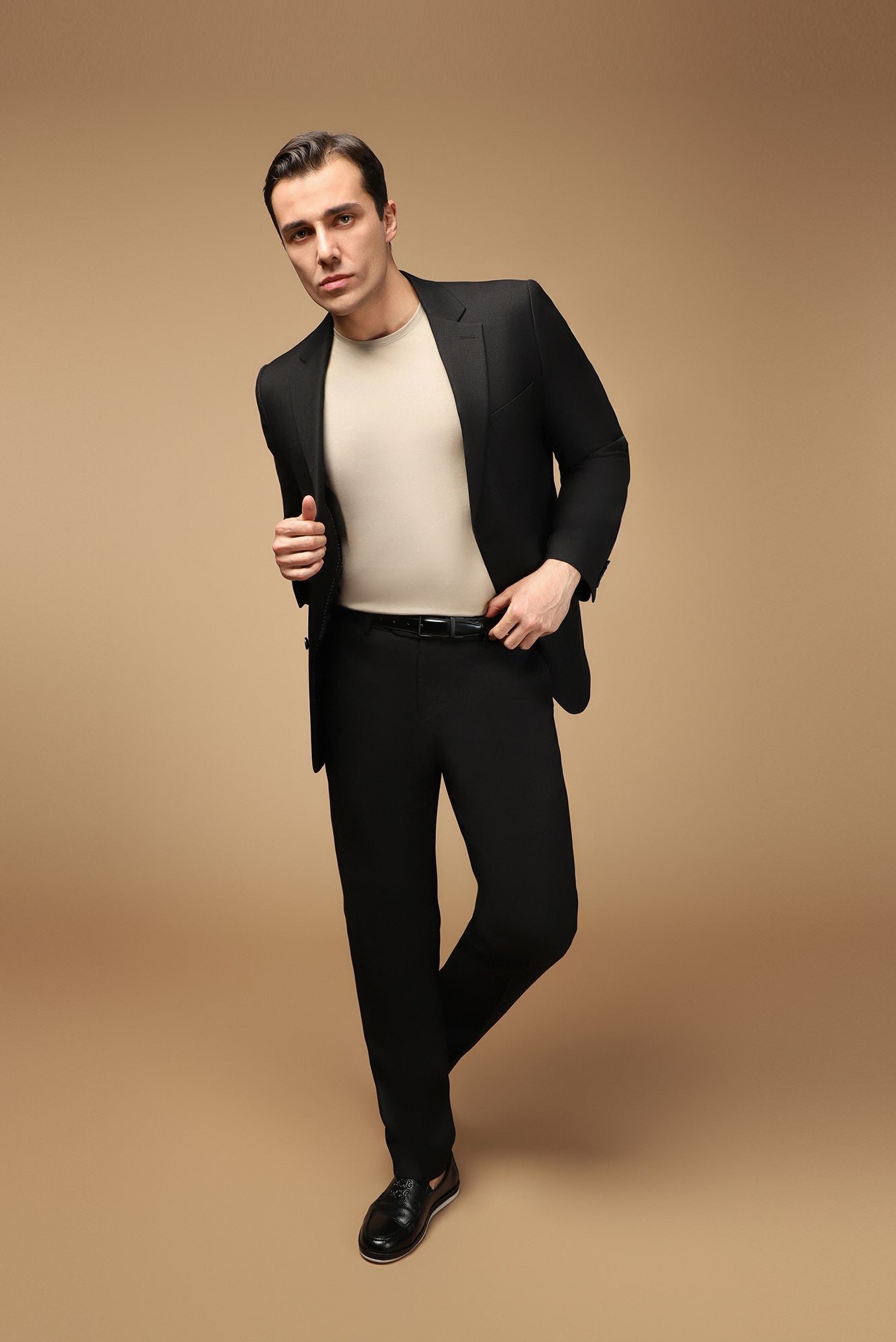 Siyah Regular Fit Klasik Desenli Takım Elbise
