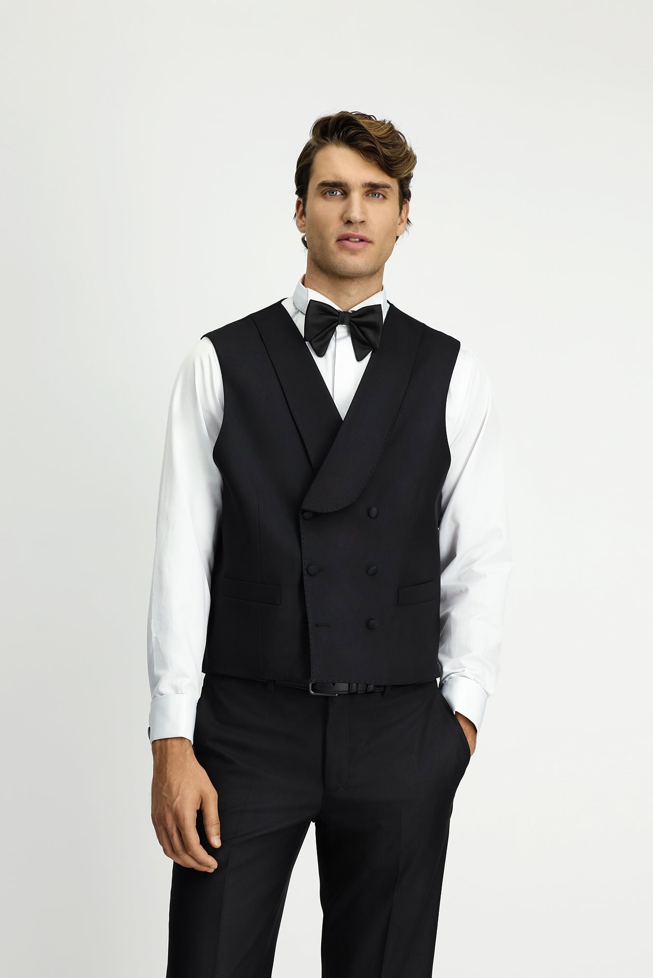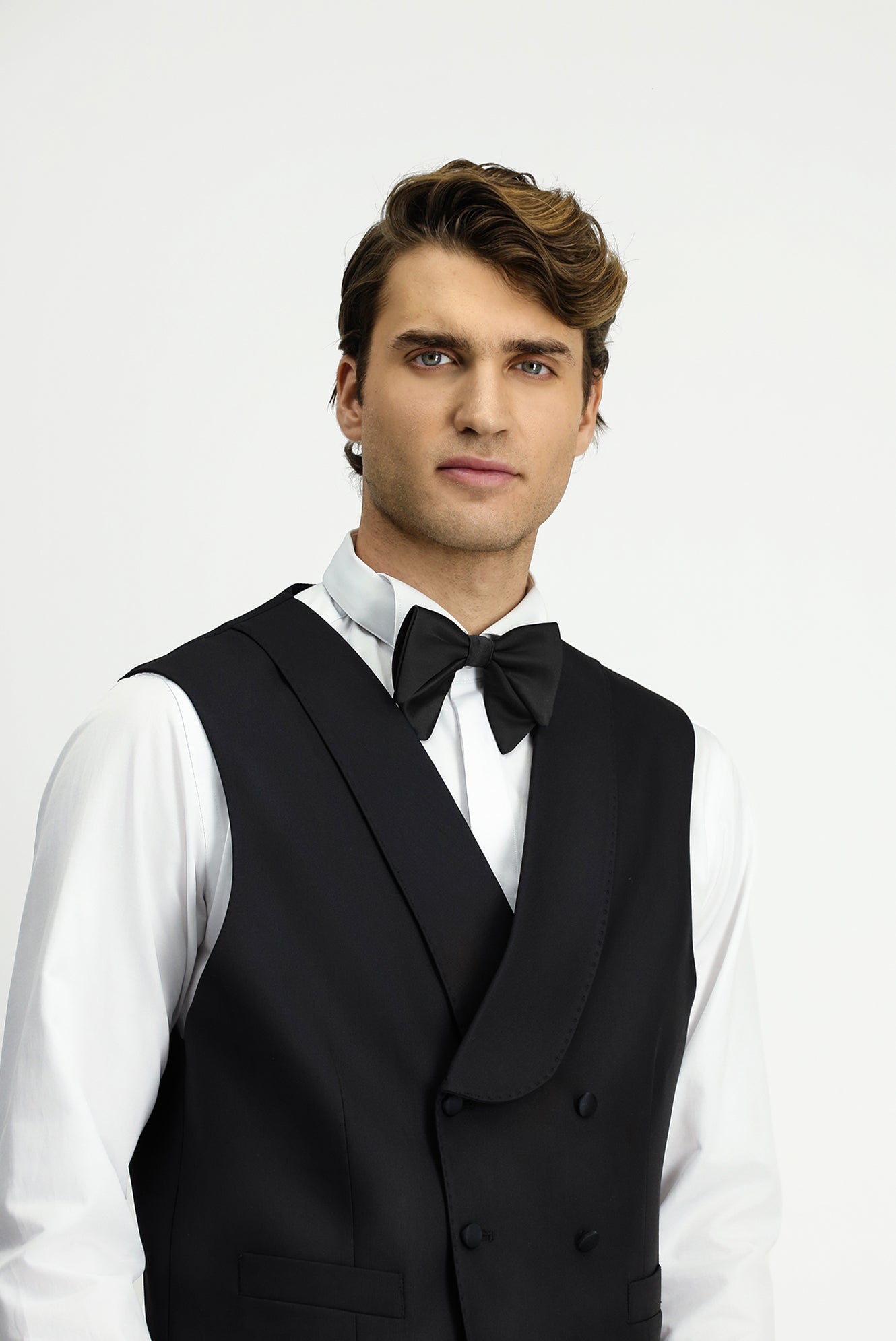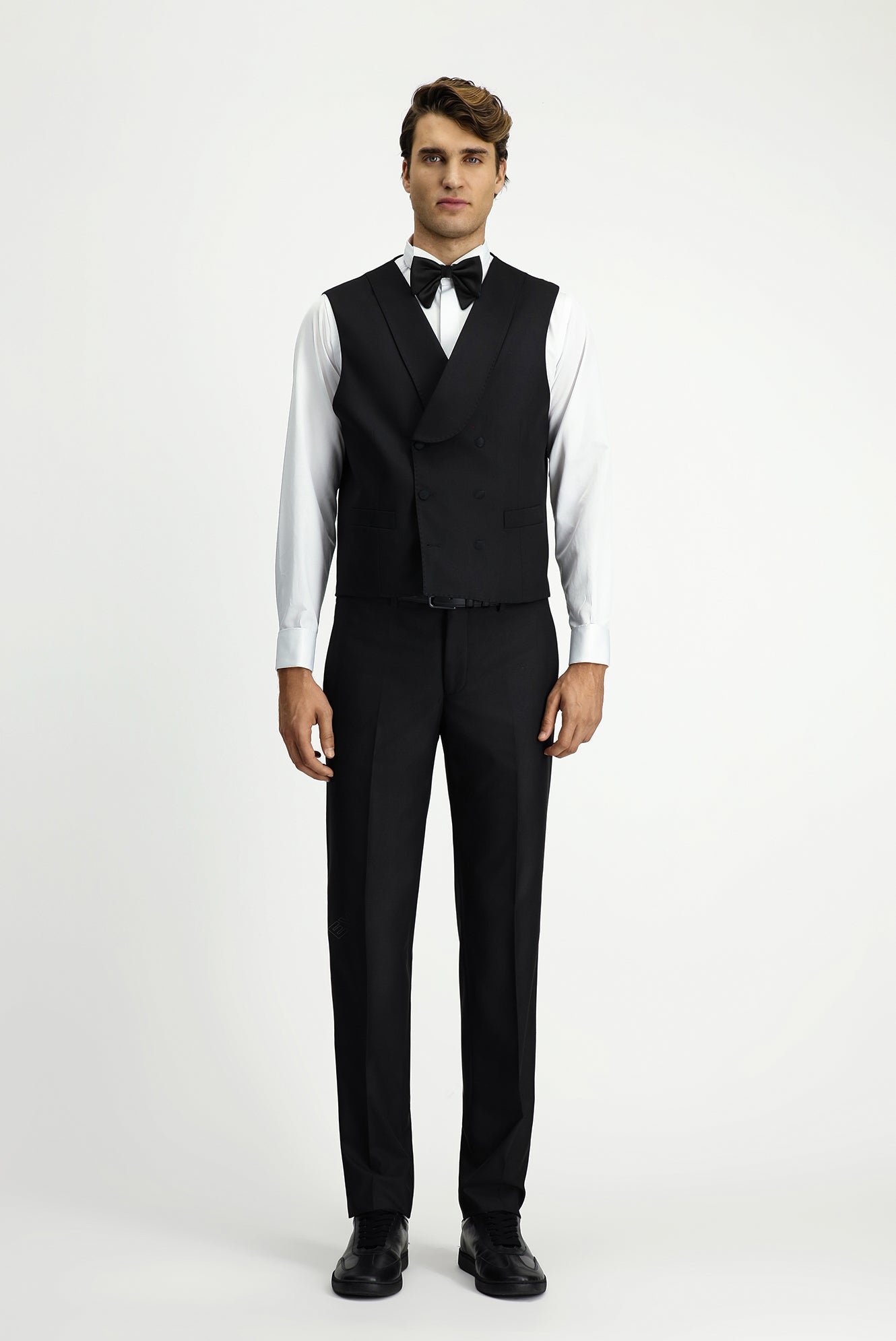 Siyah Regular Fit Kruvaze Klasik Smokin Yelek