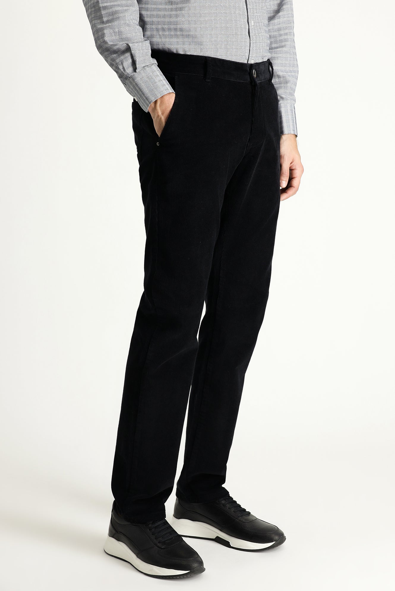 Siyah 6 Drop Regular Fit Standart Kesim Likralı Kadife Pantolon