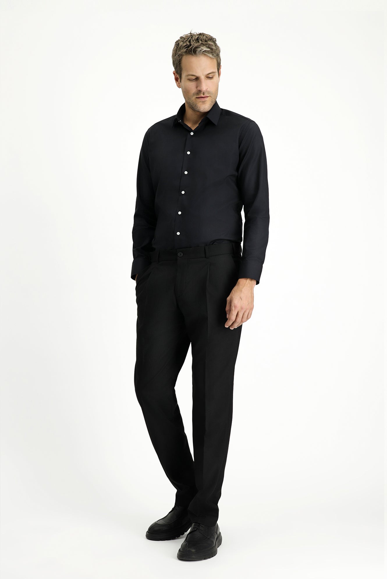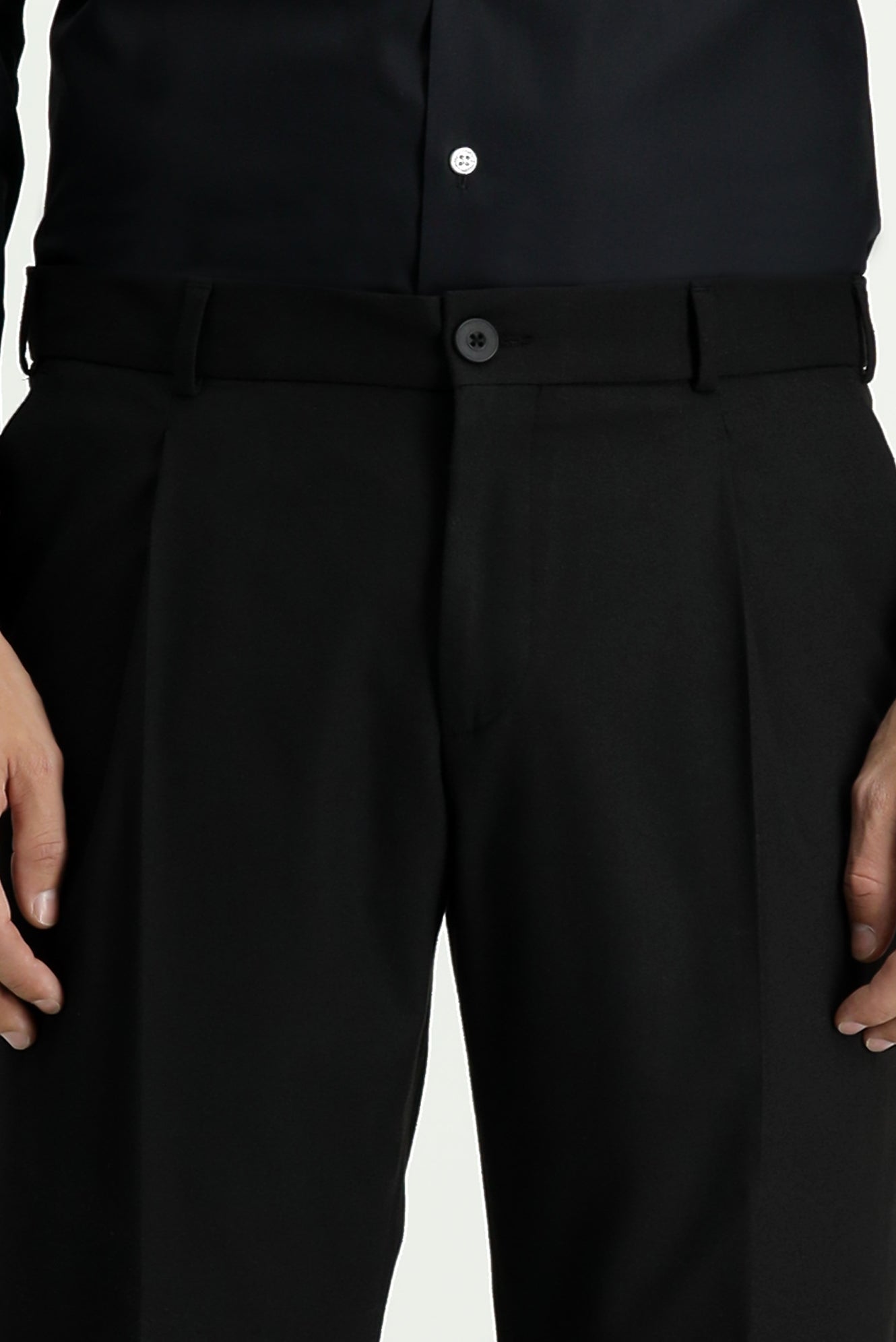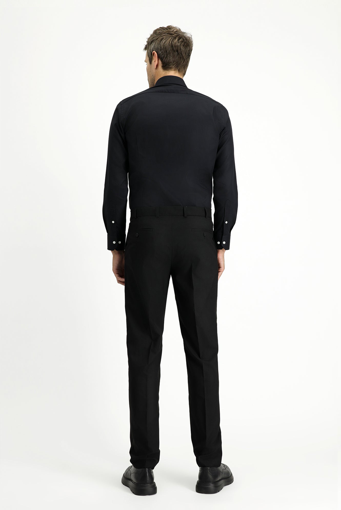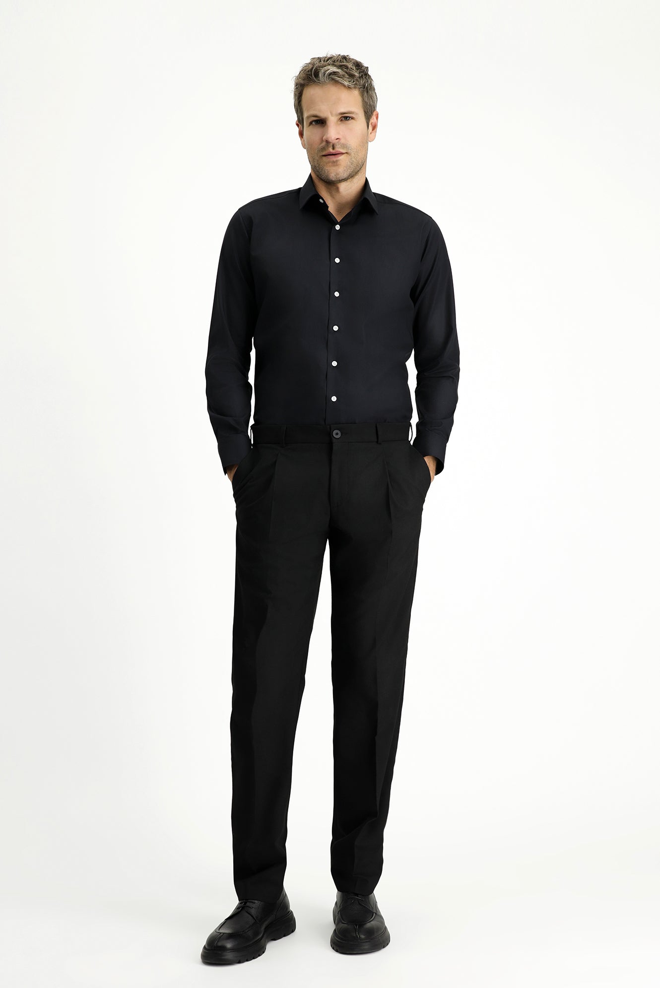 Siyah Regular Fit Likralı Pileli Klasik Kumaş Pantolon