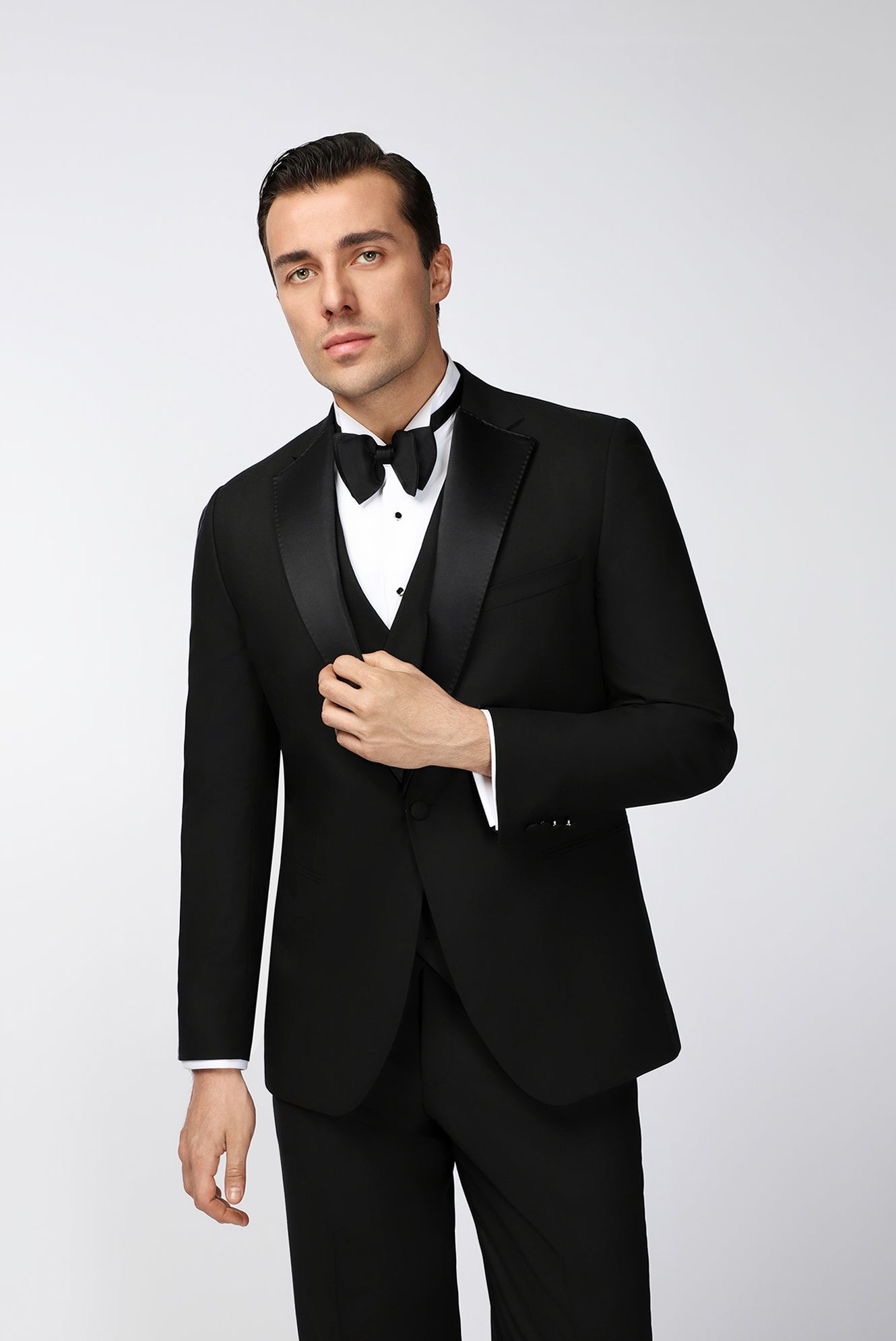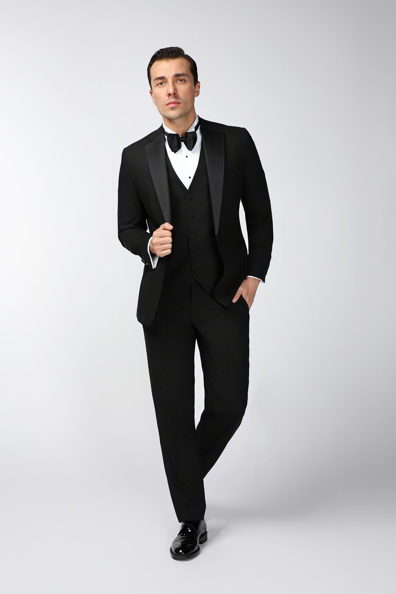Siyah 6 Drop Regular Fit Standart Kesim Mono Yaka Yelekli Smokin & Damatlık