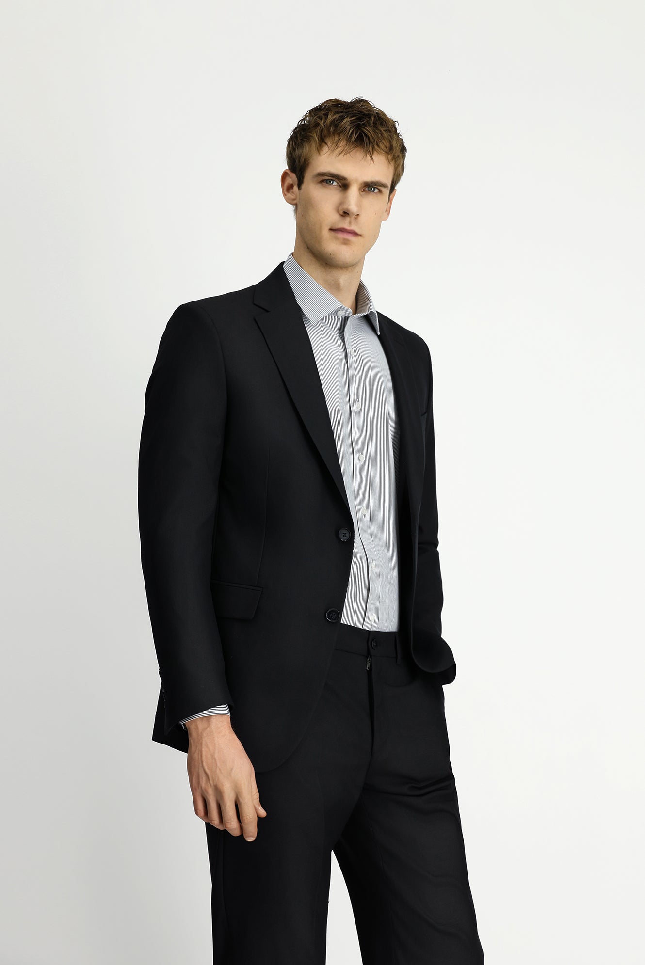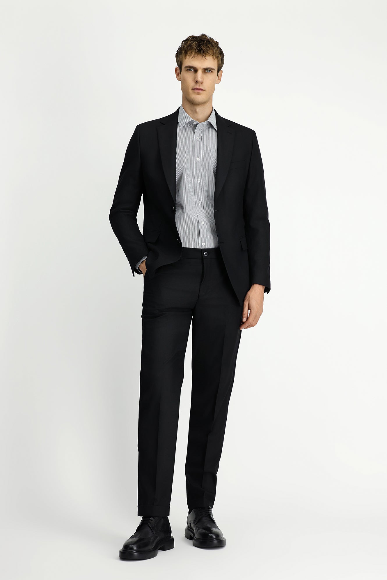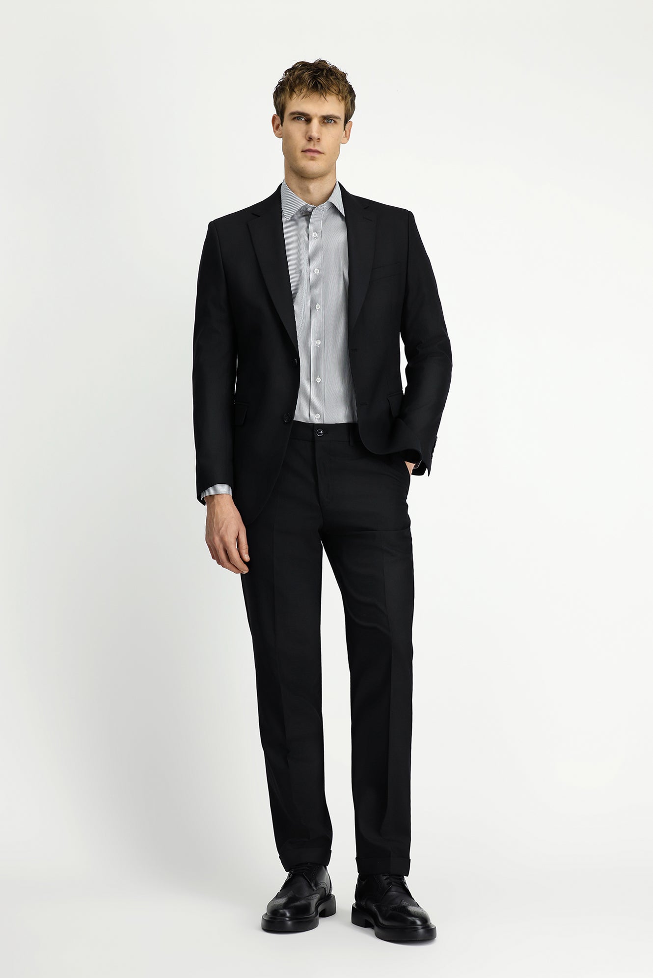 Siyah Regular Fit Mono Yaka Yünlü Klasik Takım Elbise