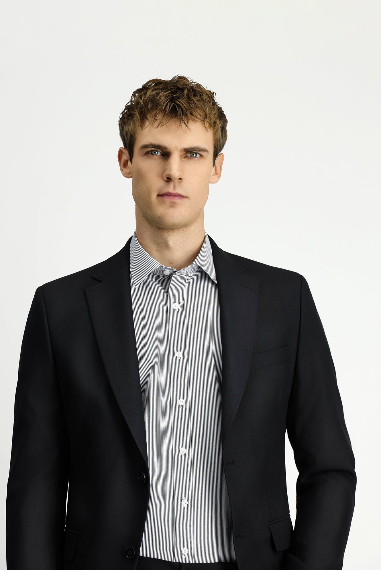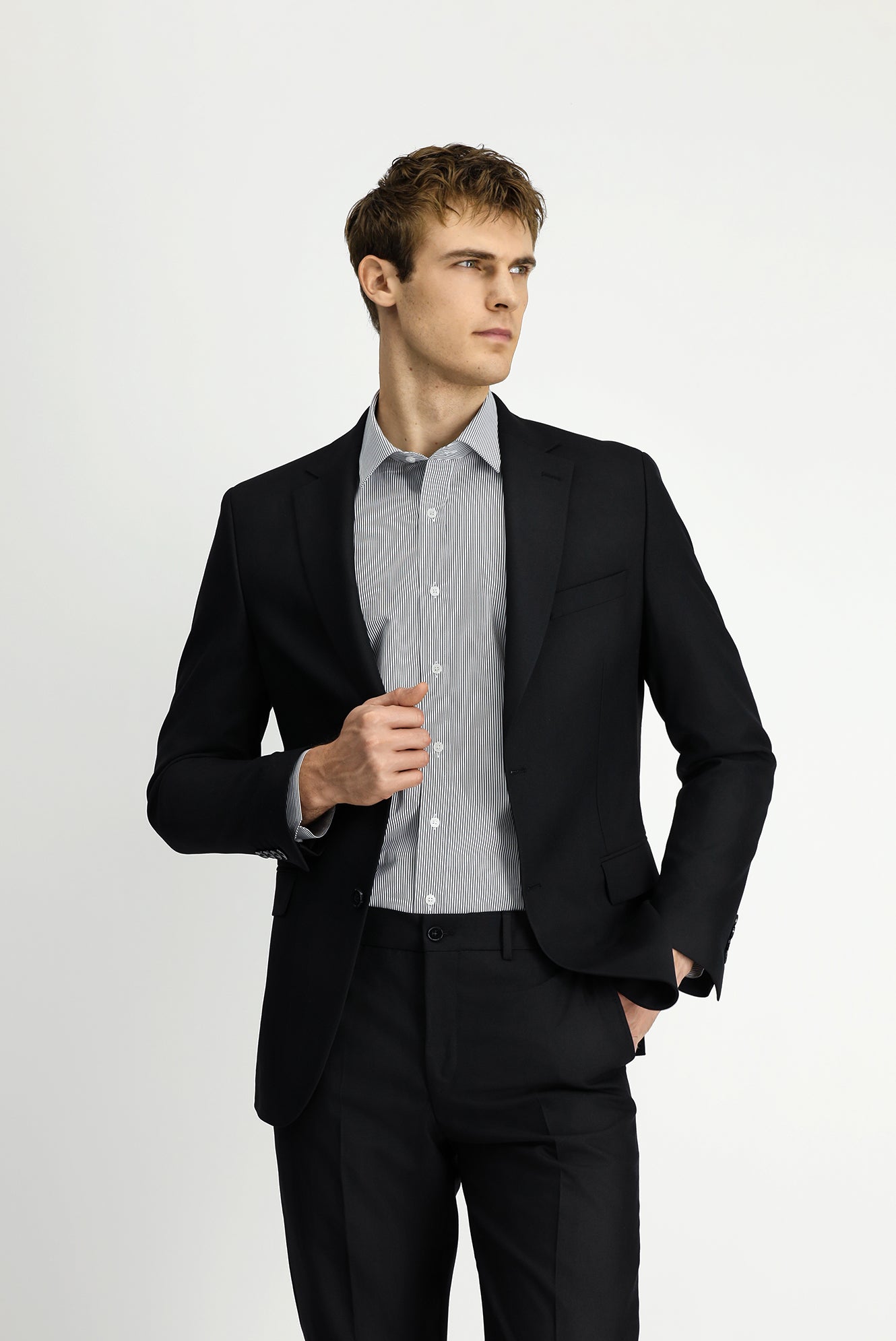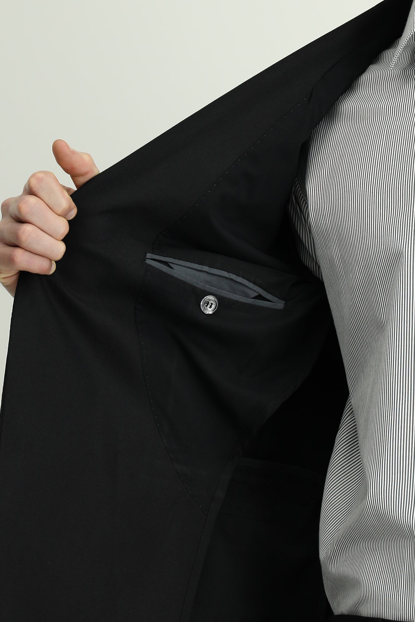 Siyah Regular Fit Mono Yaka Yünlü Klasik Takım Elbise