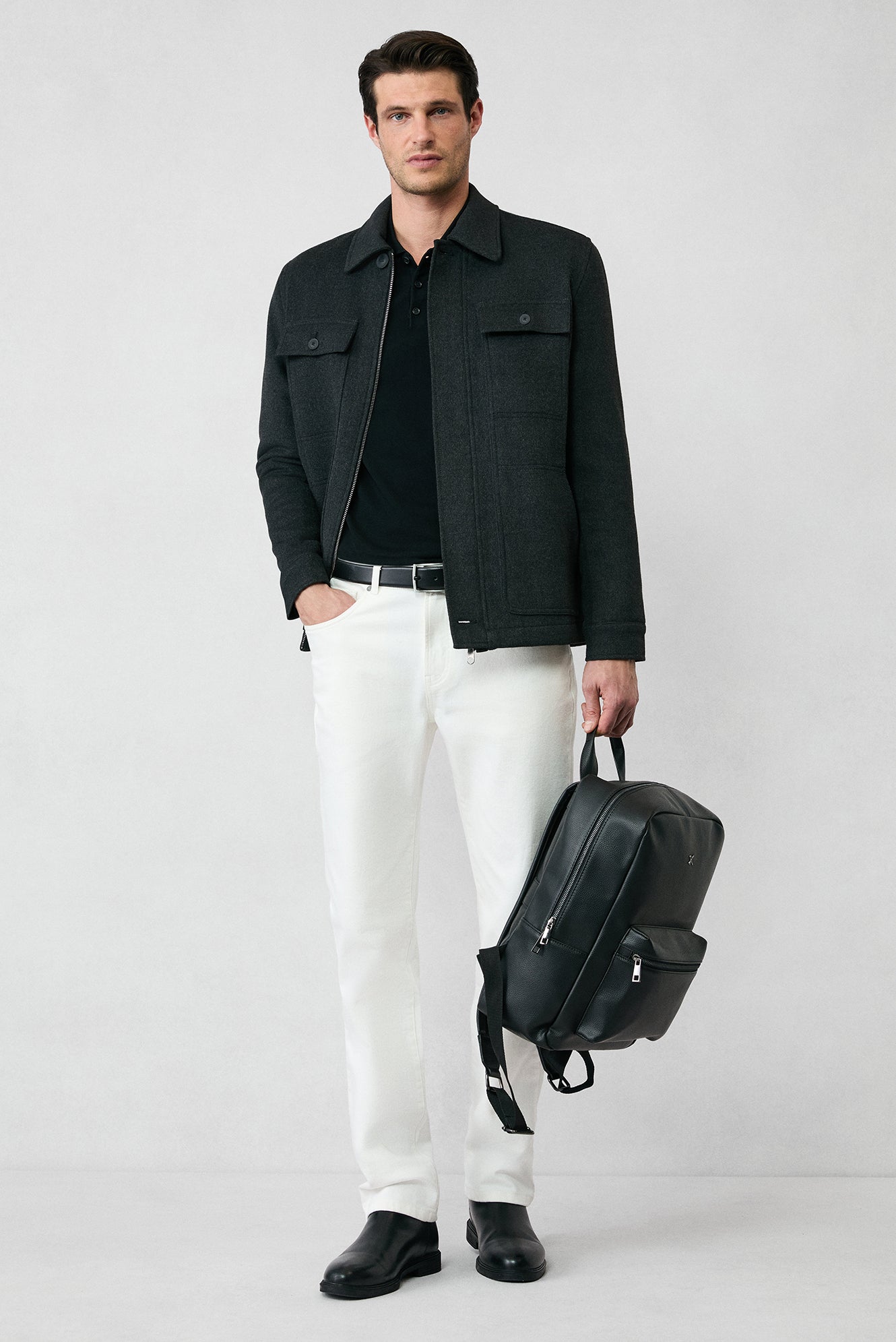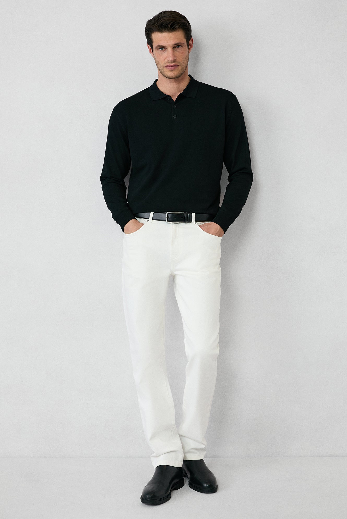 Siyah Polo Yaka Regular Fit Düğmeli Triko Kazak