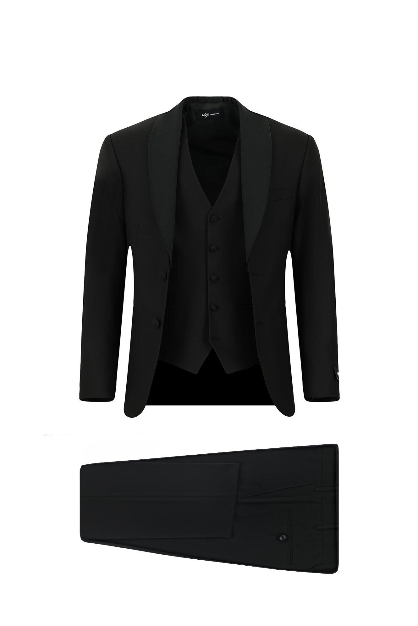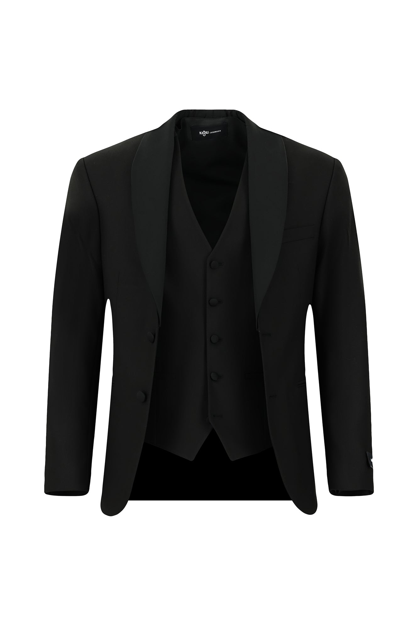 Siyah 6 Drop Regular Fit Standart Kesim Şal Yaka Yelekli Smokin & Damatlık