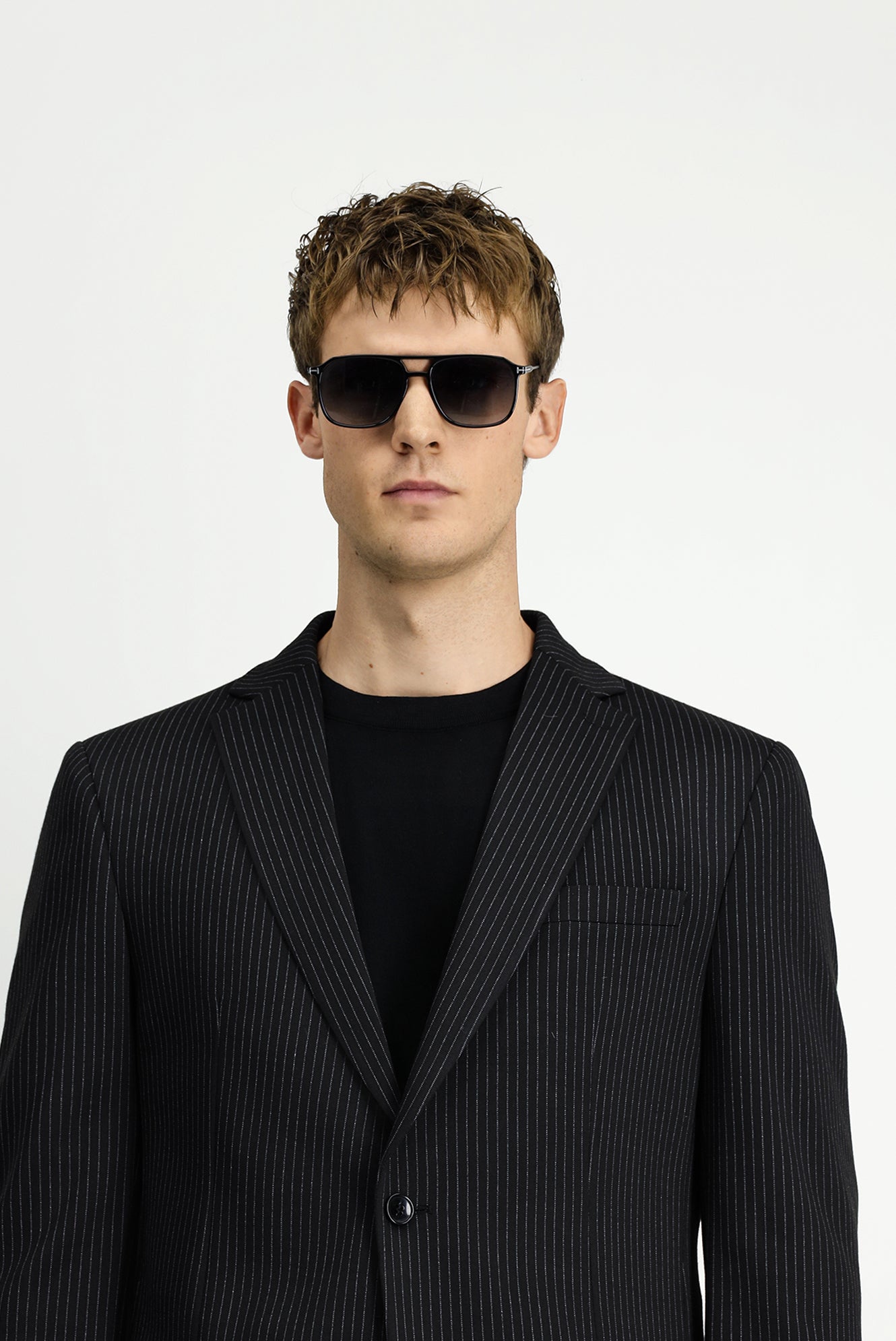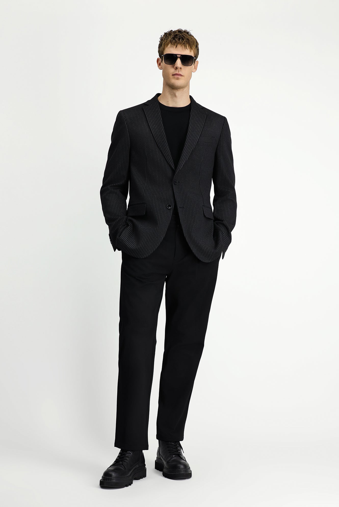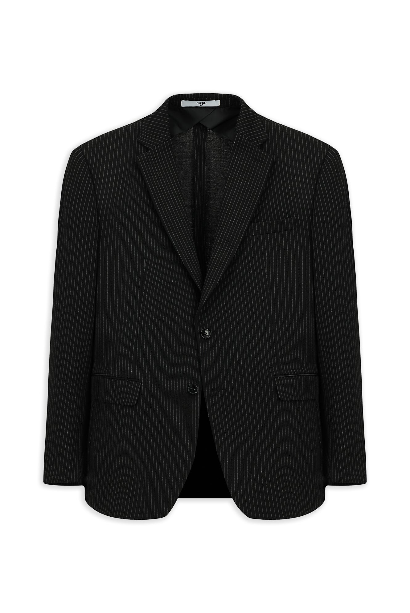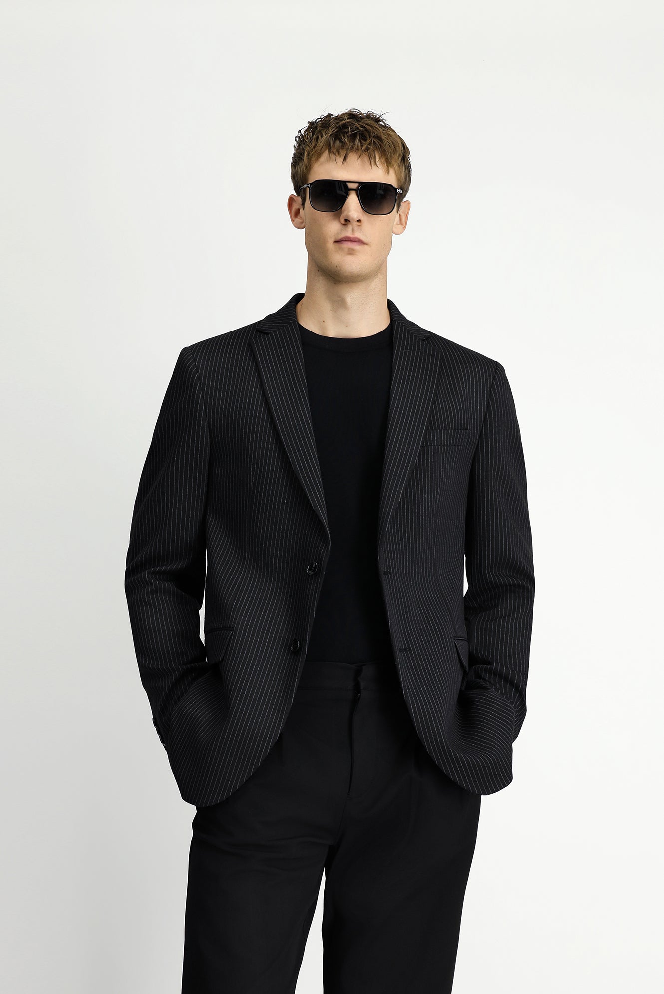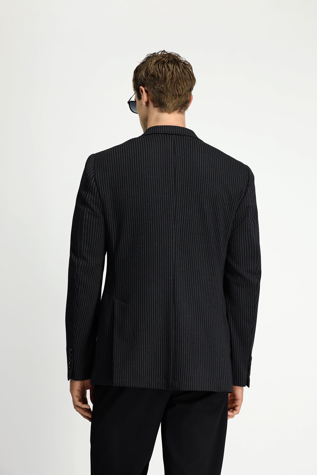 Siyah Muscle Fit Örme Klasik Çizgili Ceket