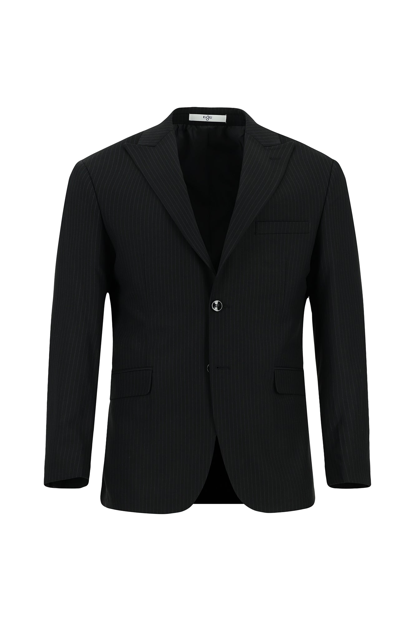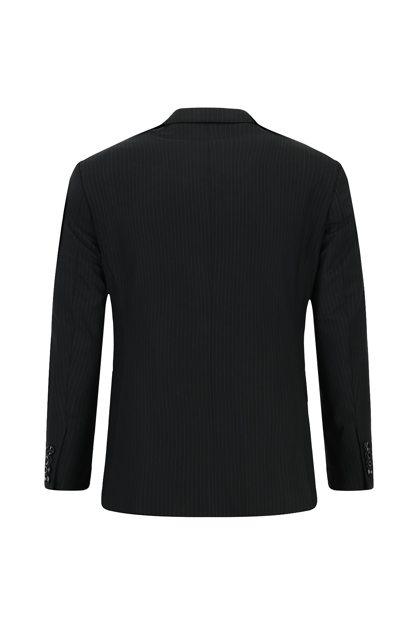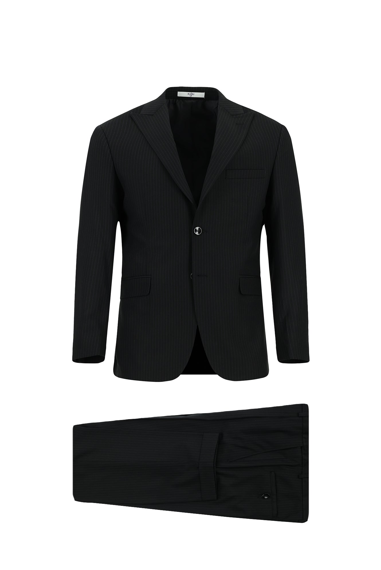 Siyah Regular Fit Çizgili Klasik Pileli Takım Elbise