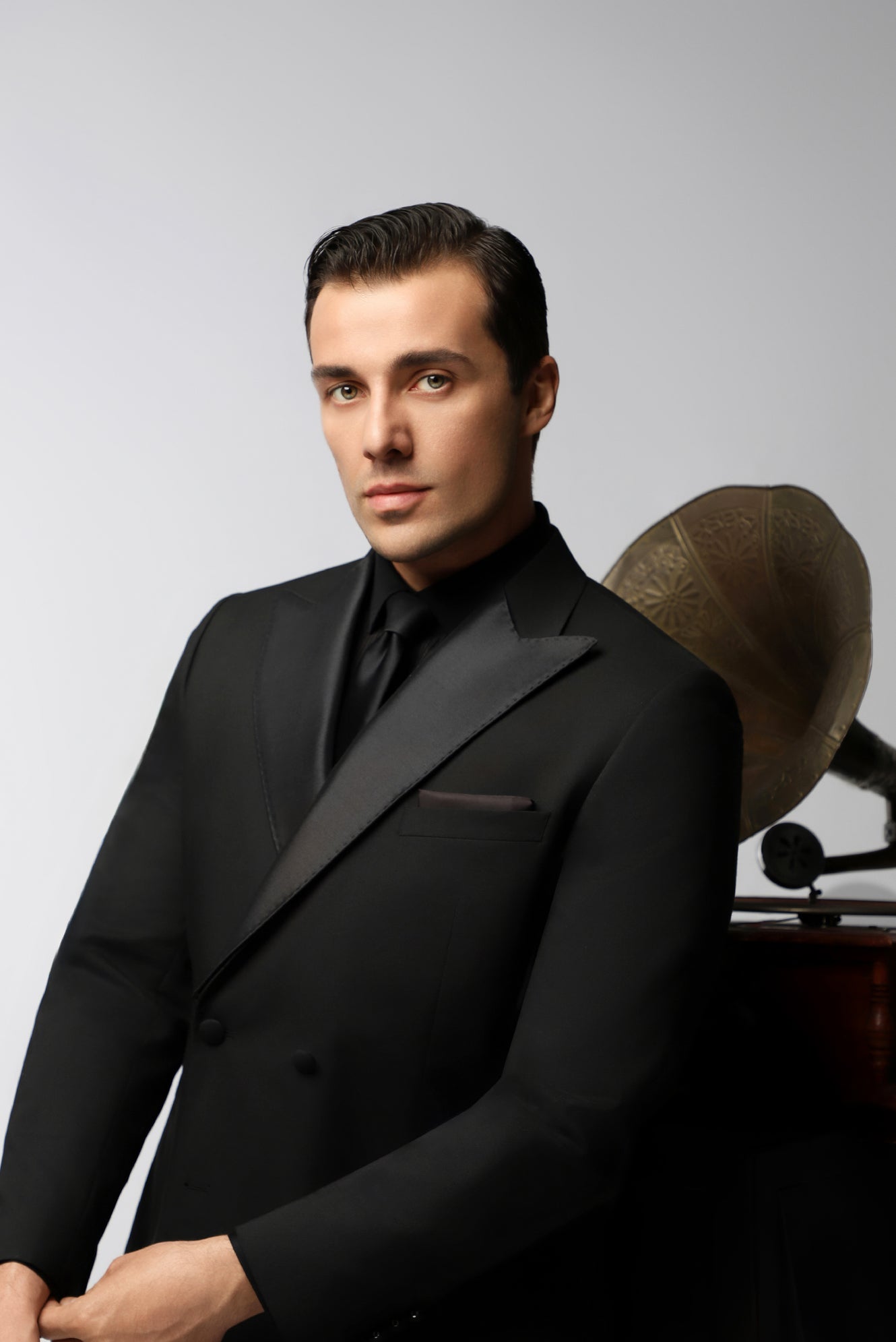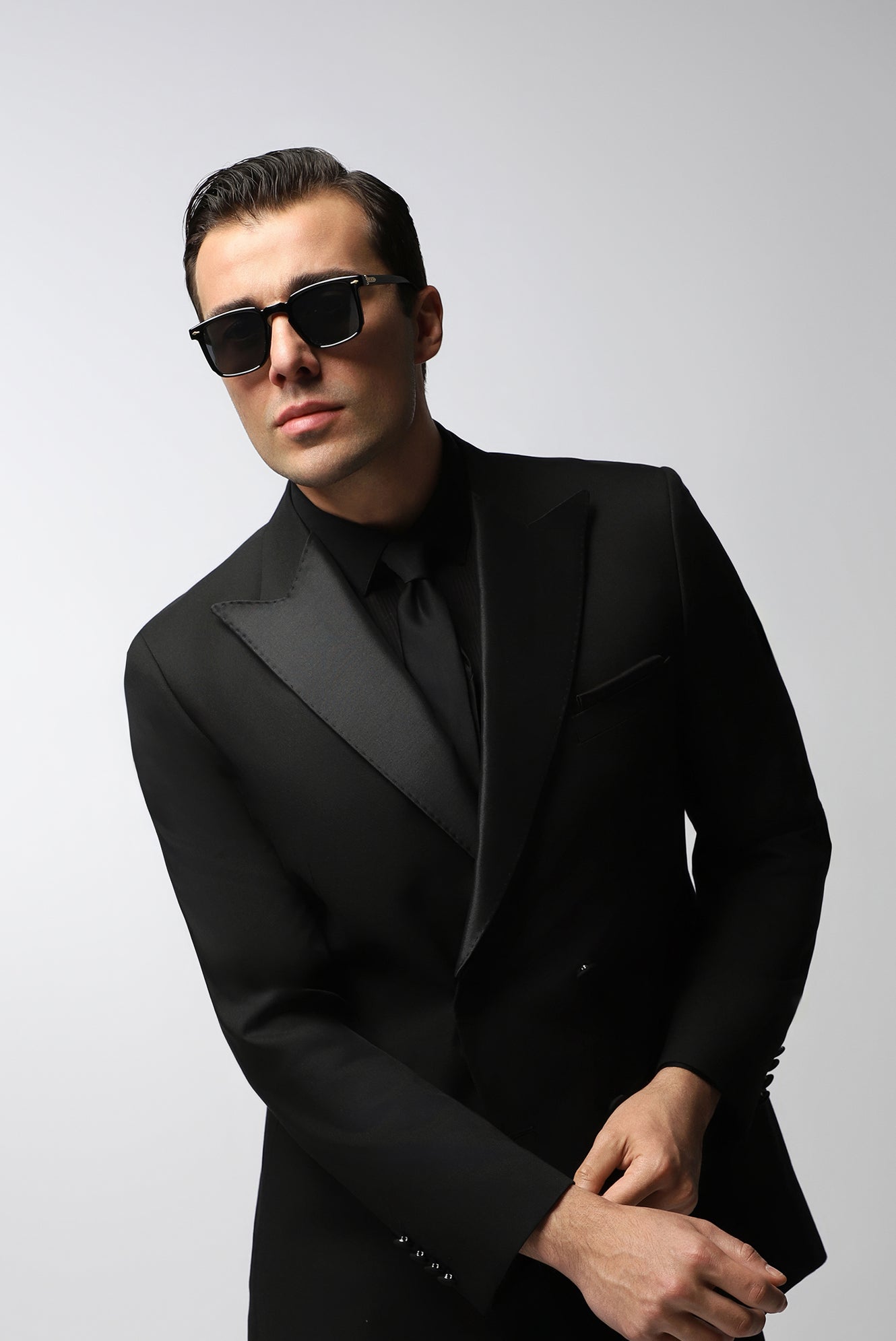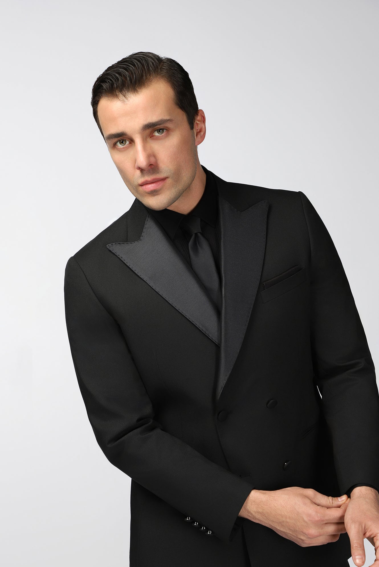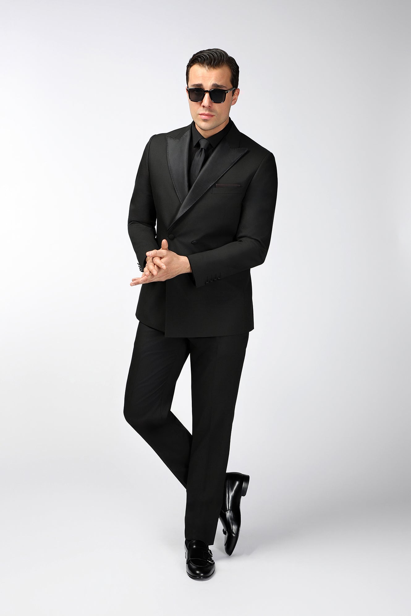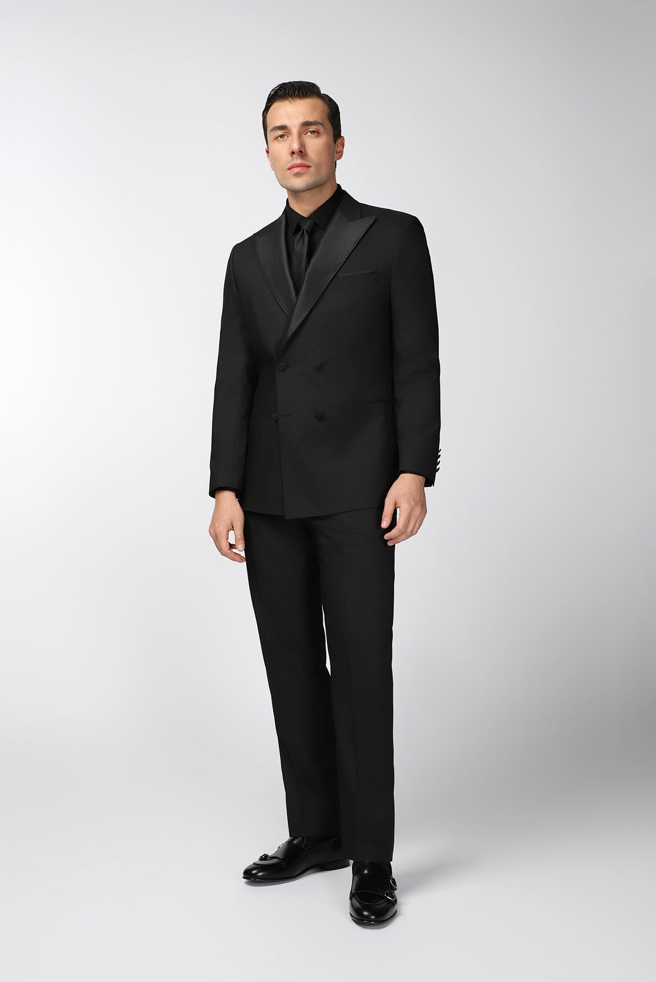 Siyah 6 Drop Regular Fit Standart Kesim Sivri Yaka Kruvaze Smokin & Damatlık