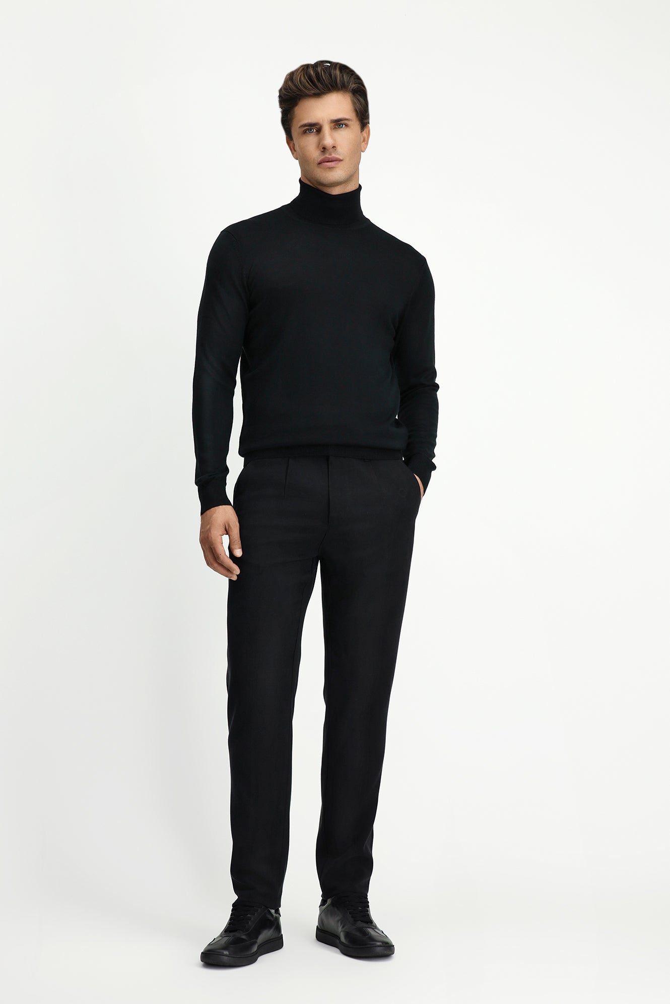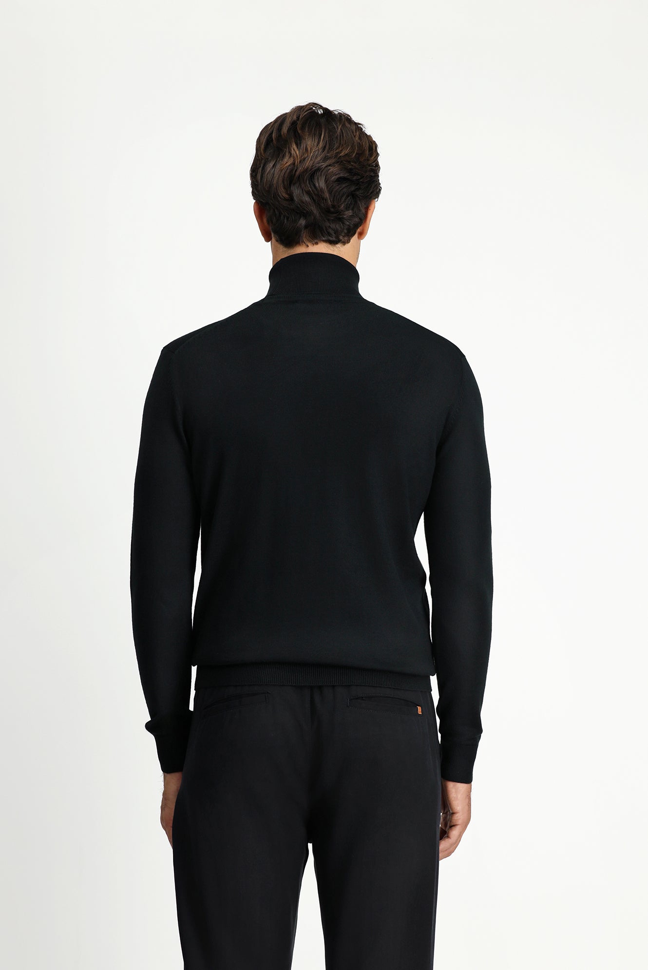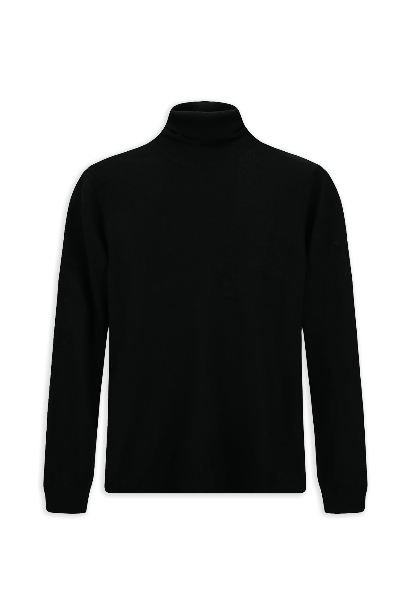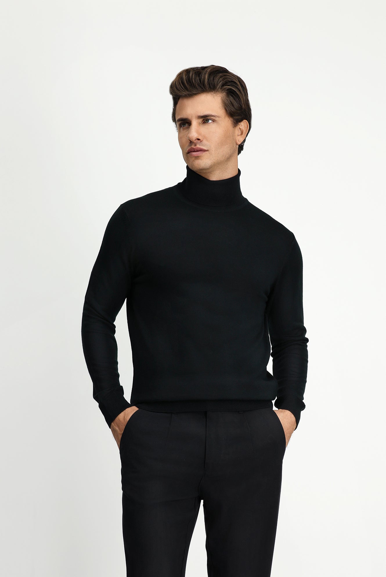 Siyah Balıkçı Yaka Regular Fit Yünlü Triko Kazak