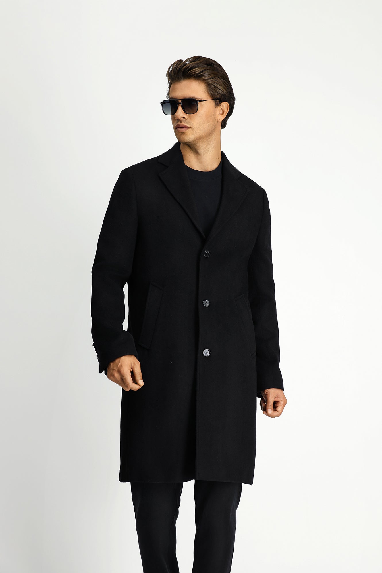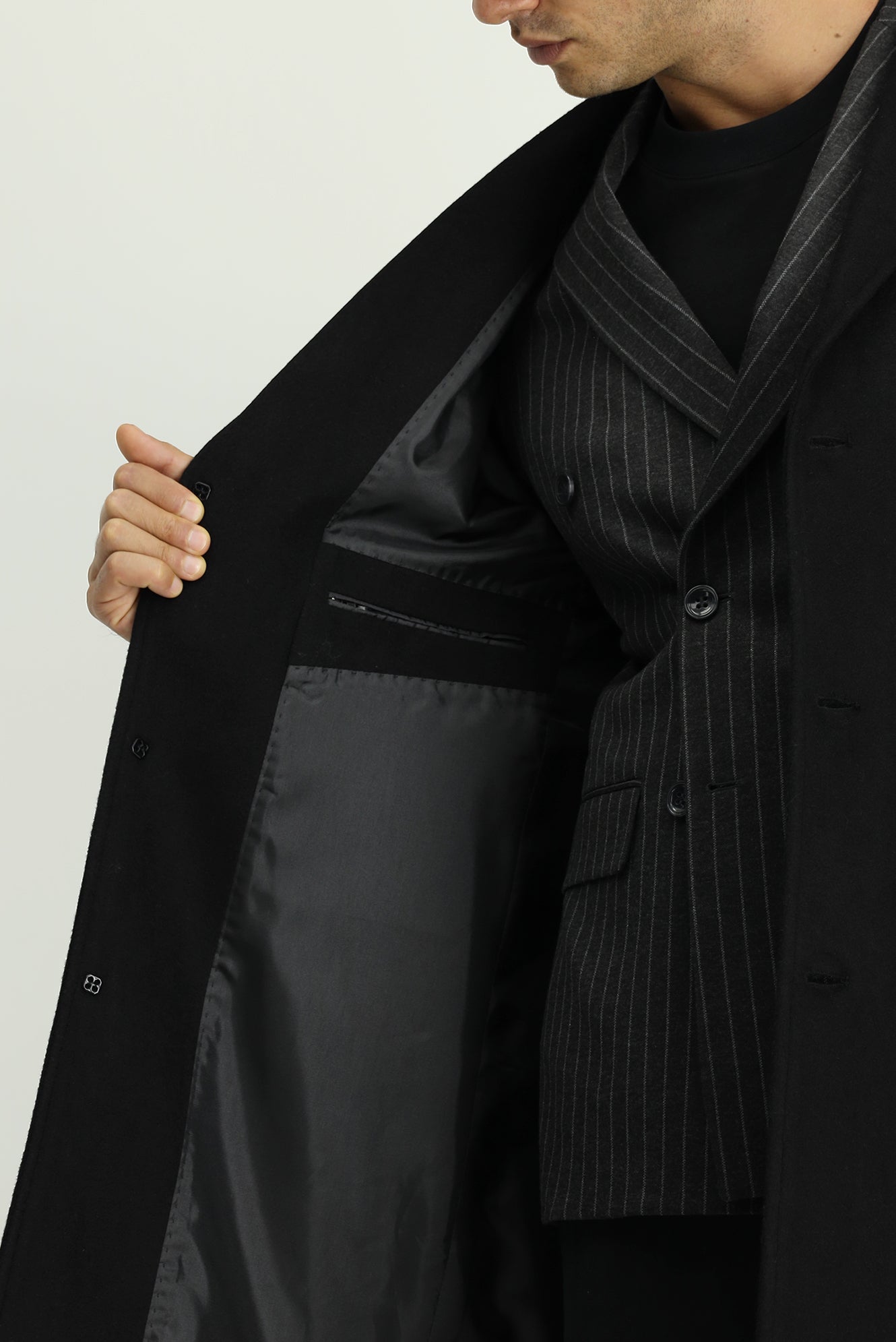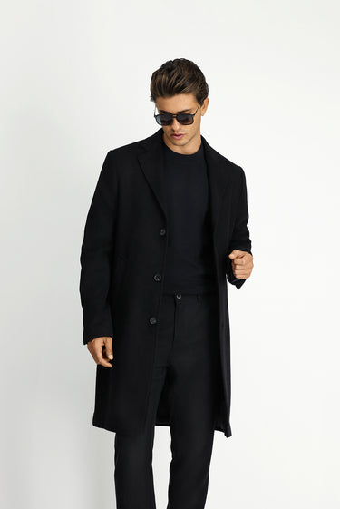 Siyah Yünlü Klasik Desenli Kaban