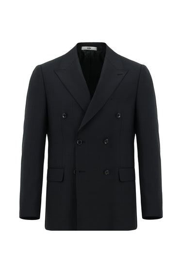 Siyah 6 Drop Regular Fit Standart Kesim Yünlü Ekose Kruvaze Takım Elbise