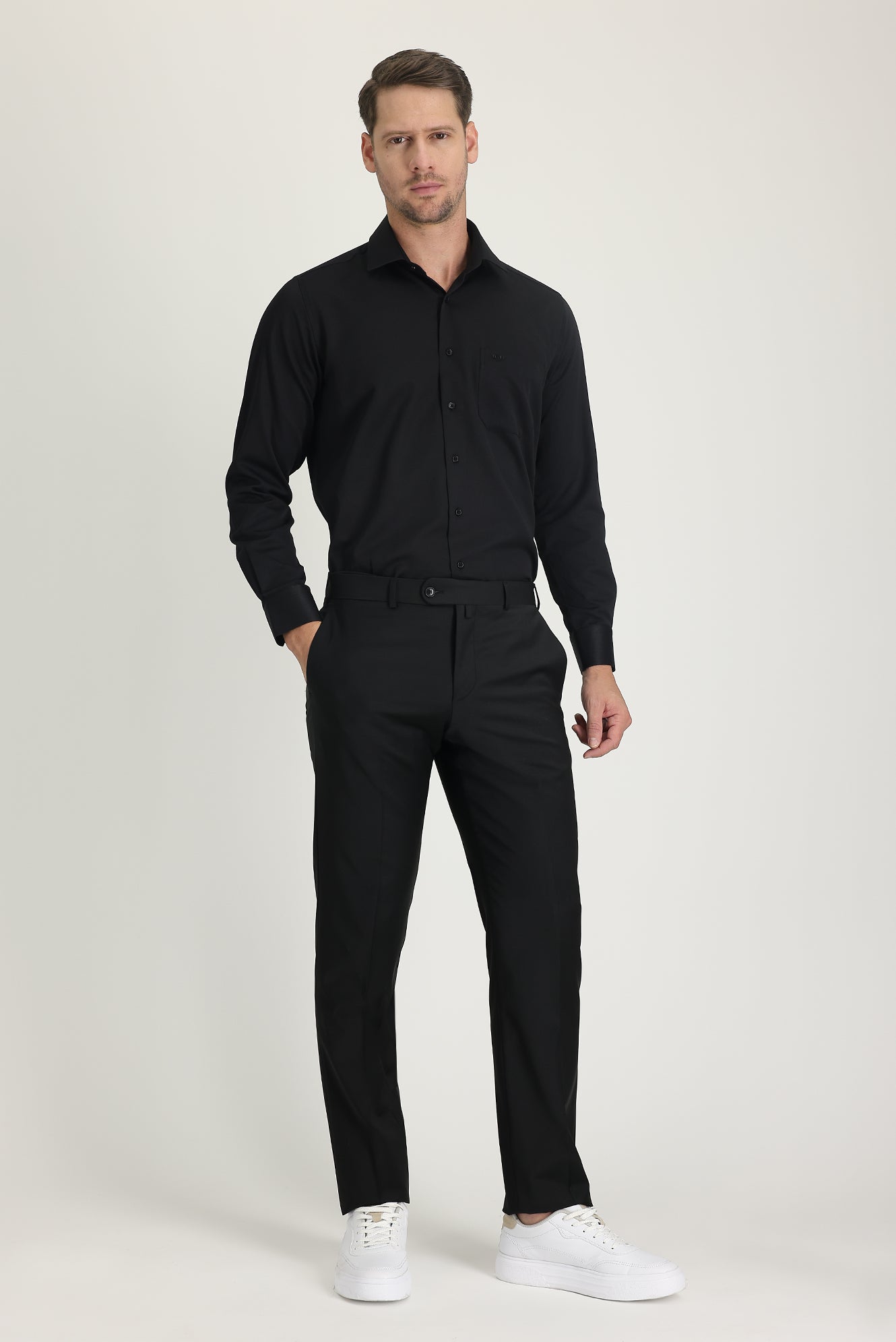Siyah Regular Fit Yünlü Klasik Kumaş Pantolon