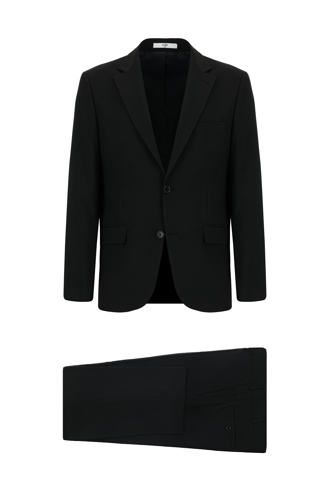 Siyah 6 Drop Regular Fit Standart Kesim Yünlü Klasik Takım Elbise