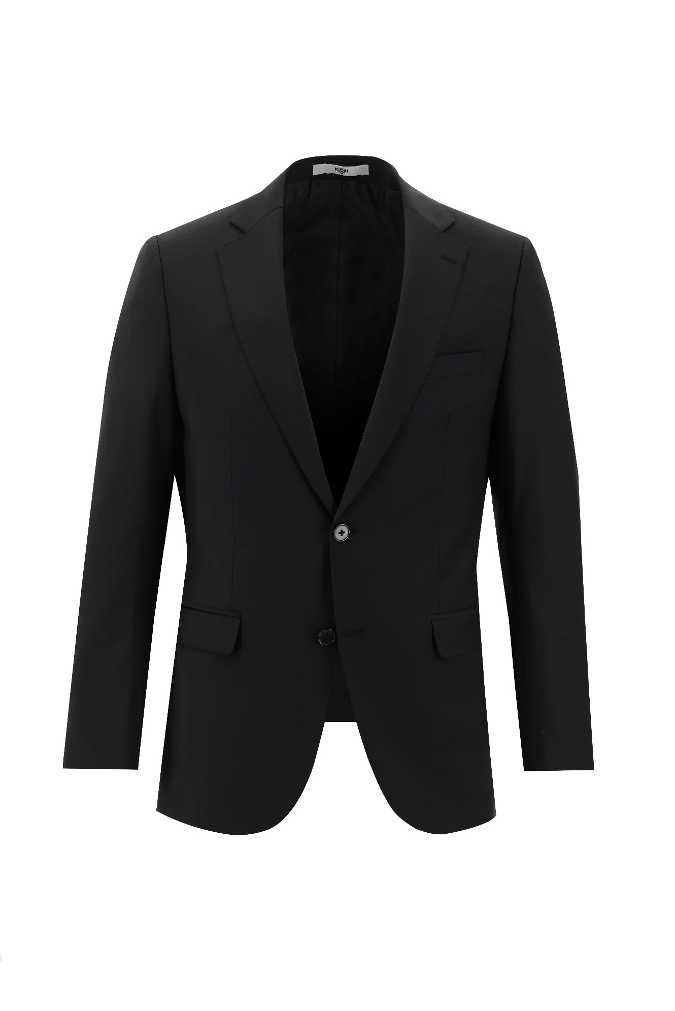 Siyah Regular Fit Yünlü Klasik Takım Elbise