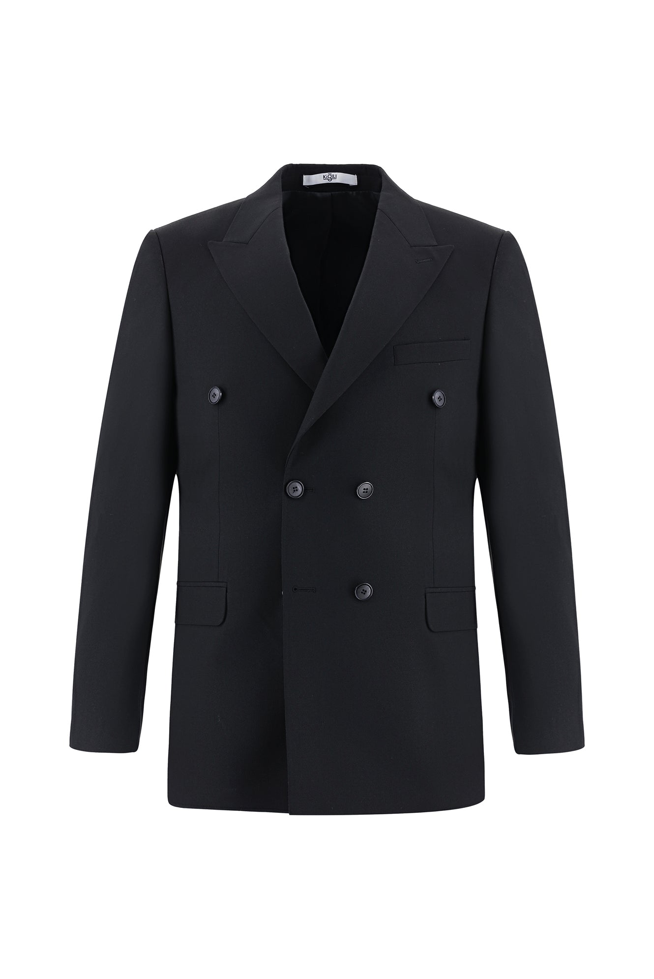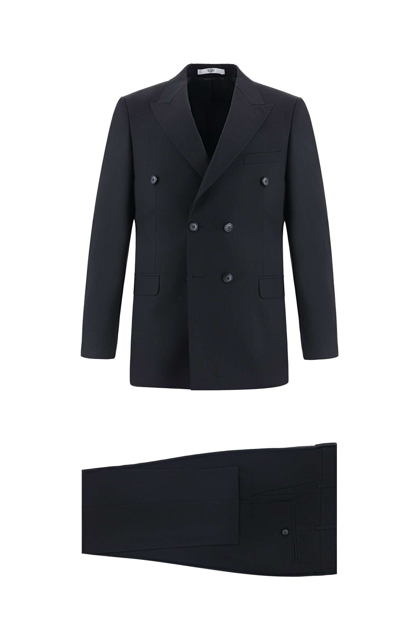 Siyah 6 Drop Regular Fit Standart Kesim Yünlü Kruvaze Takım Elbise