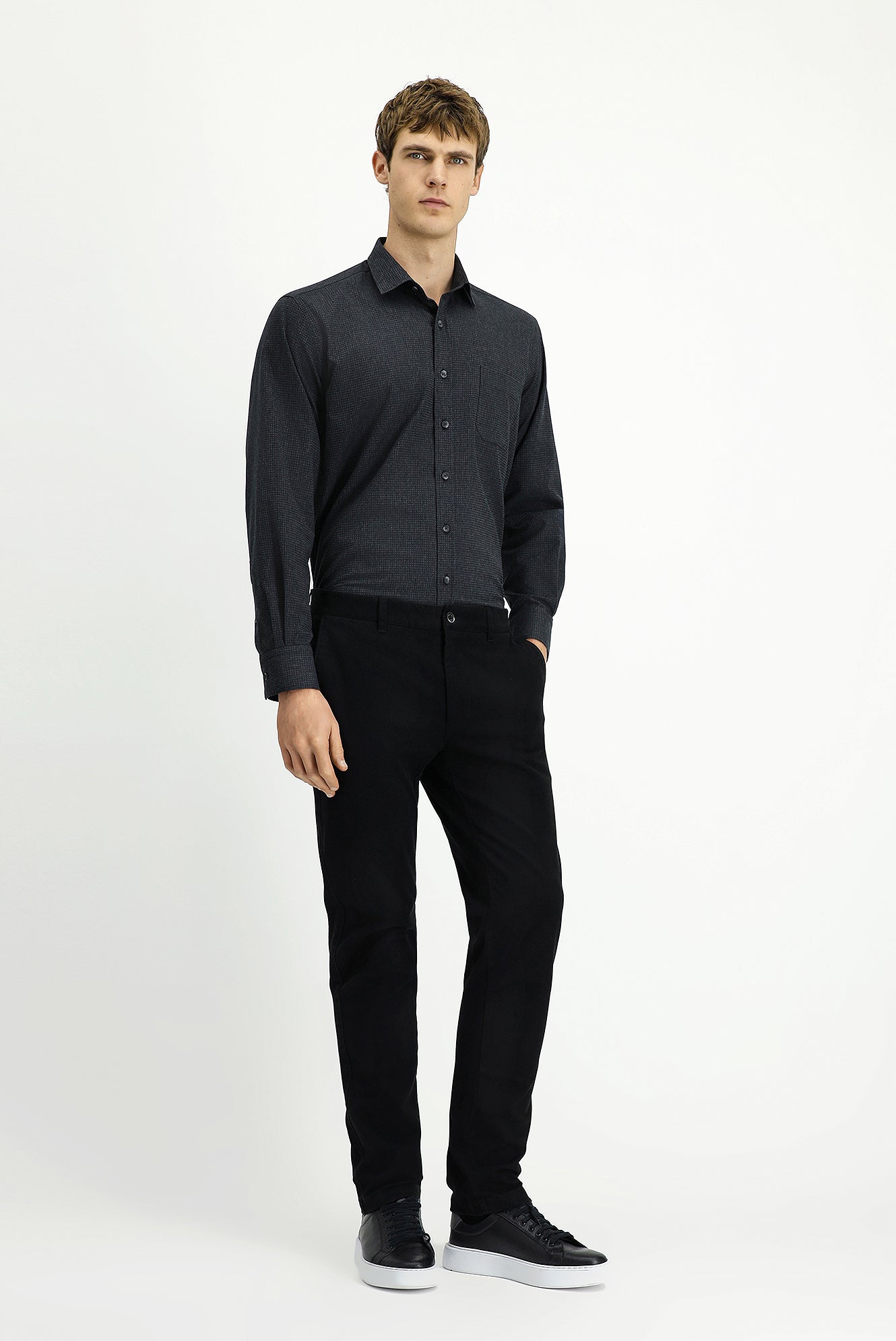 Siyah Relaxed Fit Rahat Kesim Likralı Kanvas / Chino Pantolon