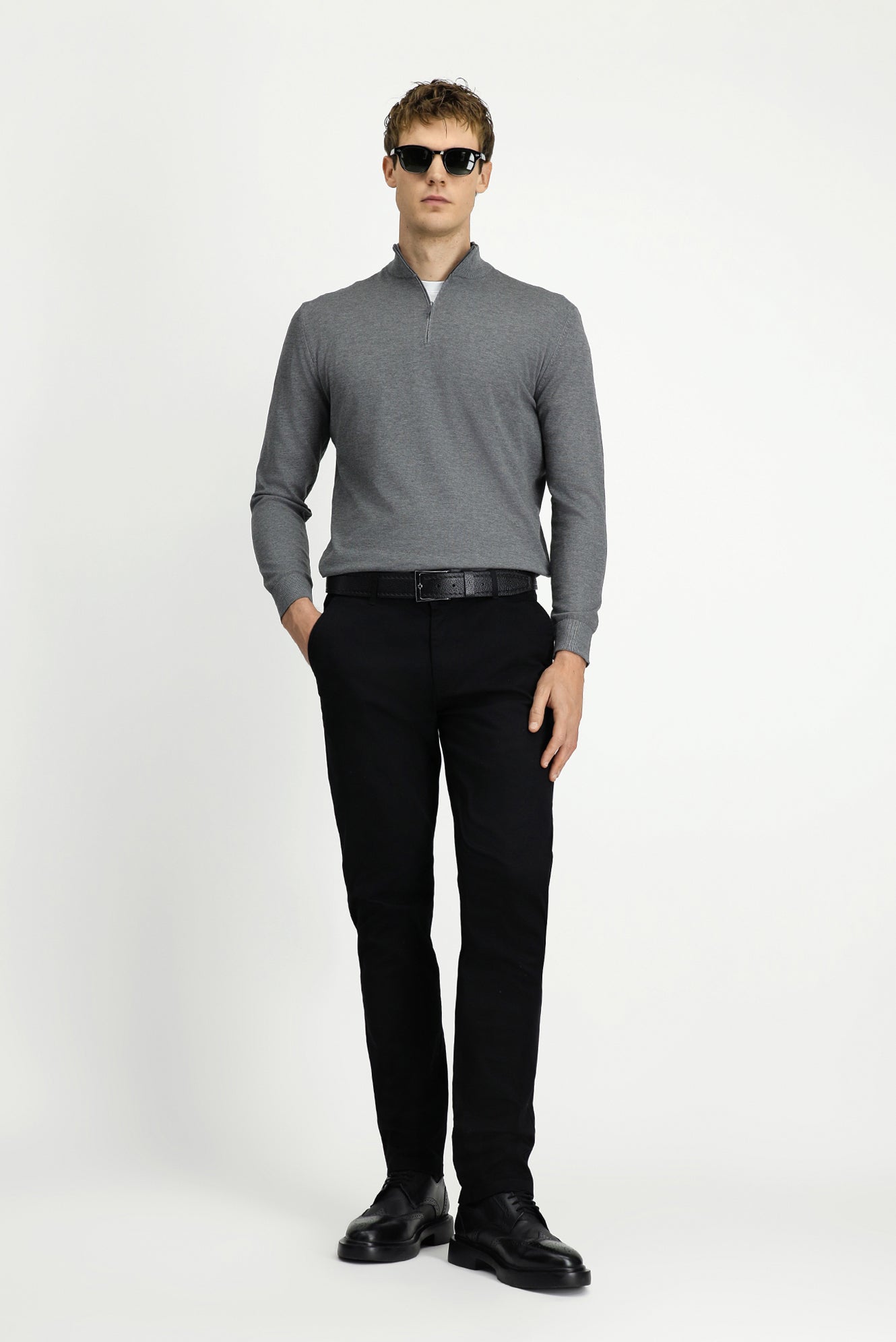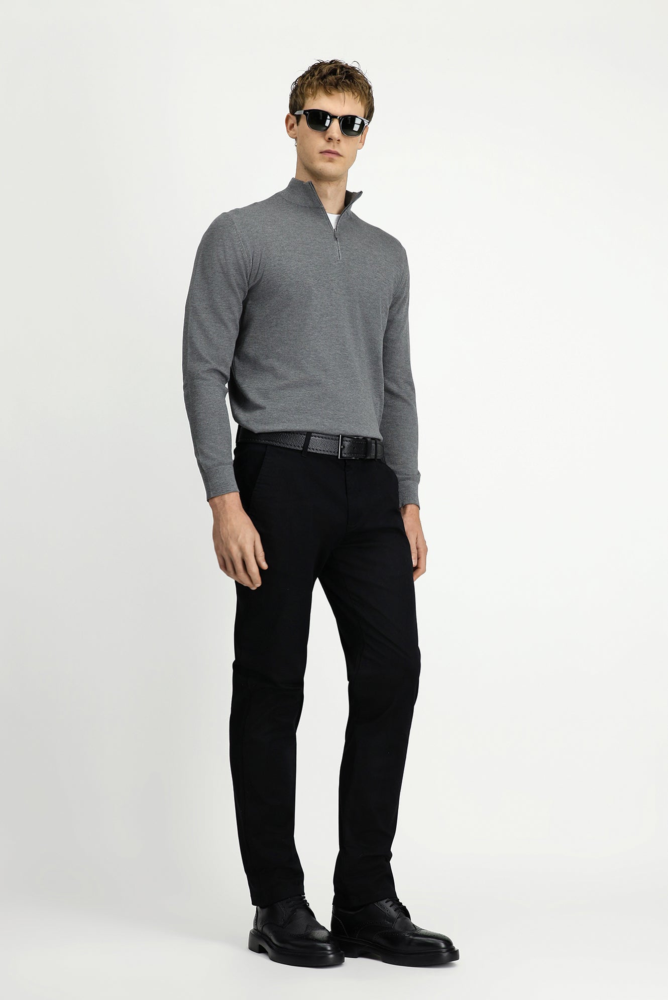 Siyah 4 Drop Relaxed Fit Rahat Kesim Yandan Cep Likralı Kanvas / Chino Pantolon