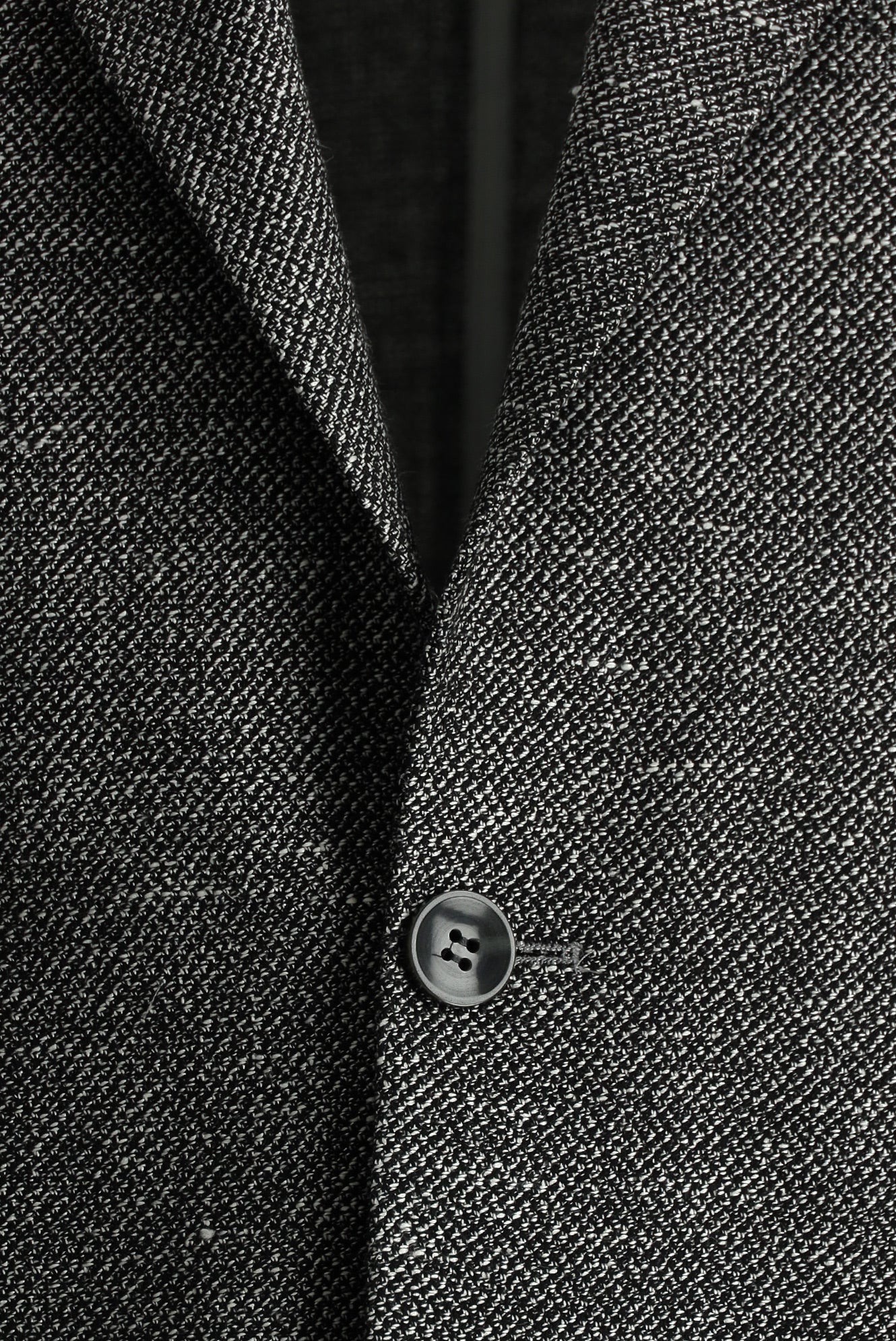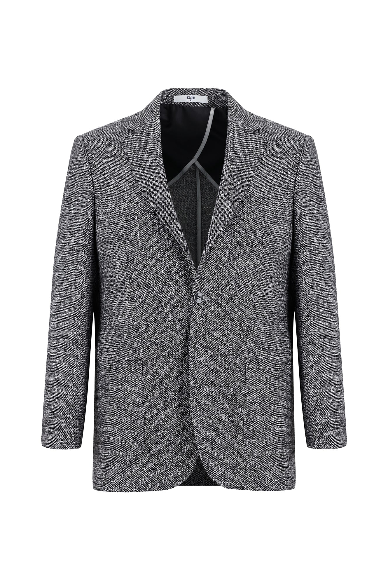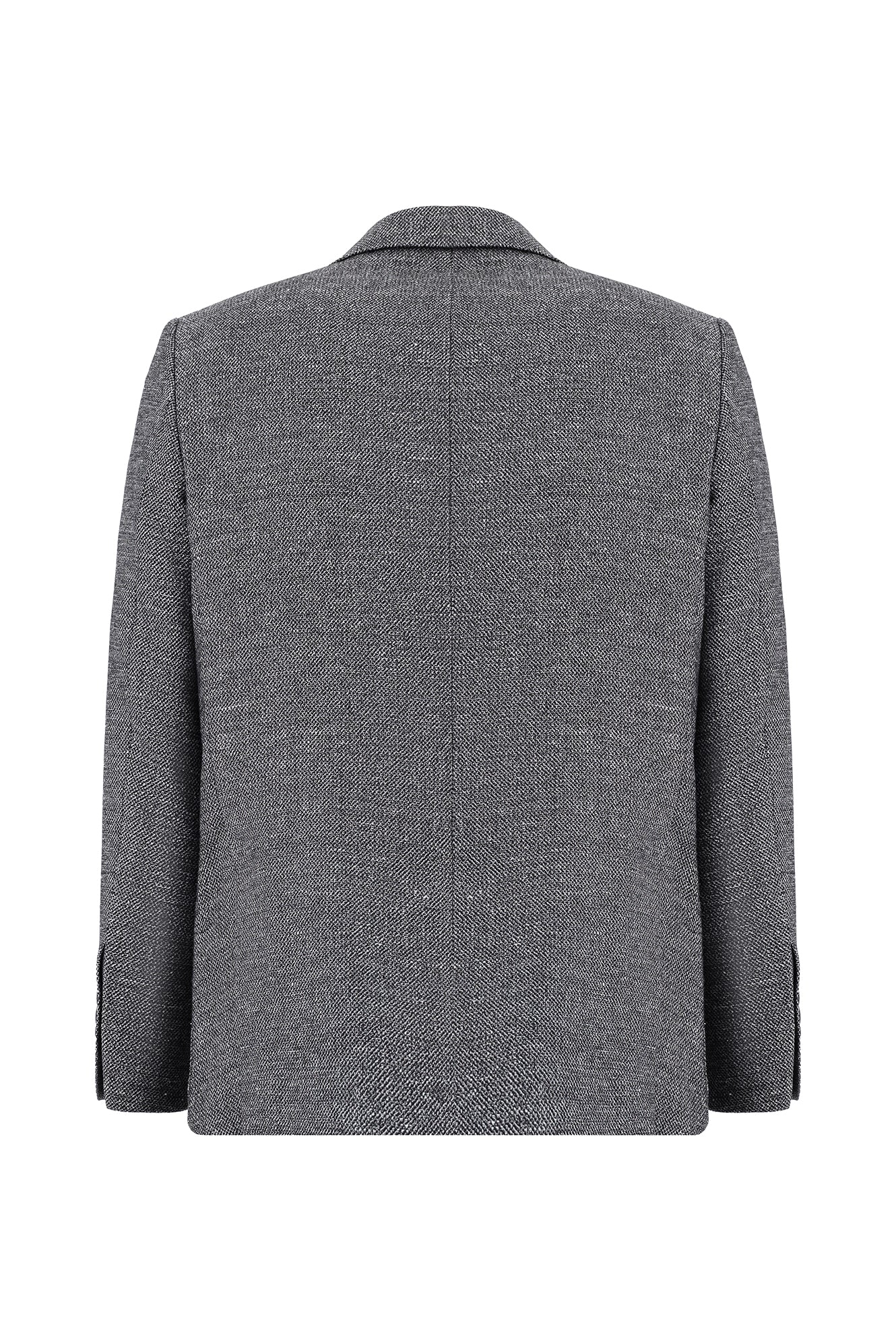 Siyah Relaxed Fit Rahat Kesim Desenli Keten Karışımlı Ceket