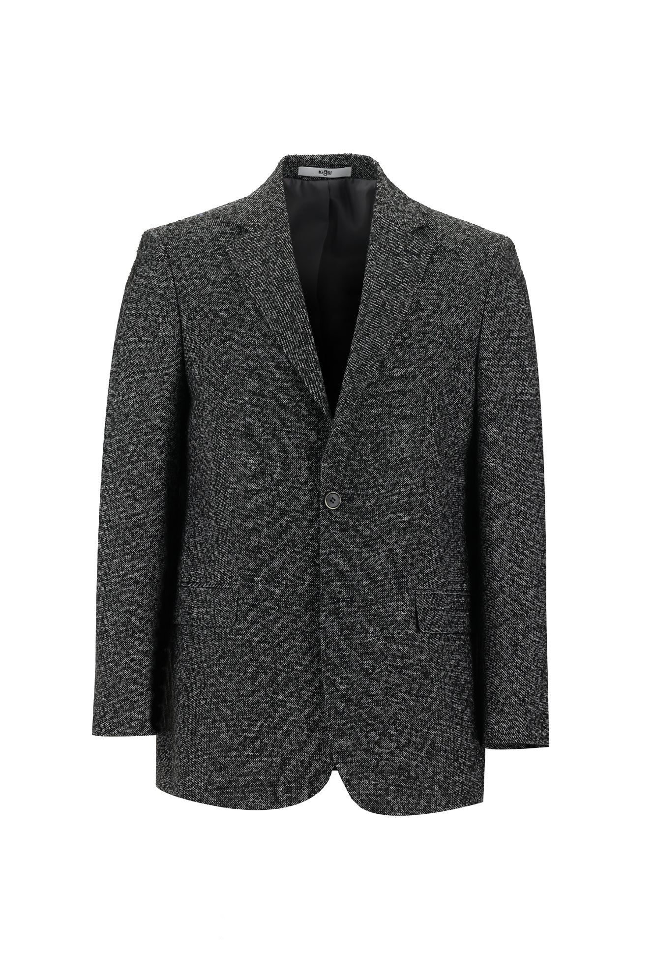 Siyah Relaxed Fit Rahat Kesim Desenli Yünlü Ceket