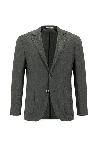 Siyah 4 Drop Relaxed Fit Rahat Kesim Keten Karışımlı Çizgili Spor Ceket