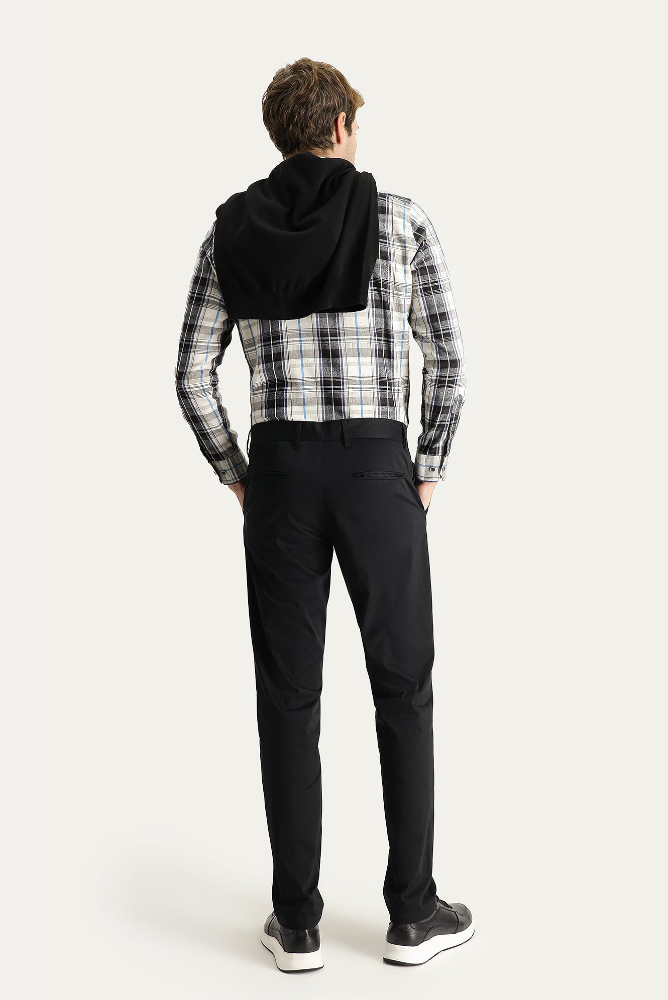 Siyah 4 Drop Relaxed Fit Rahat Kesim Likralı Saten Kanvas / Chino Pantolon