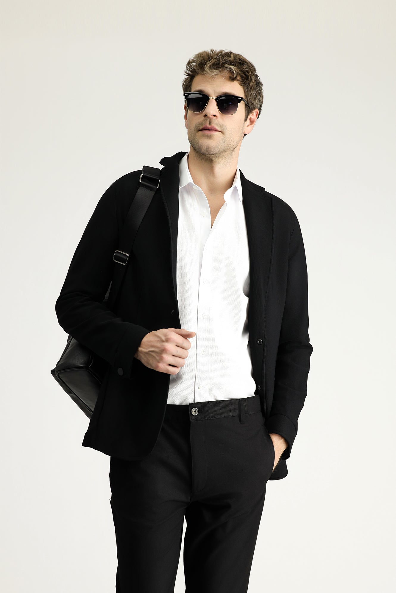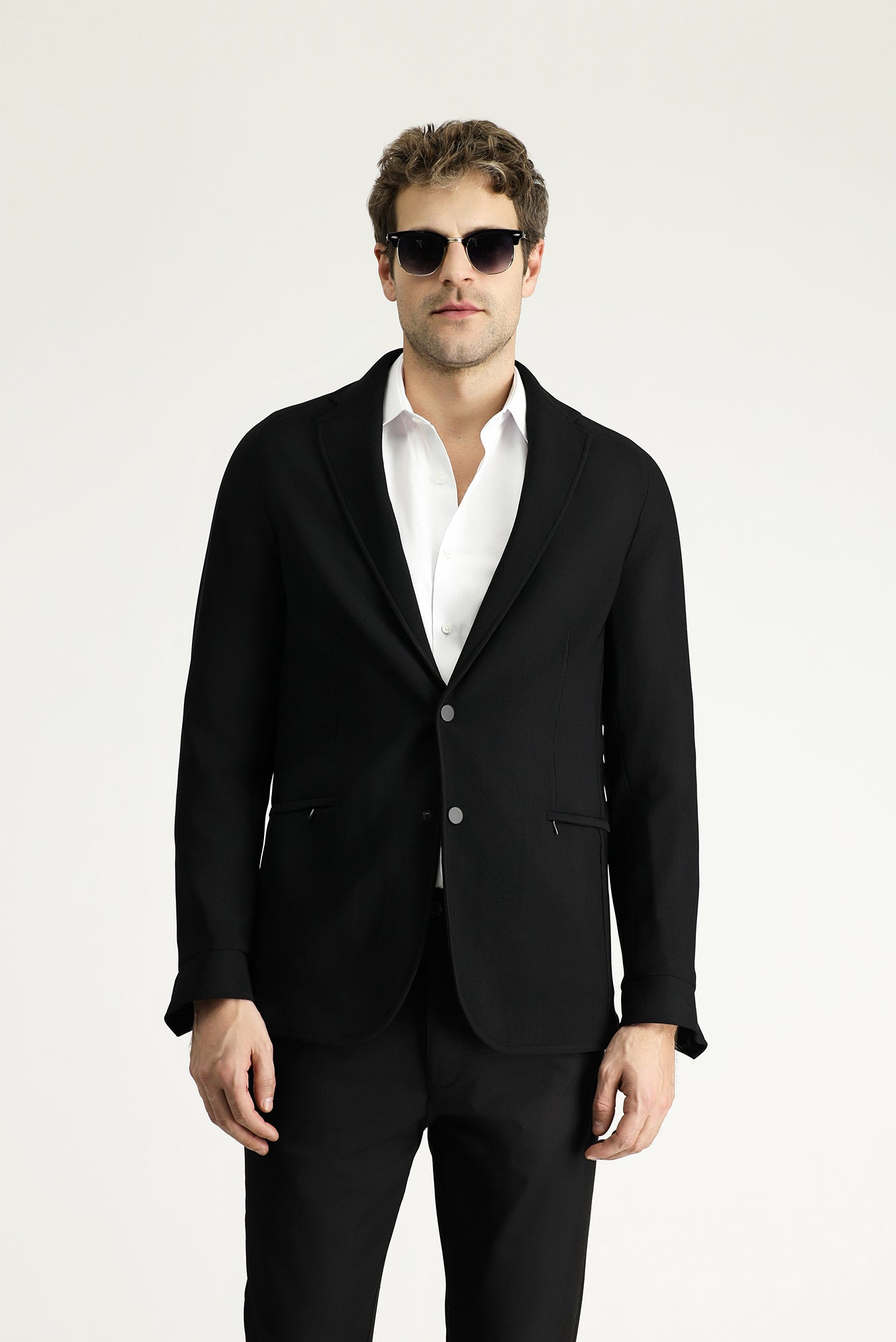Siyah Relaxed Fit Rahat Kesim Spor Örme Ceket