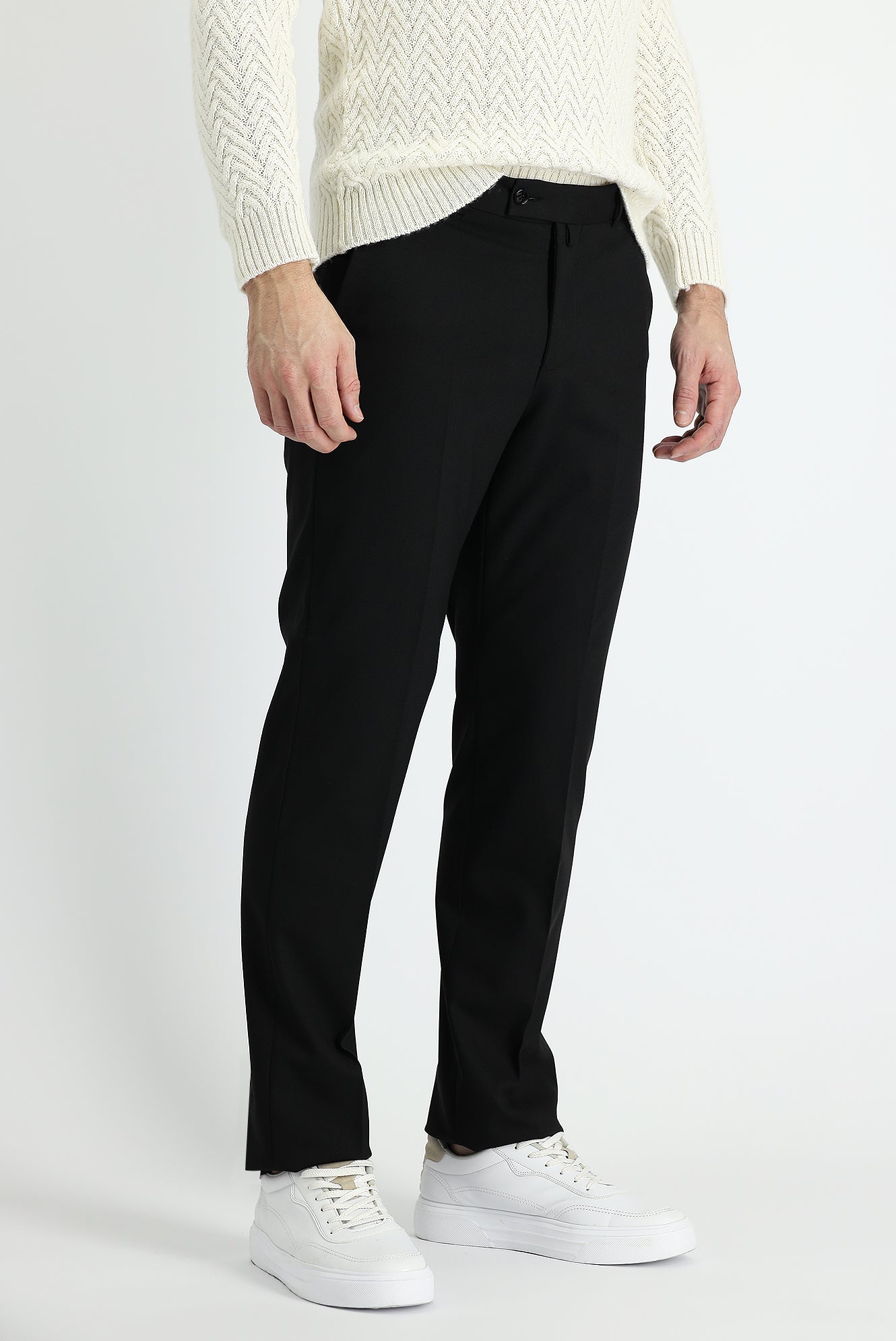 Siyah Relaxed Fit Rahat Kesim Yünlü Klasik Kumaş Pantolon