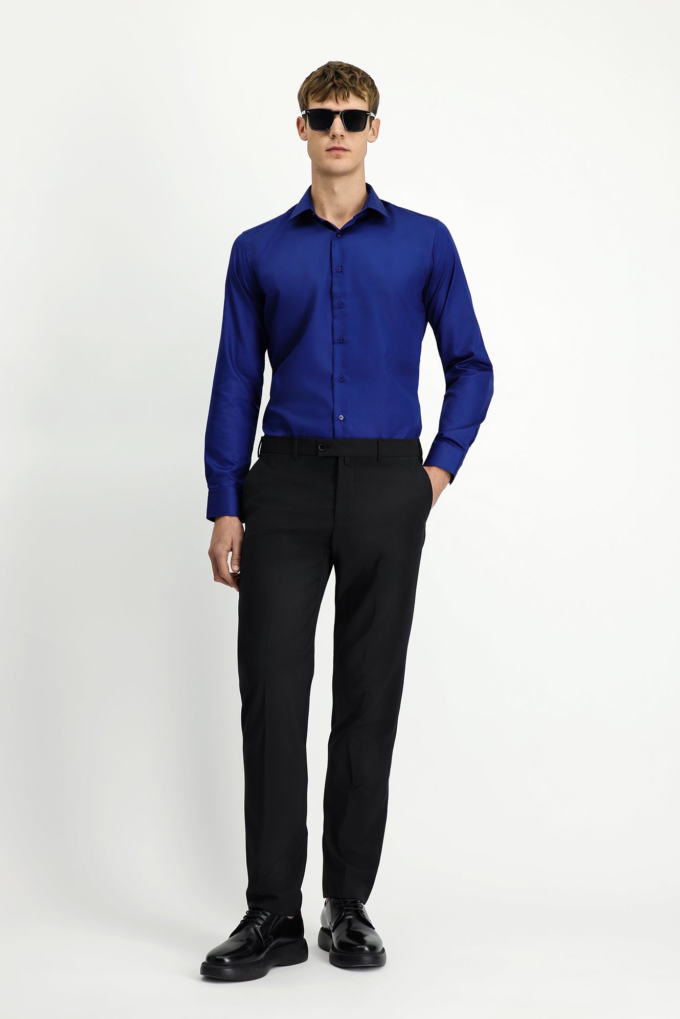 Siyah Relaxed Fit Rahat Kesim Yünlü Klasik Kumaş Pantolon