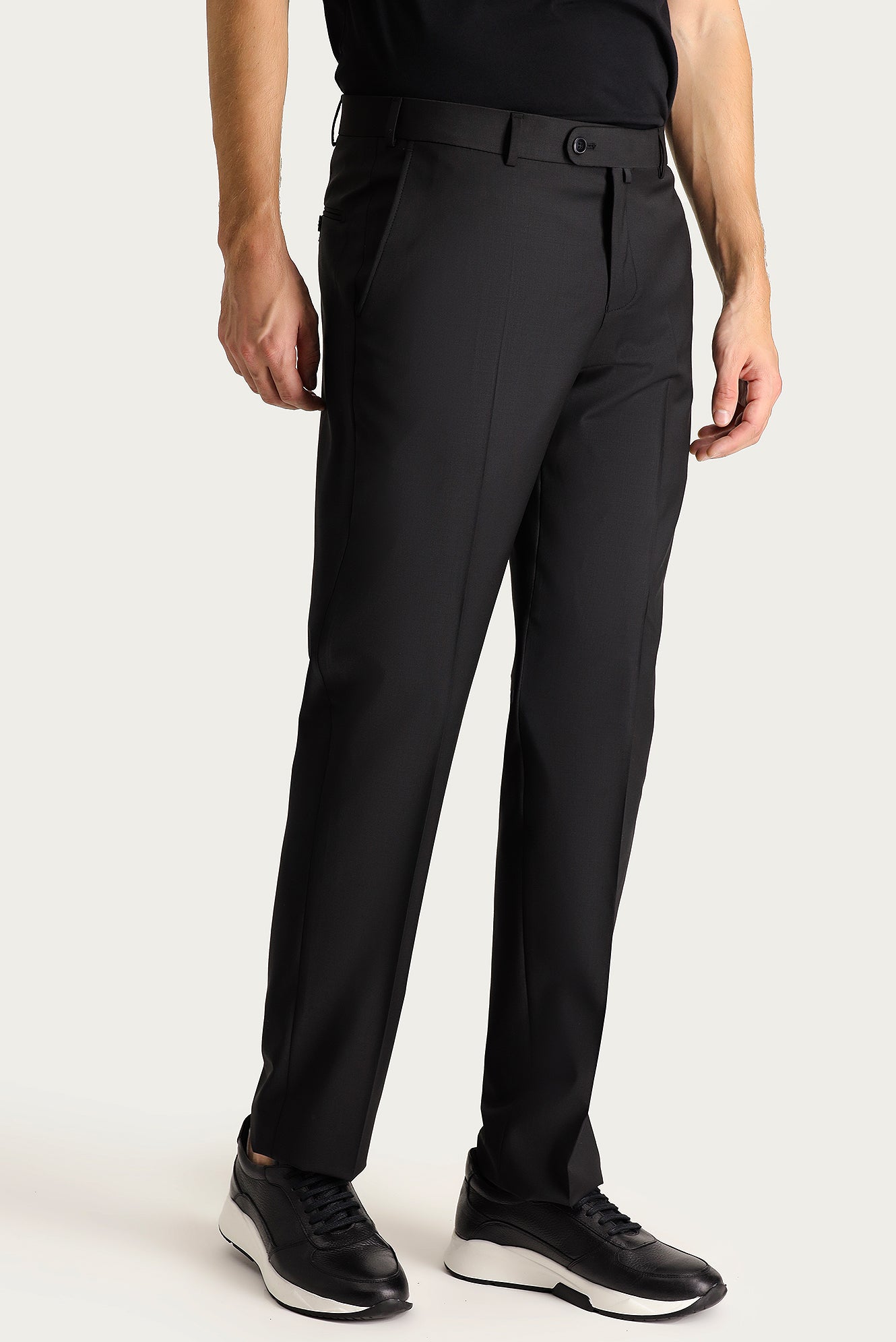 Siyah Relaxed Fit Rahat Kesim Yünlü Klasik Kumaş Pantolon
