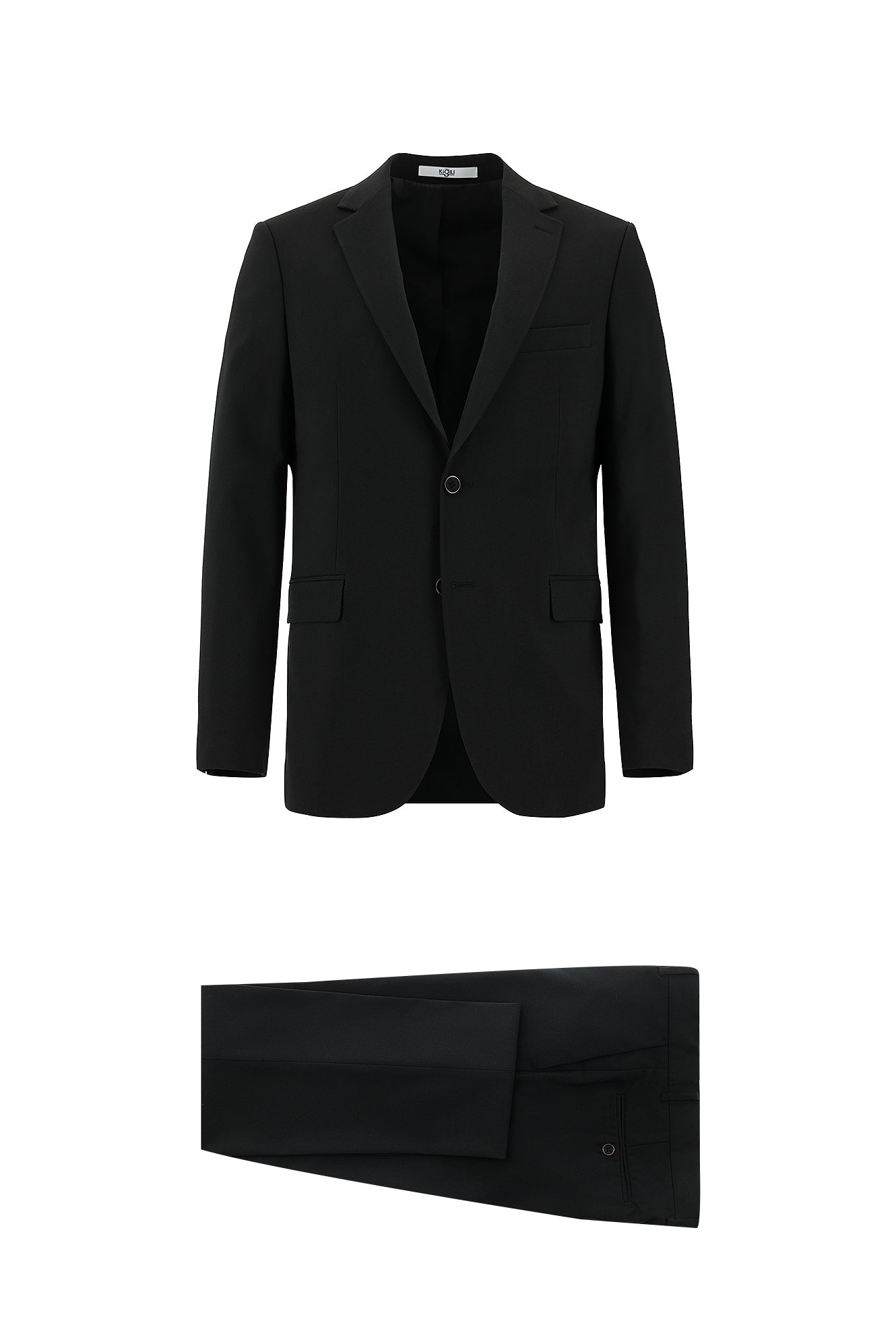 Siyah 4 Drop Relaxed Fit Rahat Kesim Yünlü Klasik Takım Elbise
