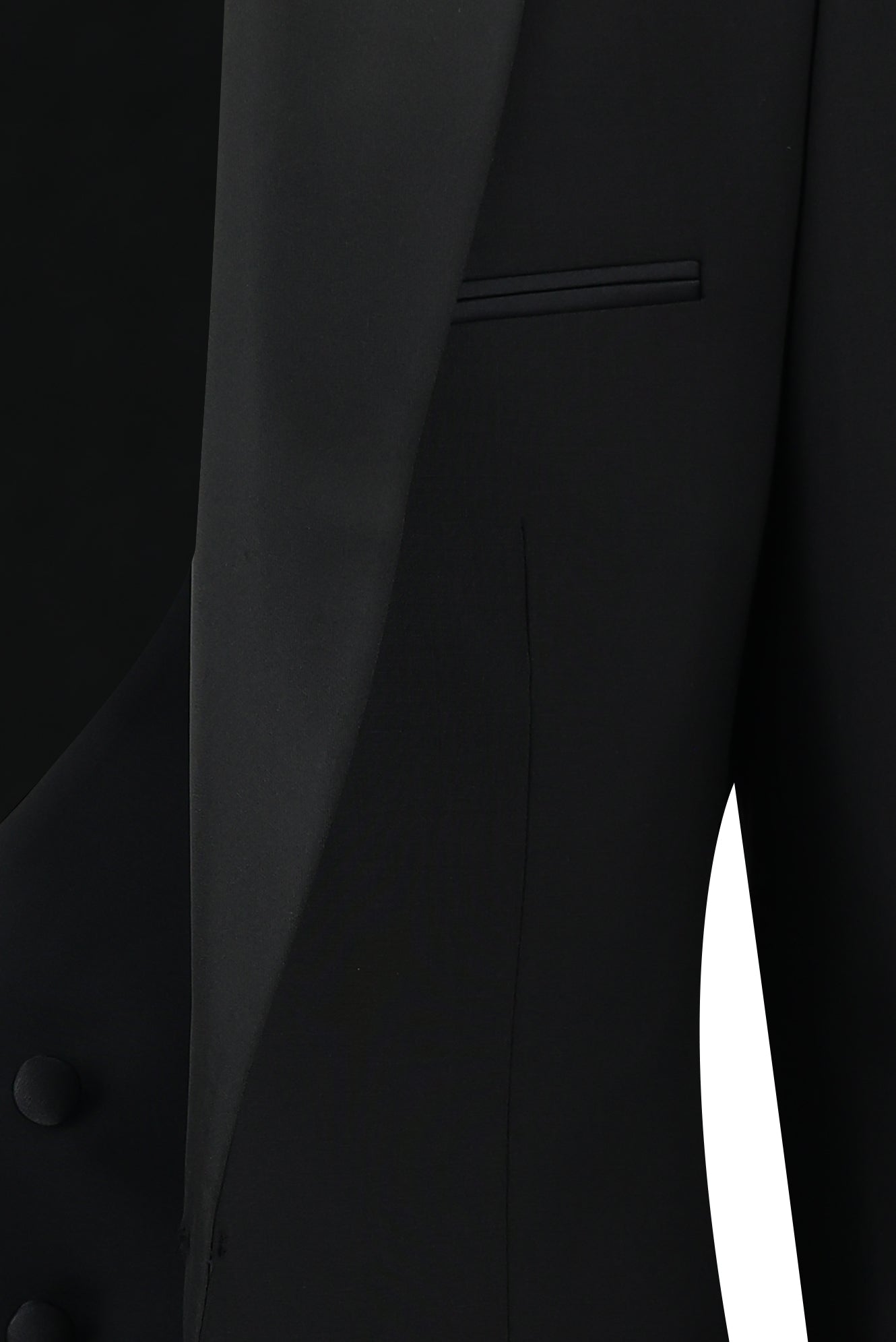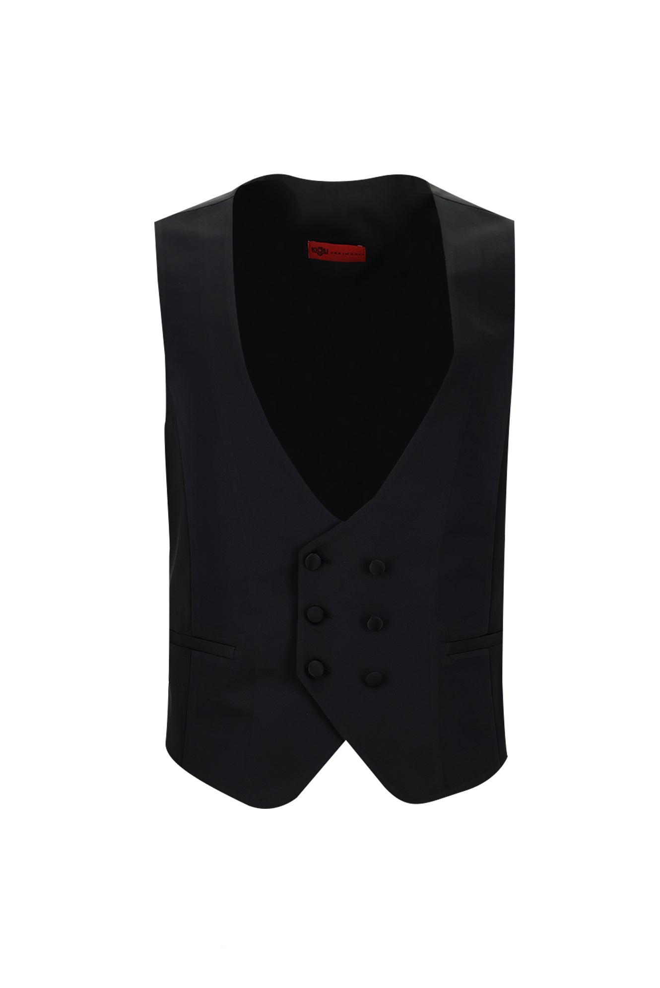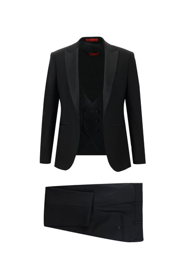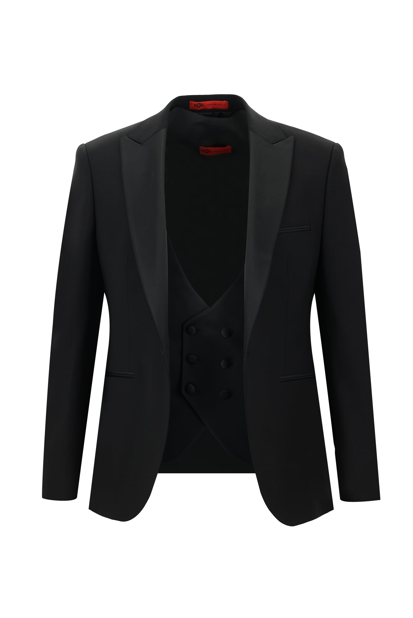 Siyah 7 Drop Slim Fit Dar Kesim Sivri Yaka Yelekli Smokin & Damatlık