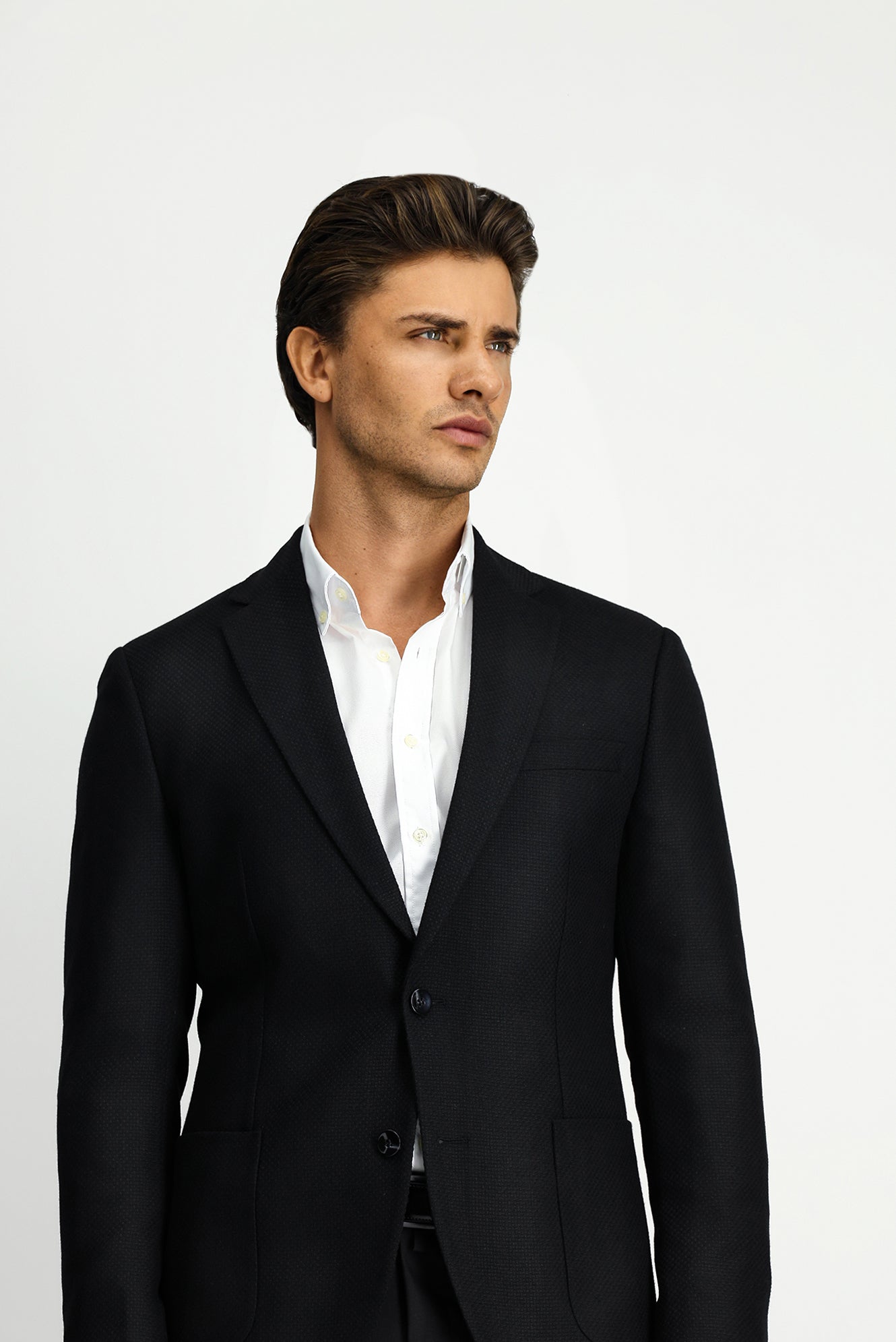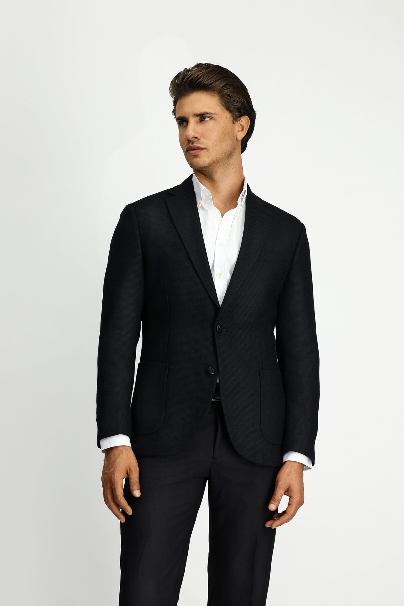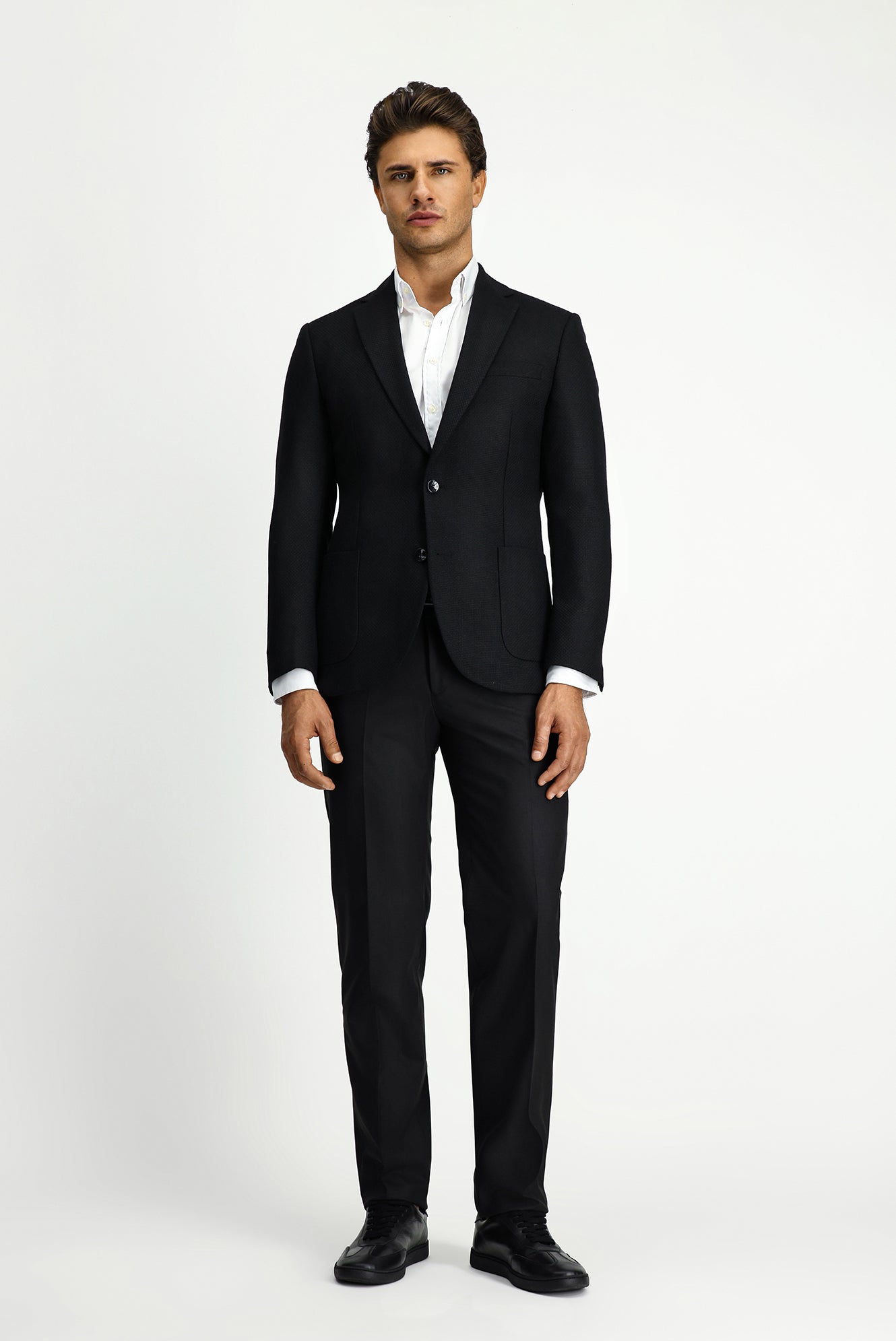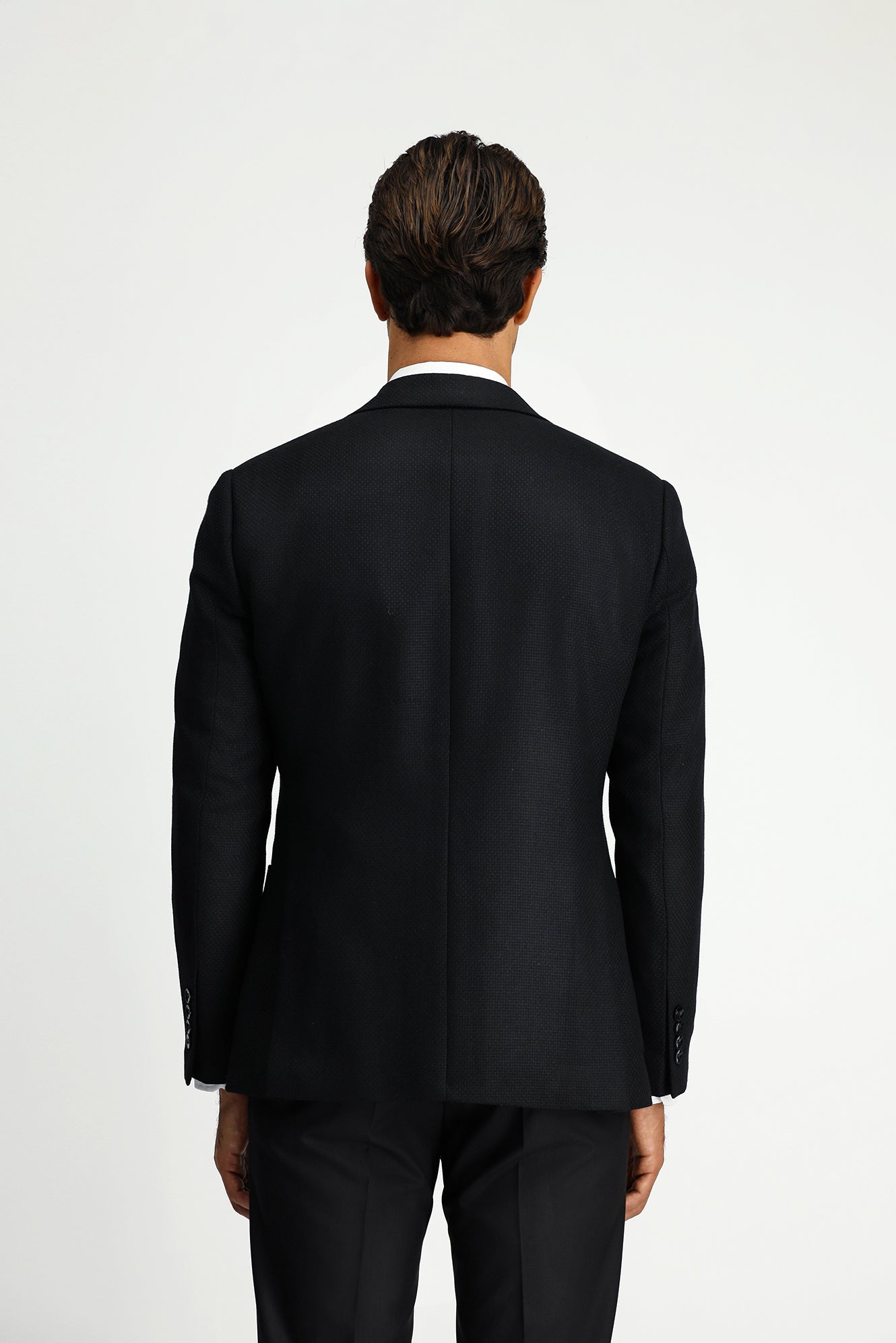 Siyah Slim Fit Dar Kesim Desenli Spor Yünlü Ceket