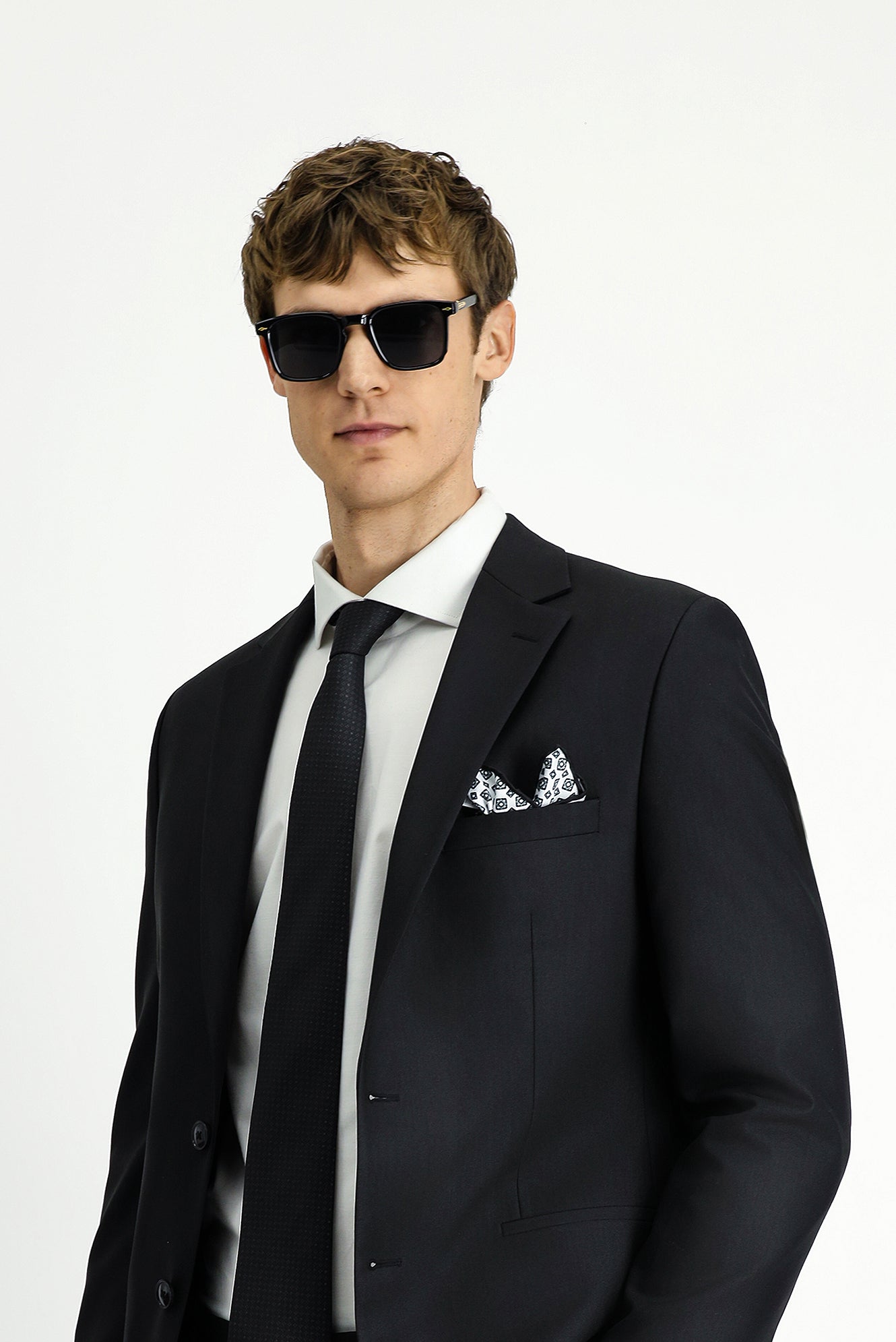 Siyah 7 Drop Slim Fit Dar Kesim Beli Lastikli Yünlü Takım Elbise