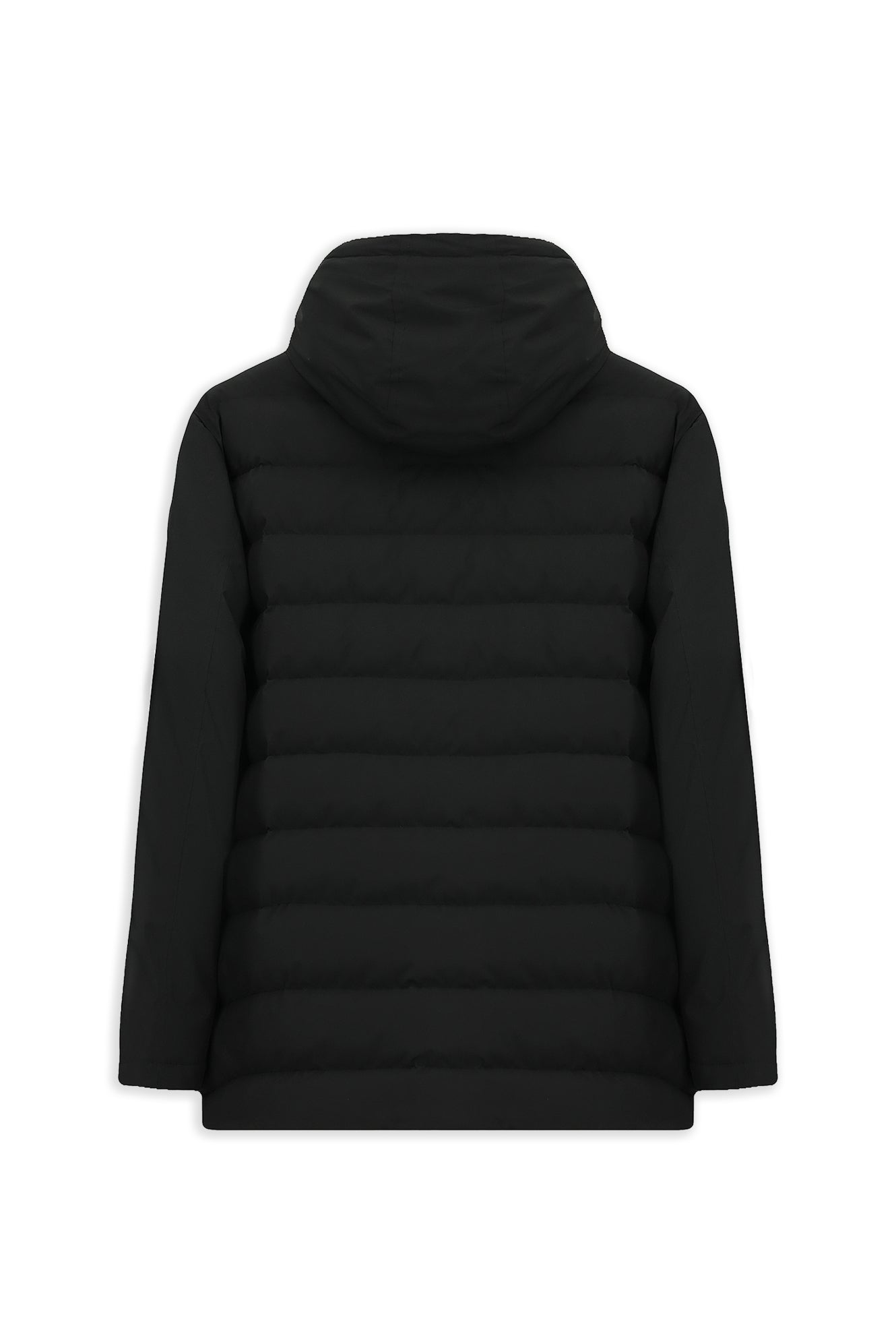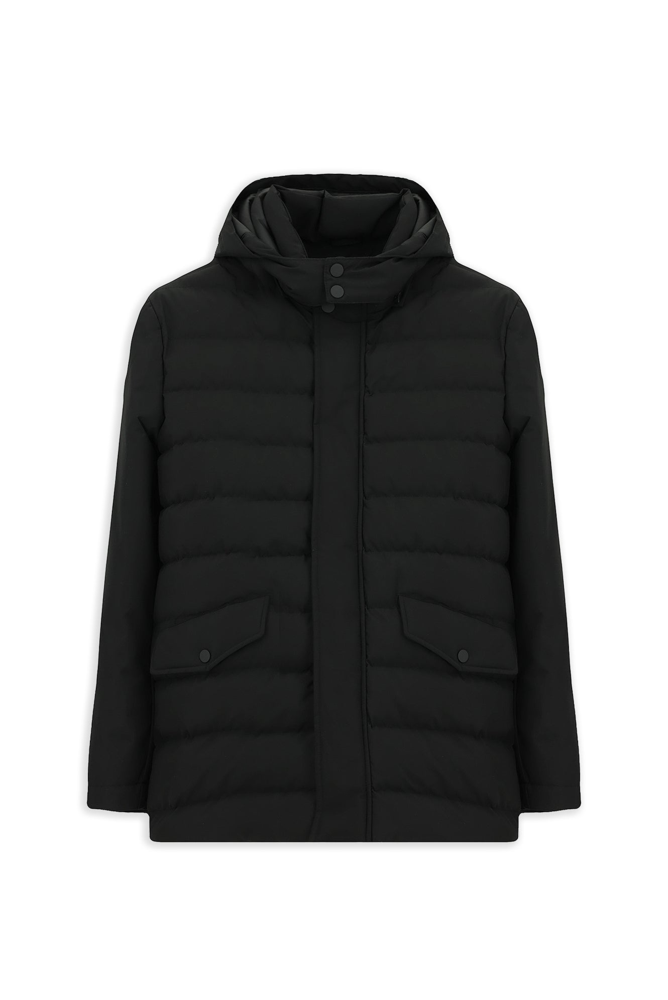 Siyah Slim Fit Dar Kesim Kapüşonlu Cepli Fermuarlı Rüzgar Geçirmez Spor Şişme Mont