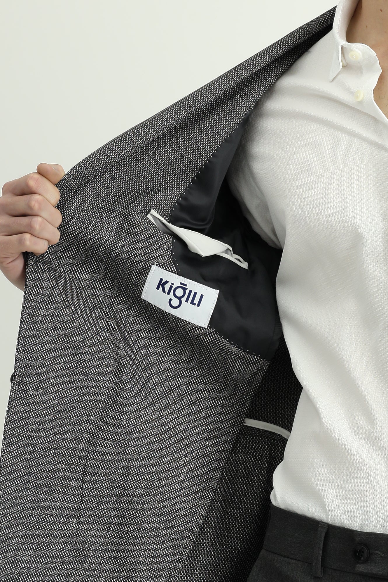 Siyah Slim Fit Dar Kesim Klasik Keten Karışımlı Desenli Ceket